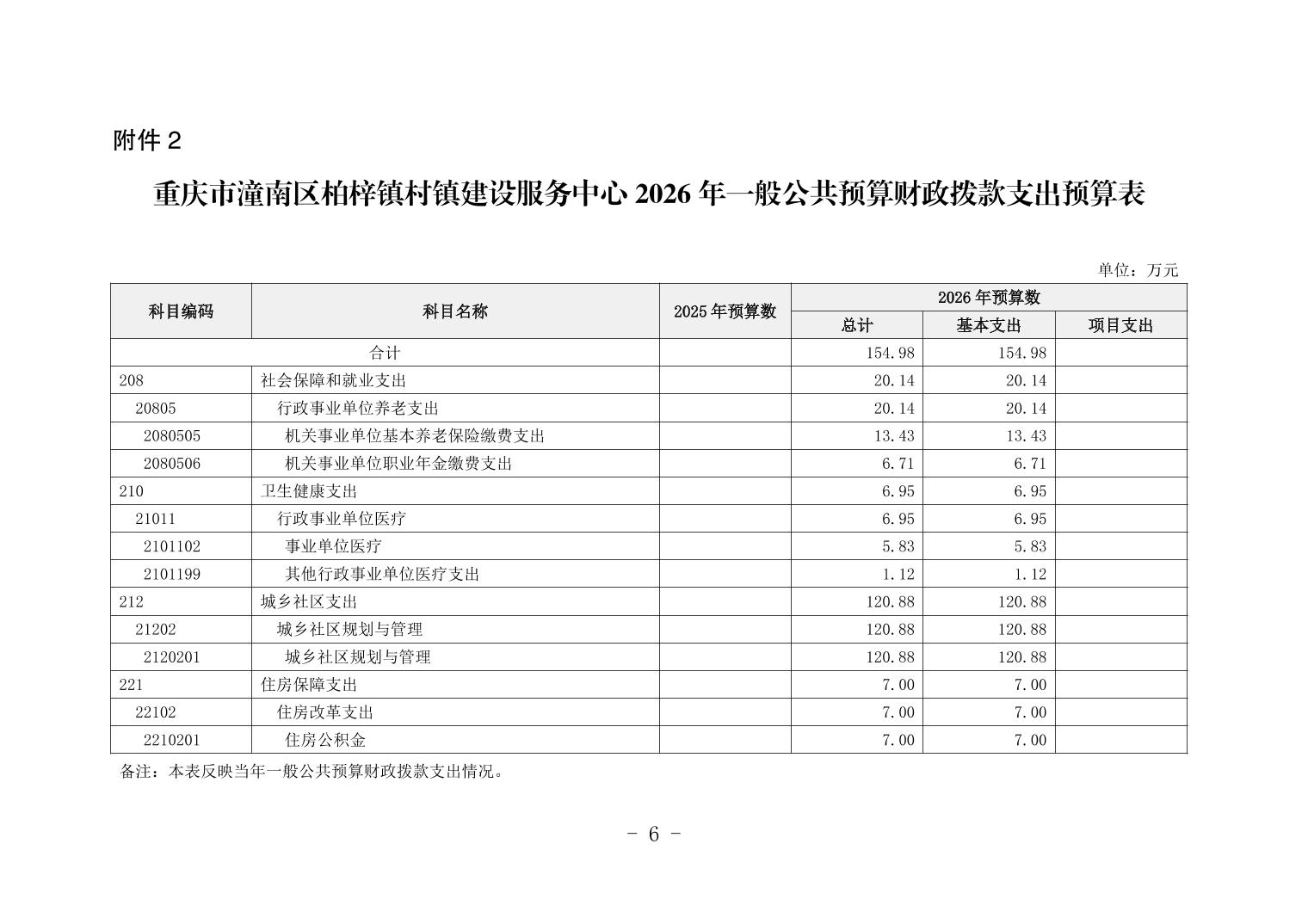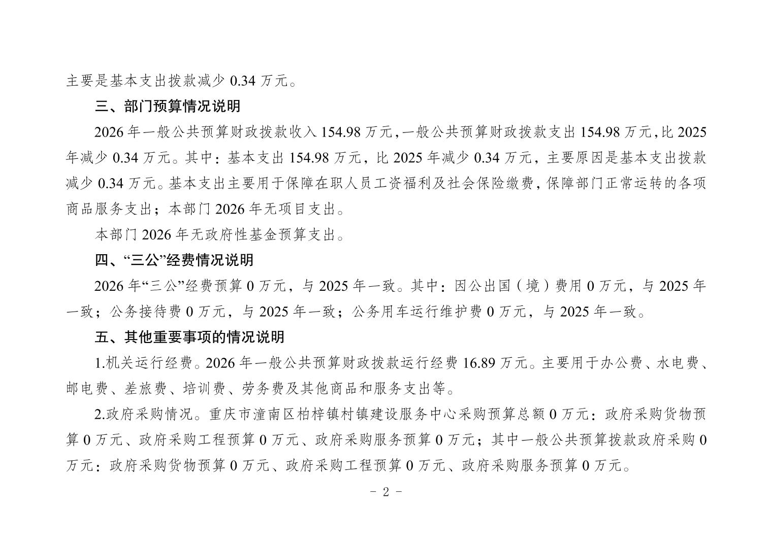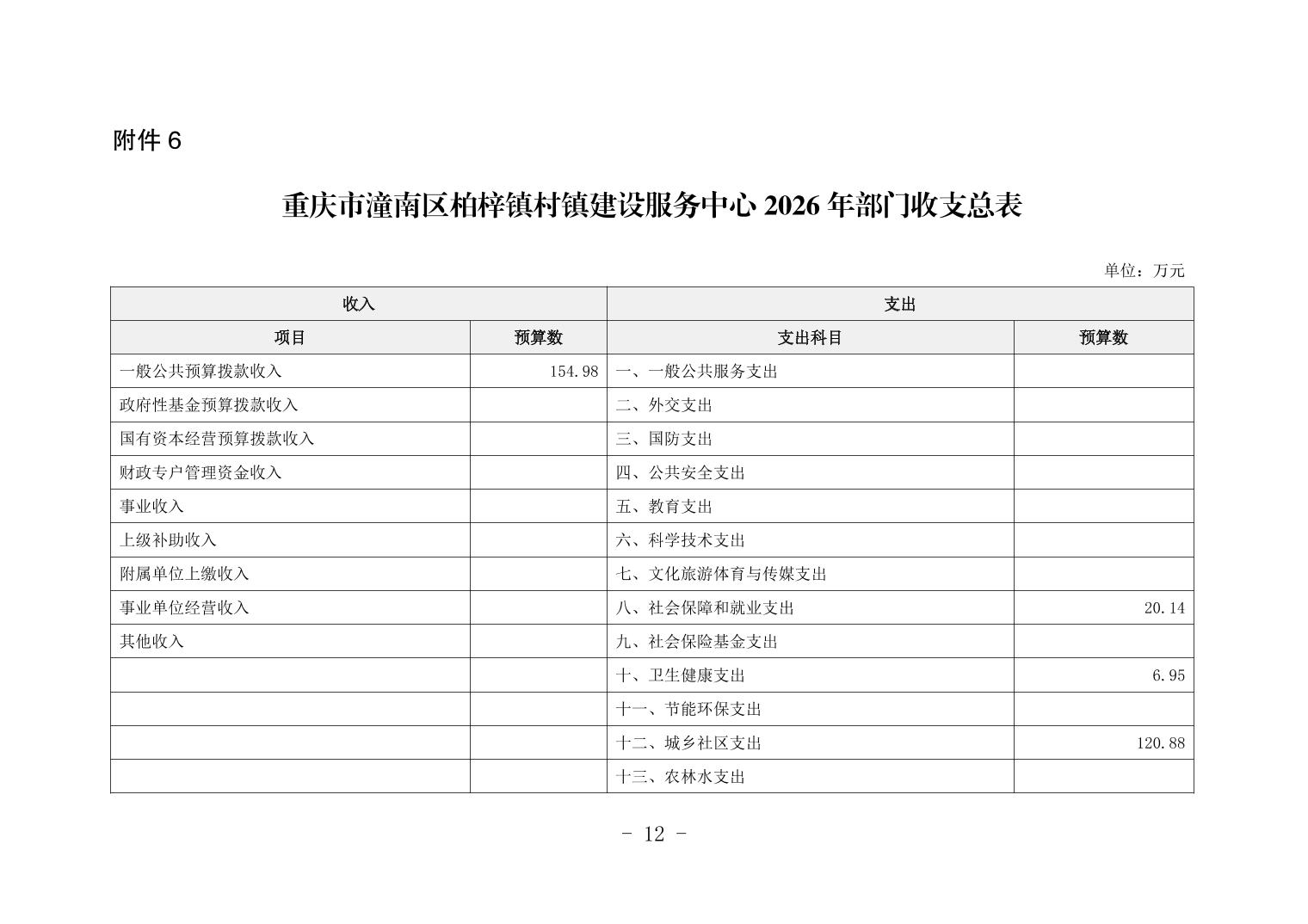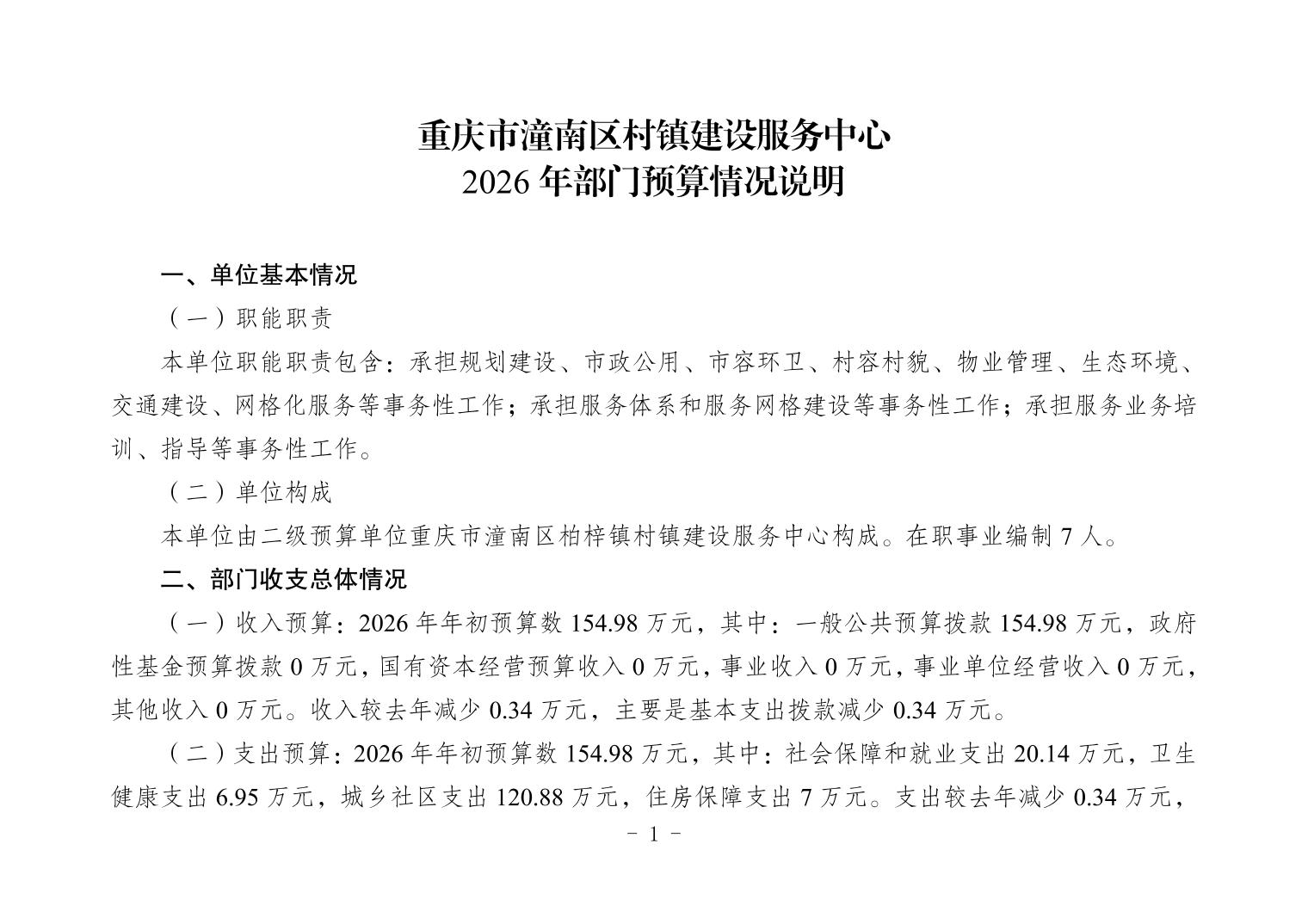 重庆市潼南区村镇建设服务中心2026年部门预算公开