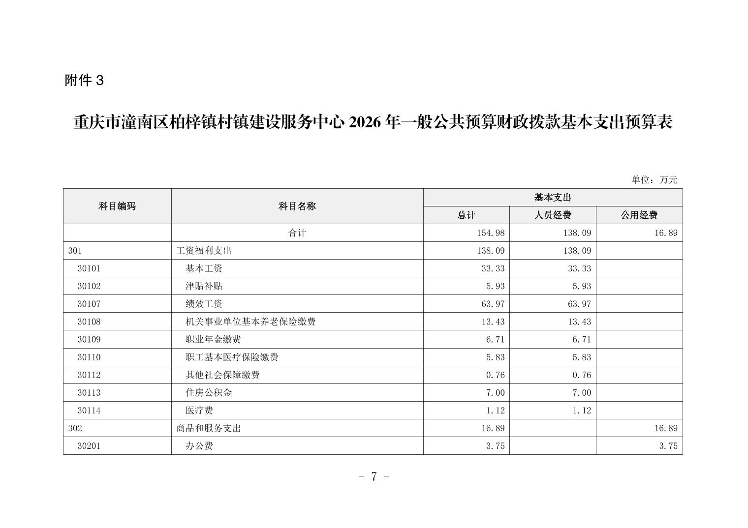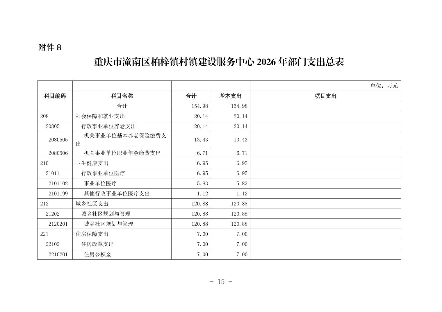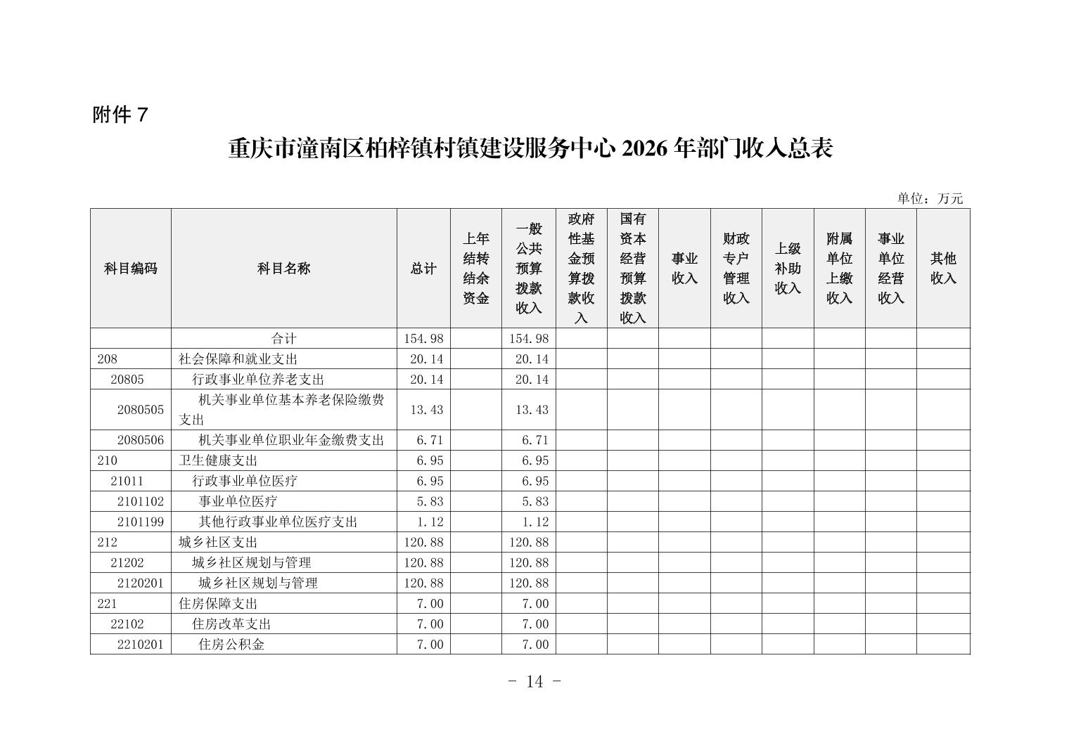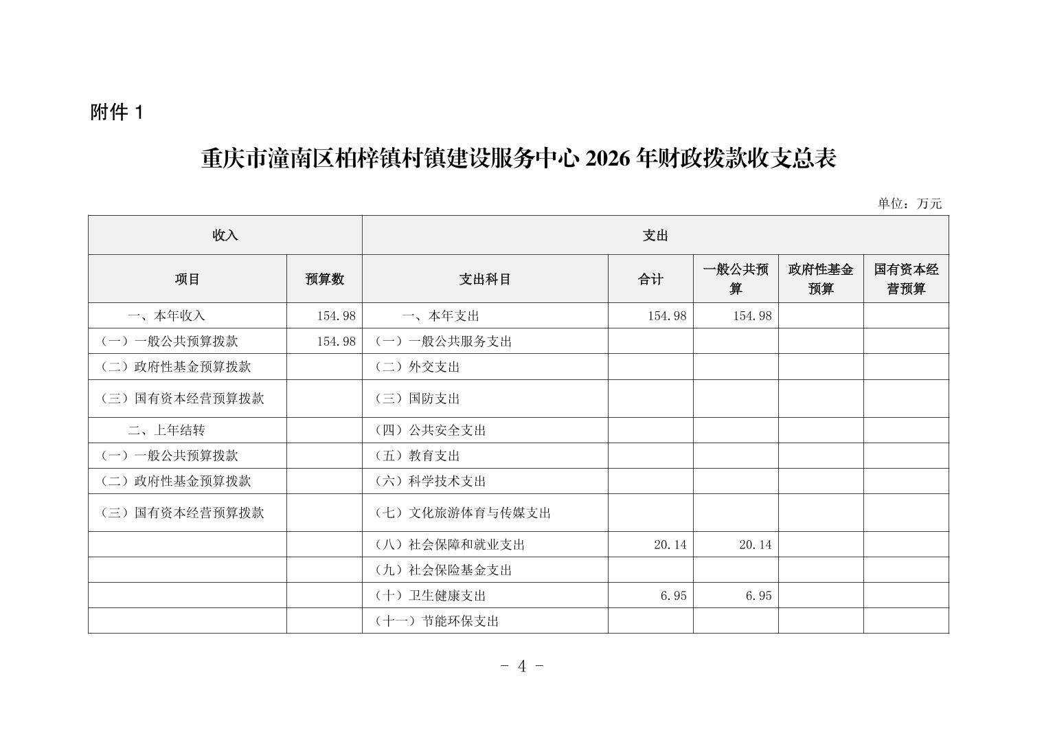 重庆市潼南区村镇建设服务中心2026年部门预算公开