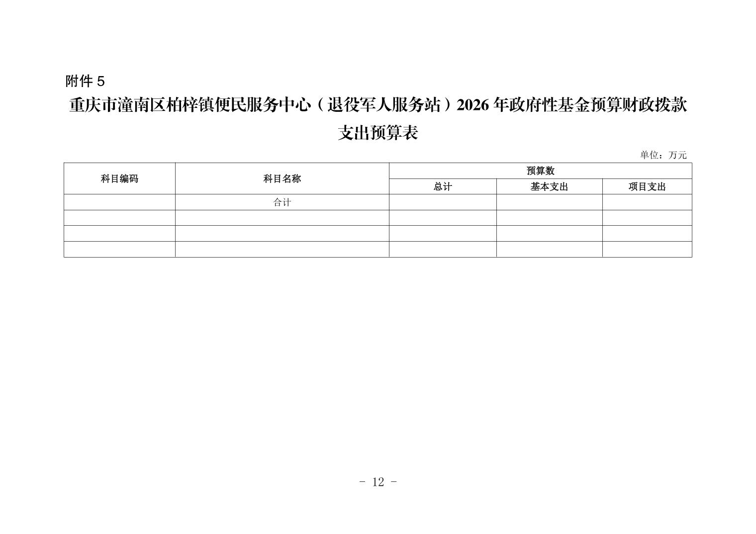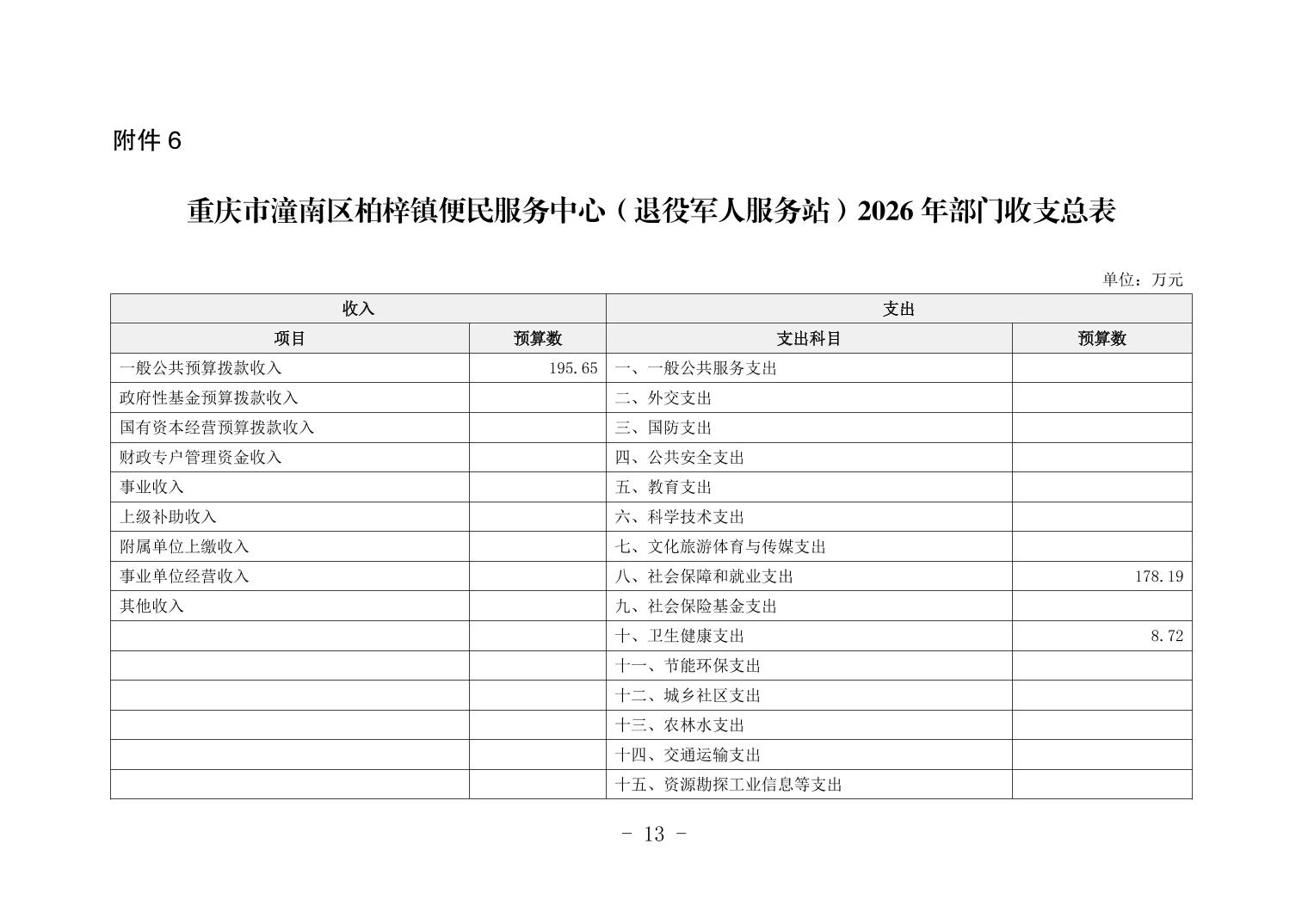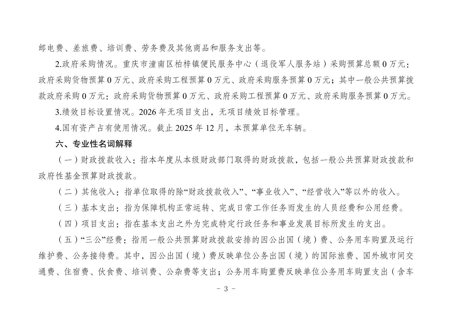 重庆市潼南区柏梓镇便民服务中心(退役军人服务站)2026年部门预算公开