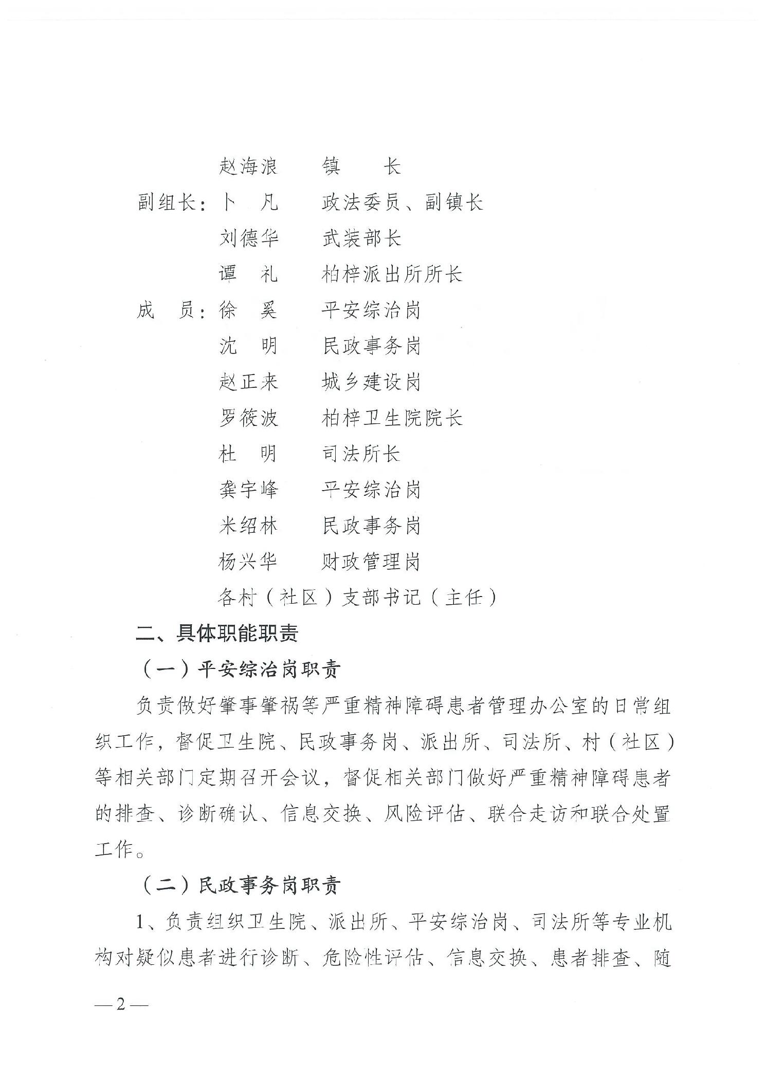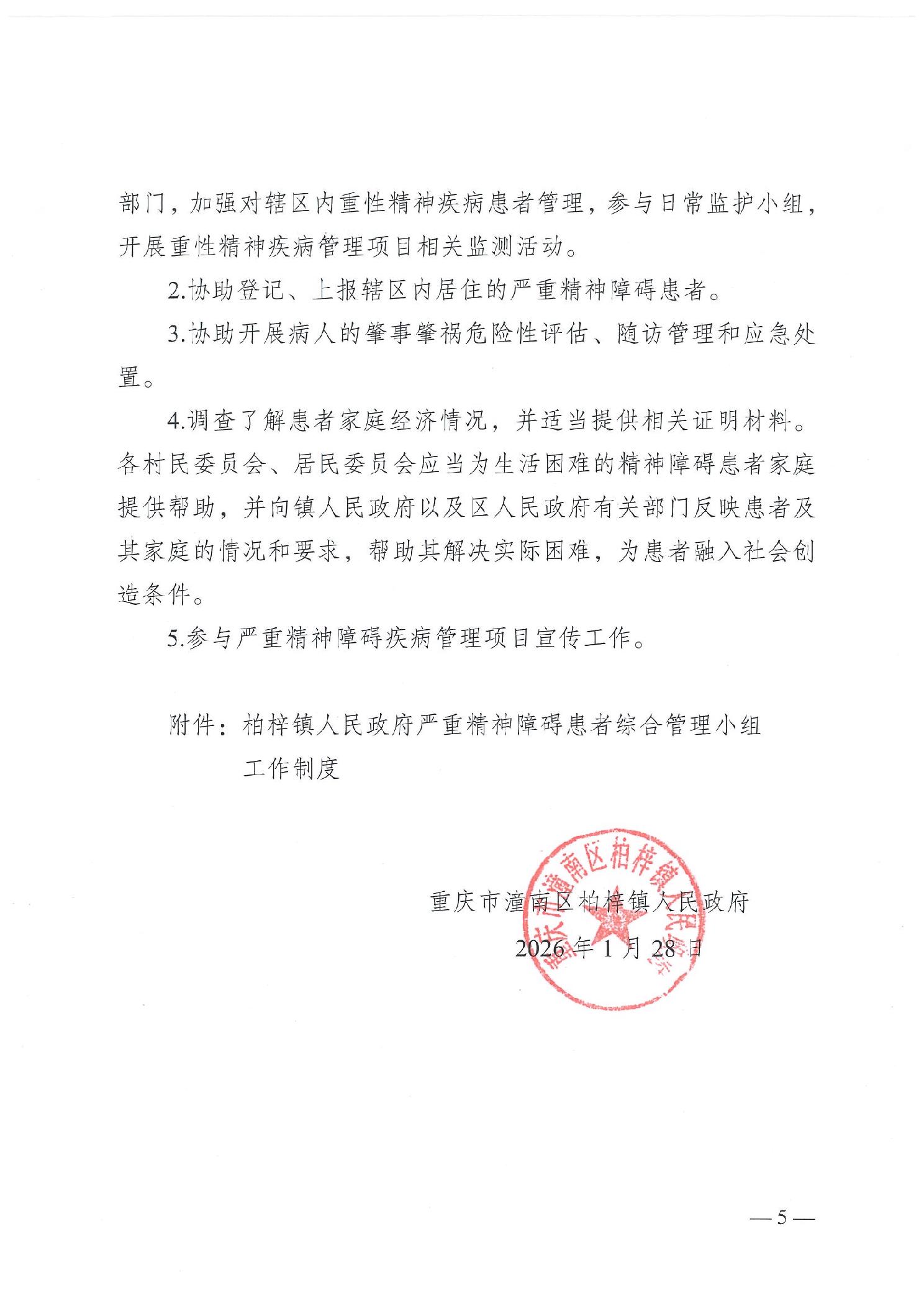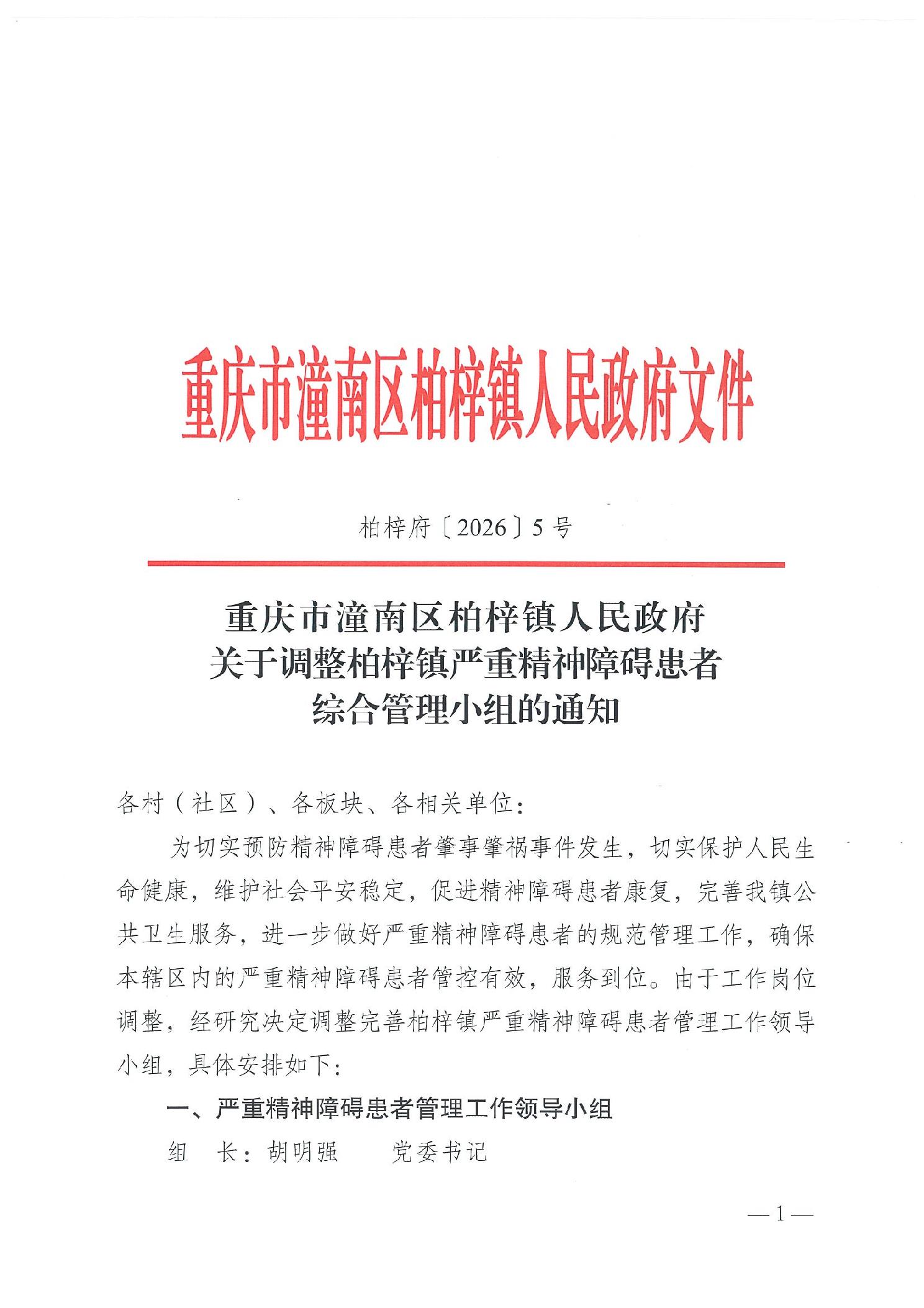 重庆市潼南区柏梓镇人民政府 关于调整柏梓镇严重精神障碍患者综合管理小组的通知