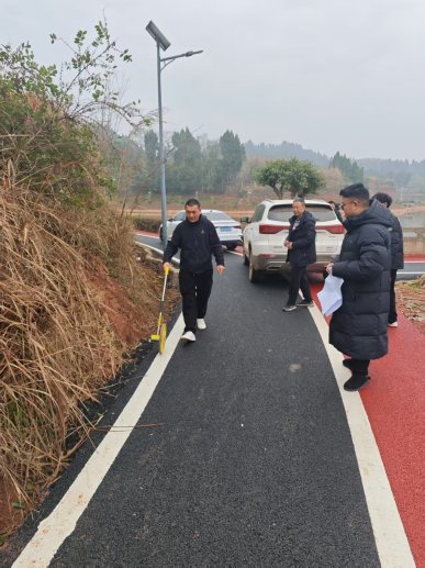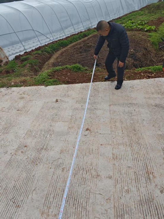 近日,产业发展服务中心邓主任率队前往潼村,对相关项目进行验收。 验收现场,工作人员各司其职,借助卷尺、滚轮测距仪等工具,对道路、场地等工程进行精确测量,包括长度、宽度、厚度等关键数据,确保项目各项指标符合标准。