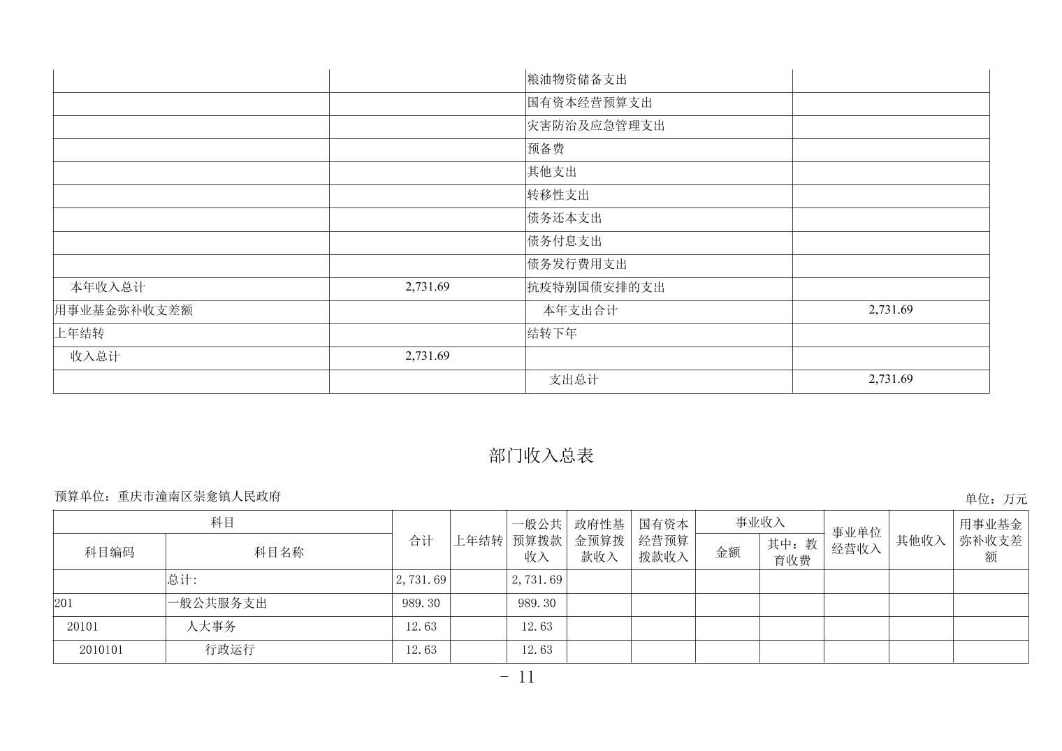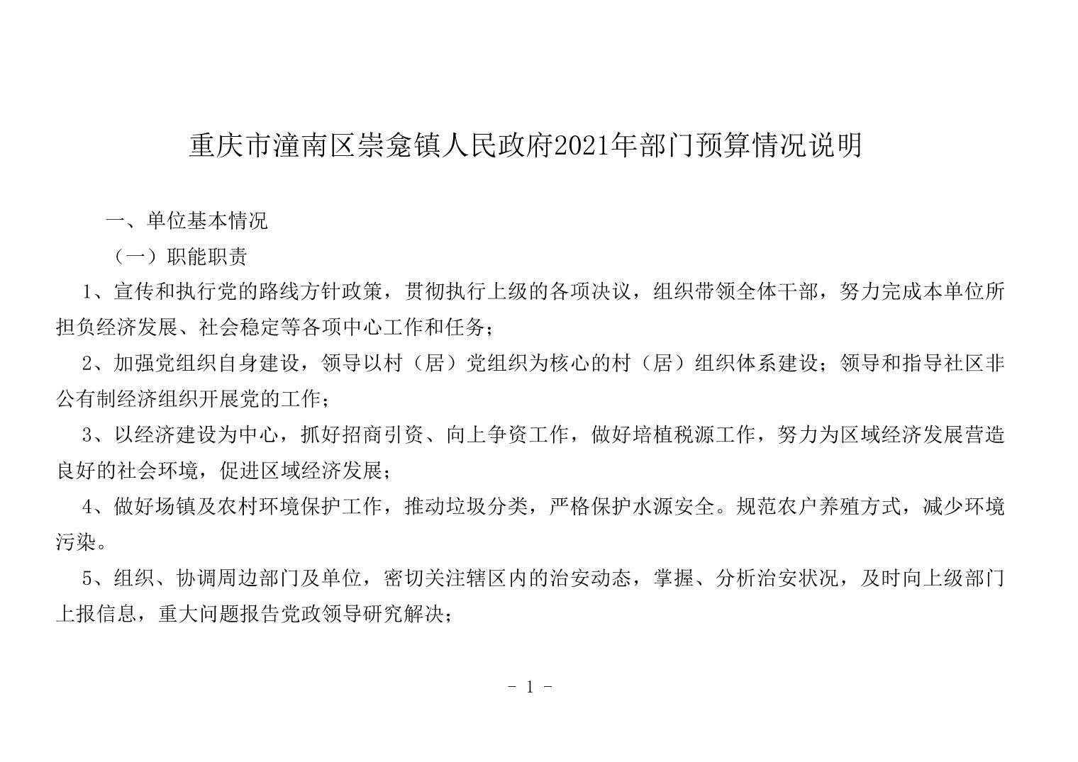 重庆市潼南区崇龛镇人民政府2021年部门预算情况说明