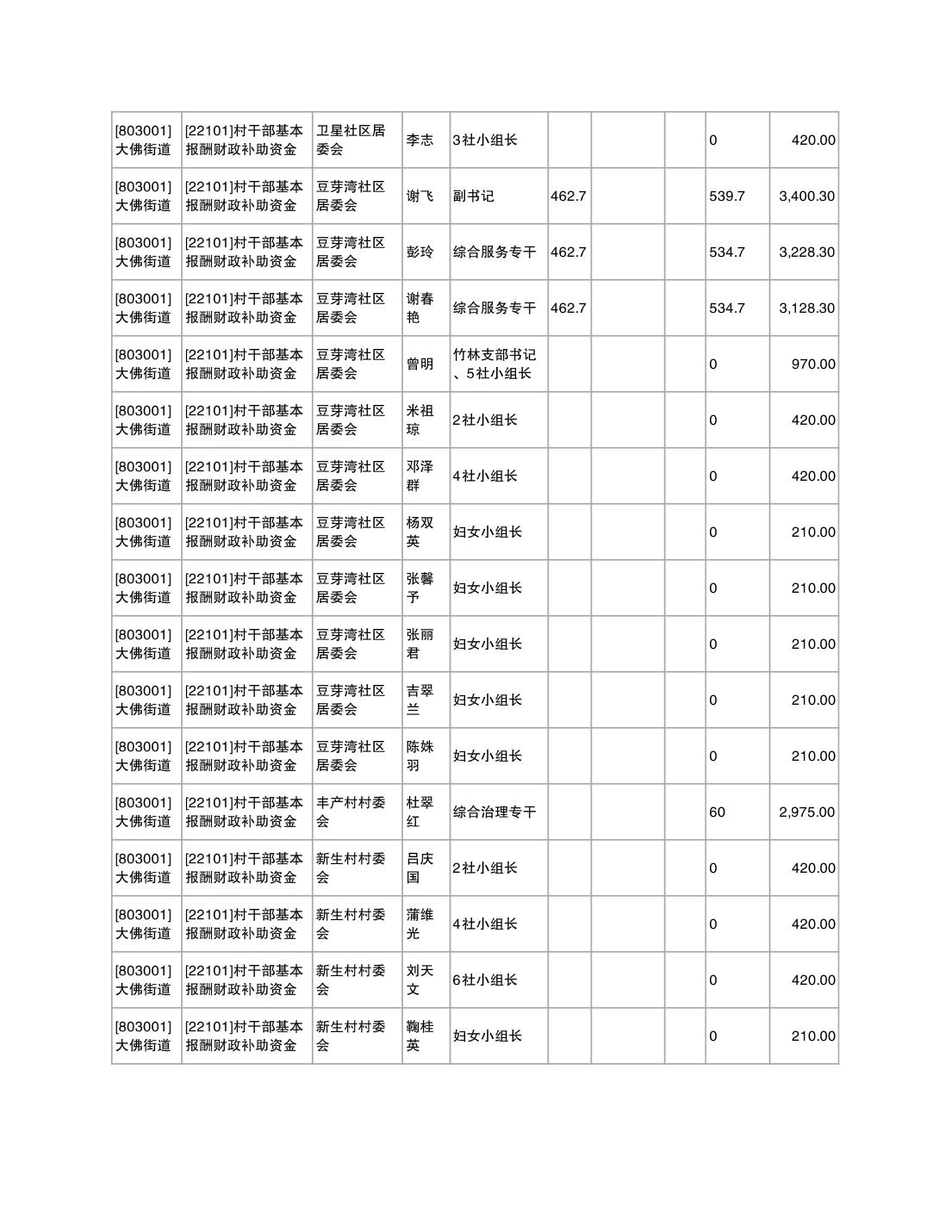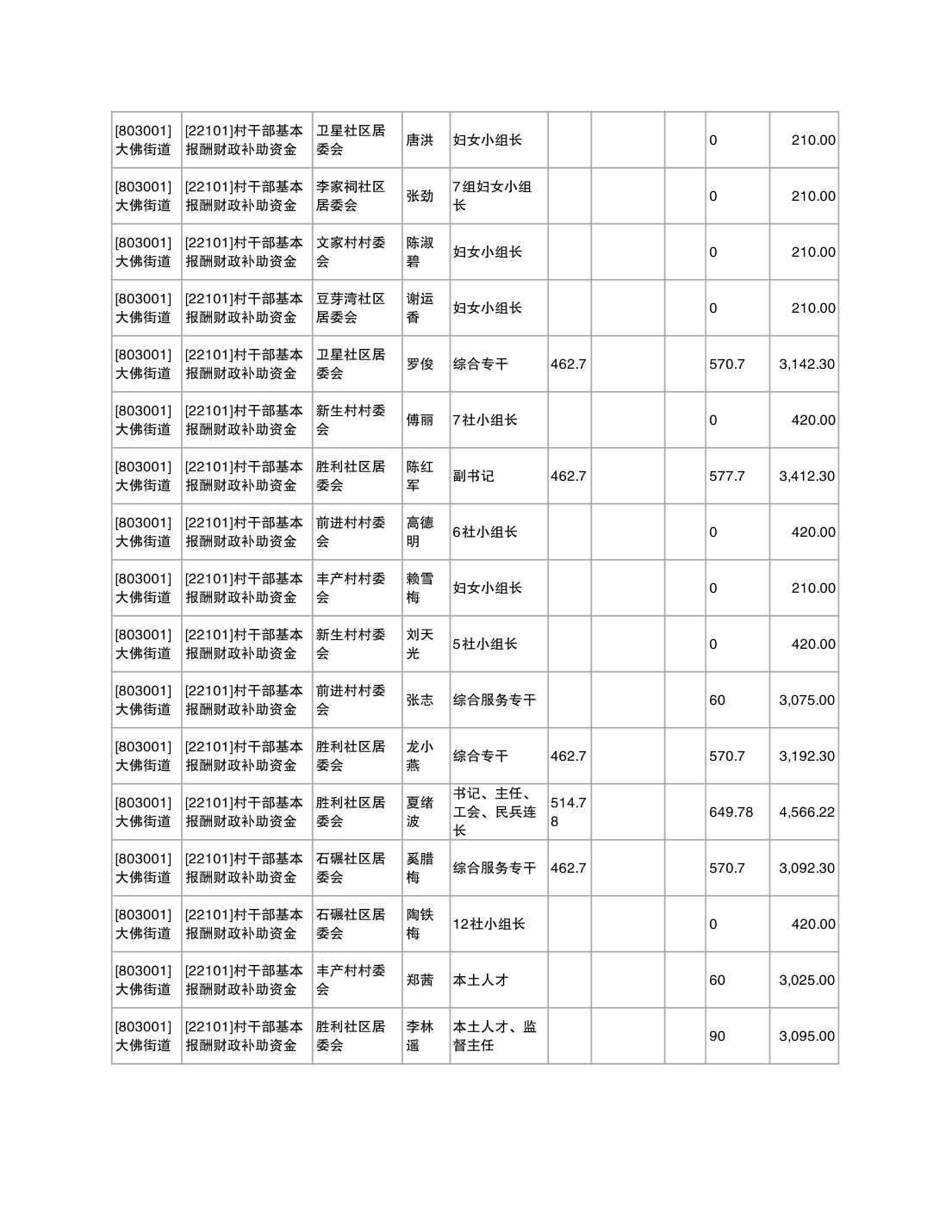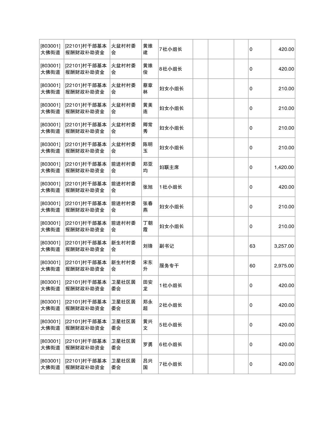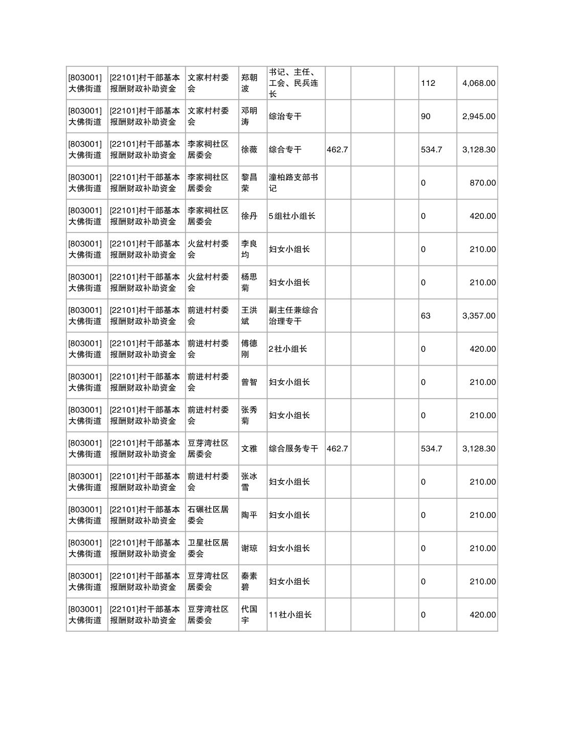 重庆市潼南区大佛街道6月村社干部报酬补助公示表