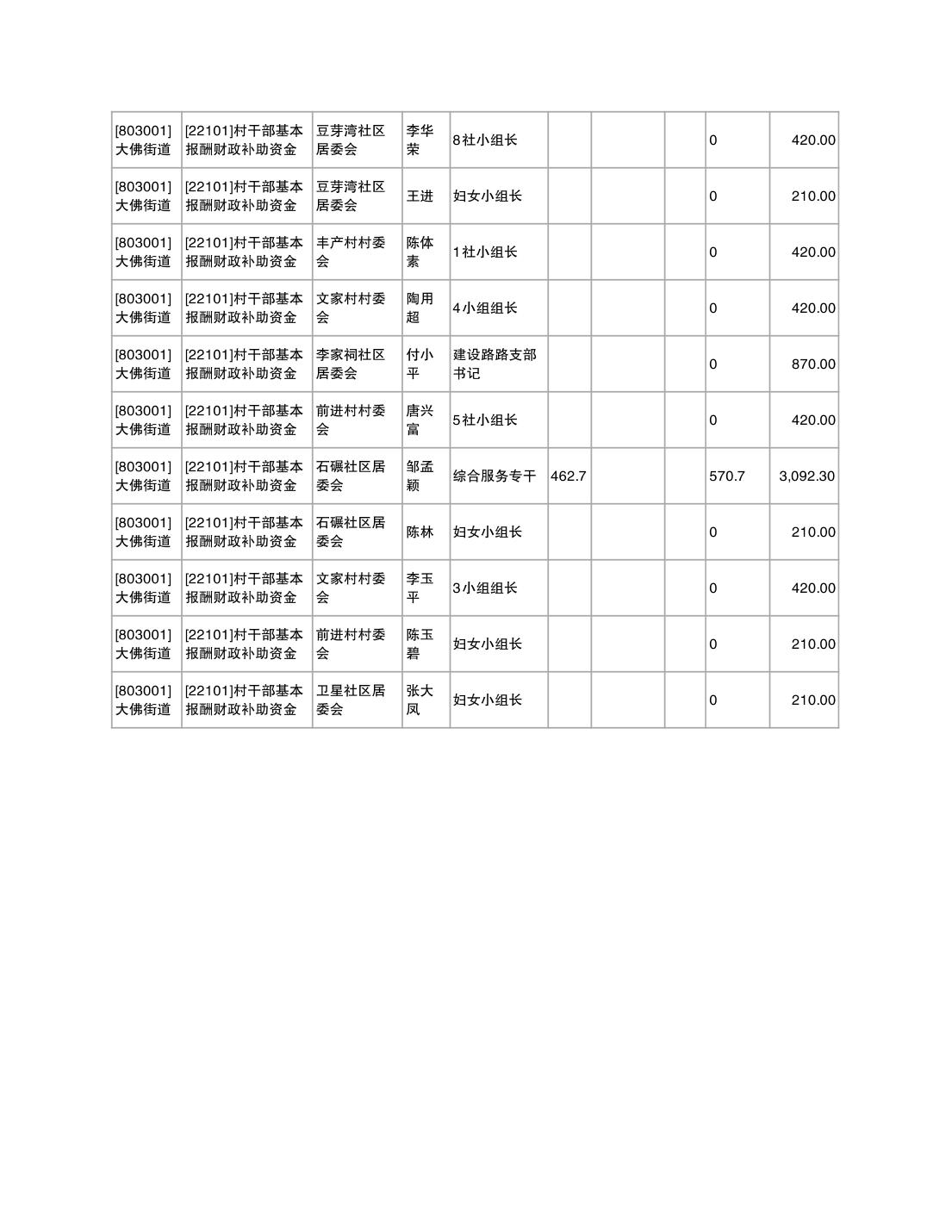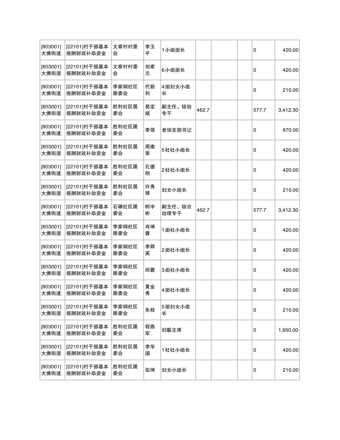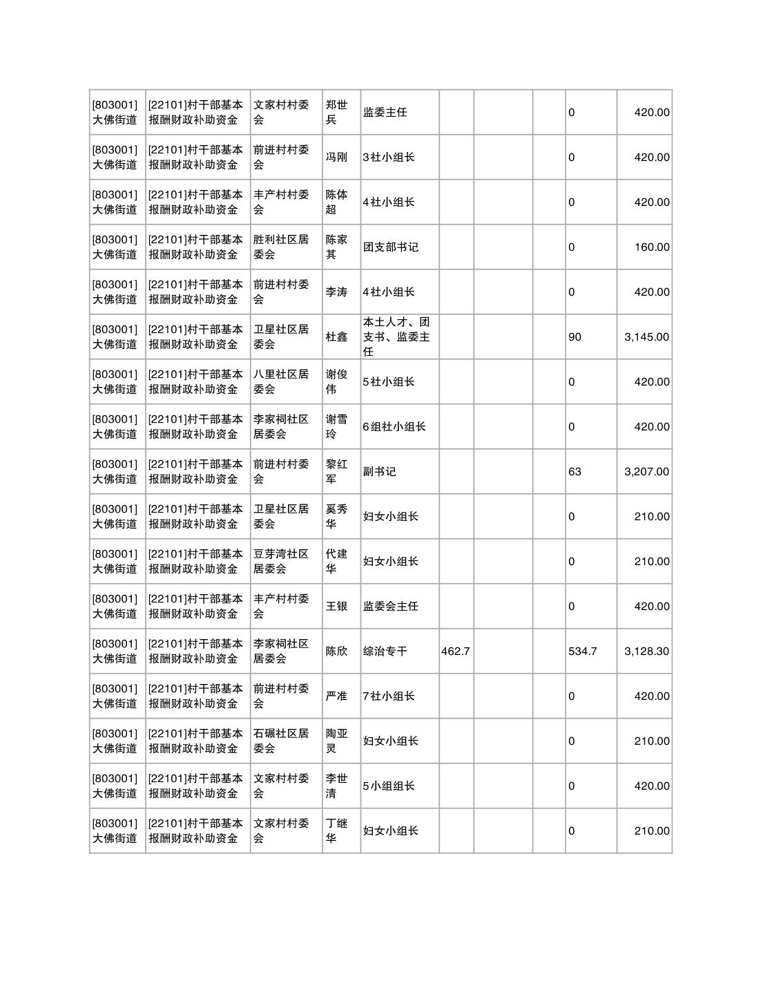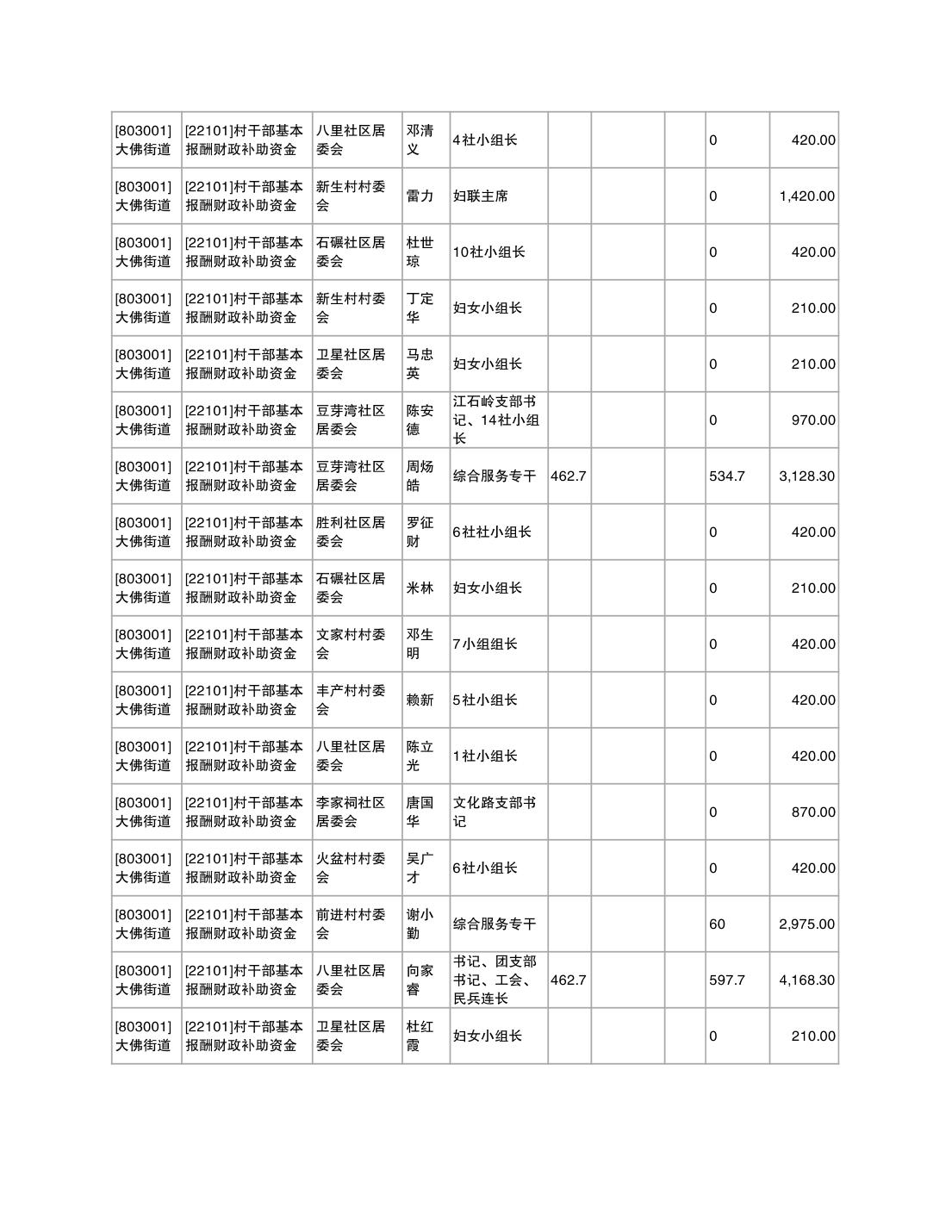 重庆市潼南区大佛街道6月村社干部报酬补助公示表