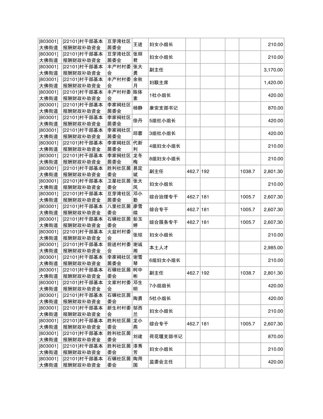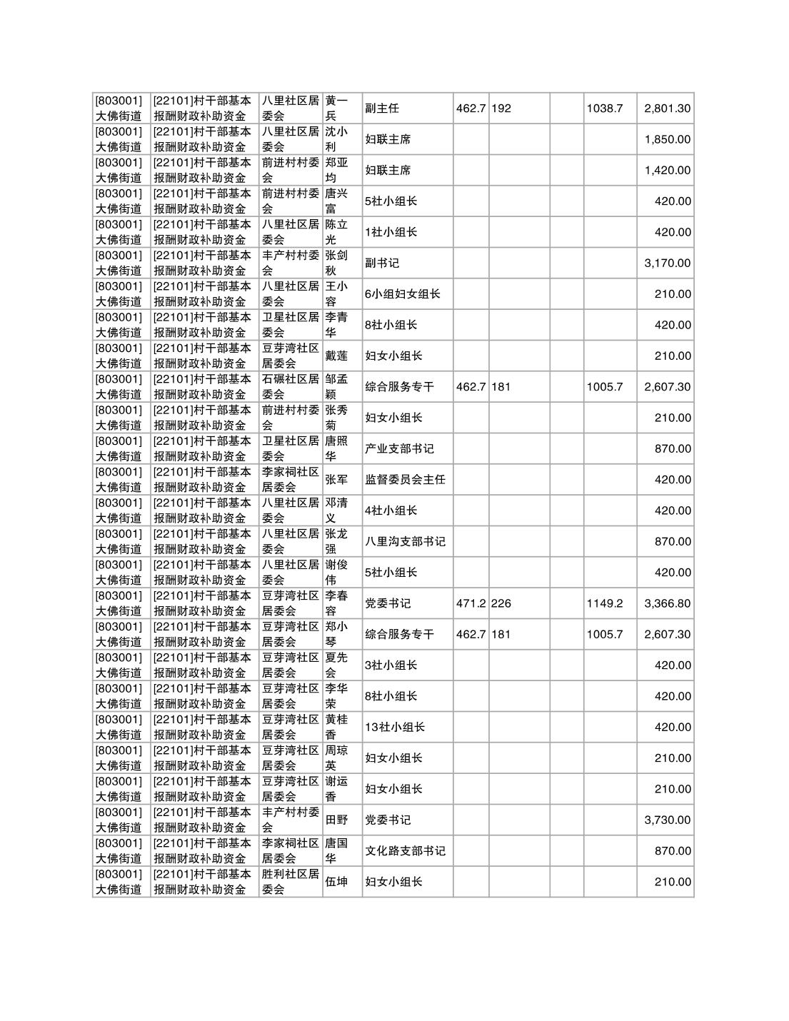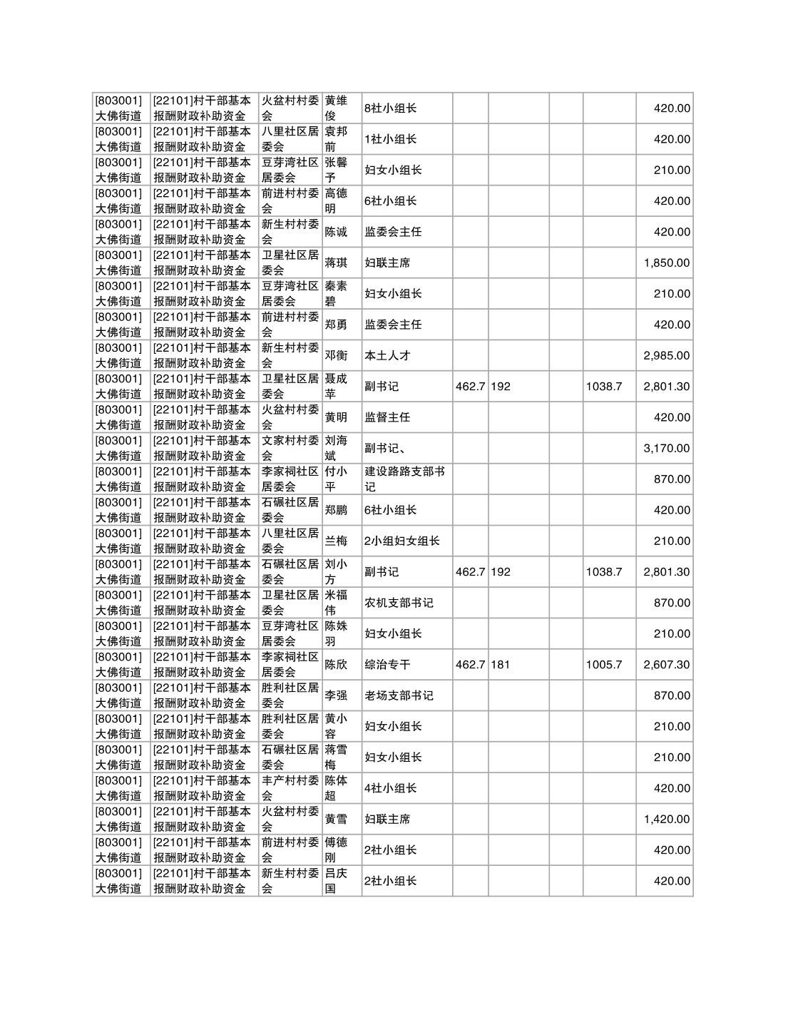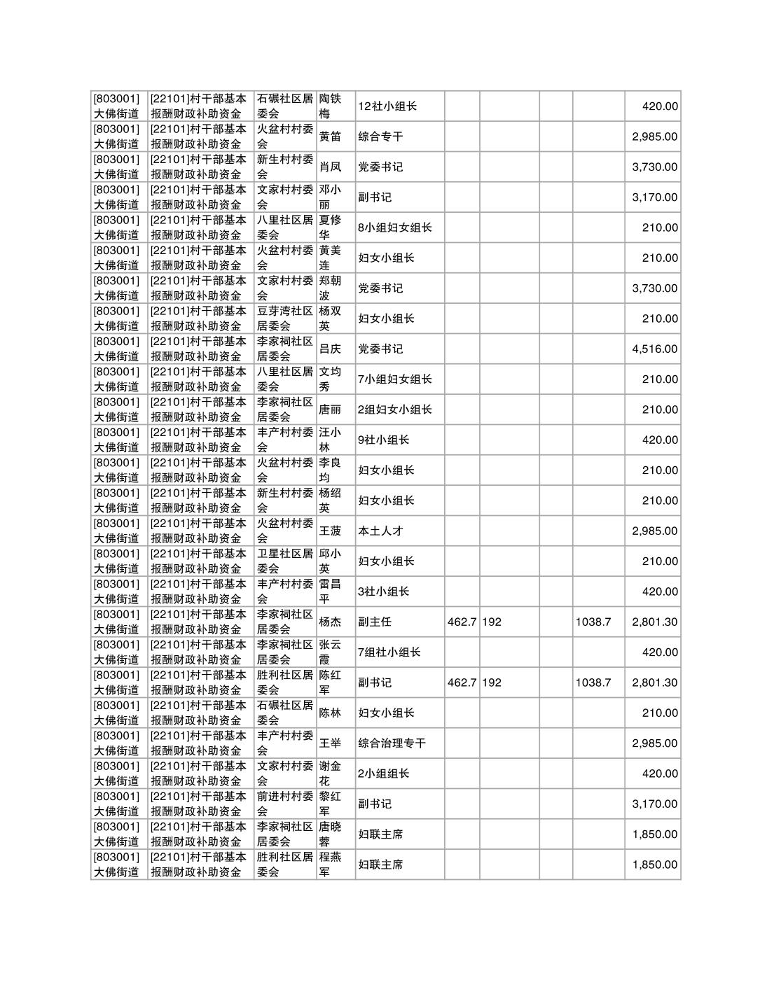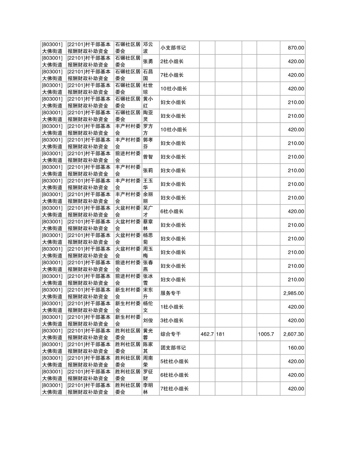 重庆市潼南区大佛街道9月村社干部报酬补助公示表