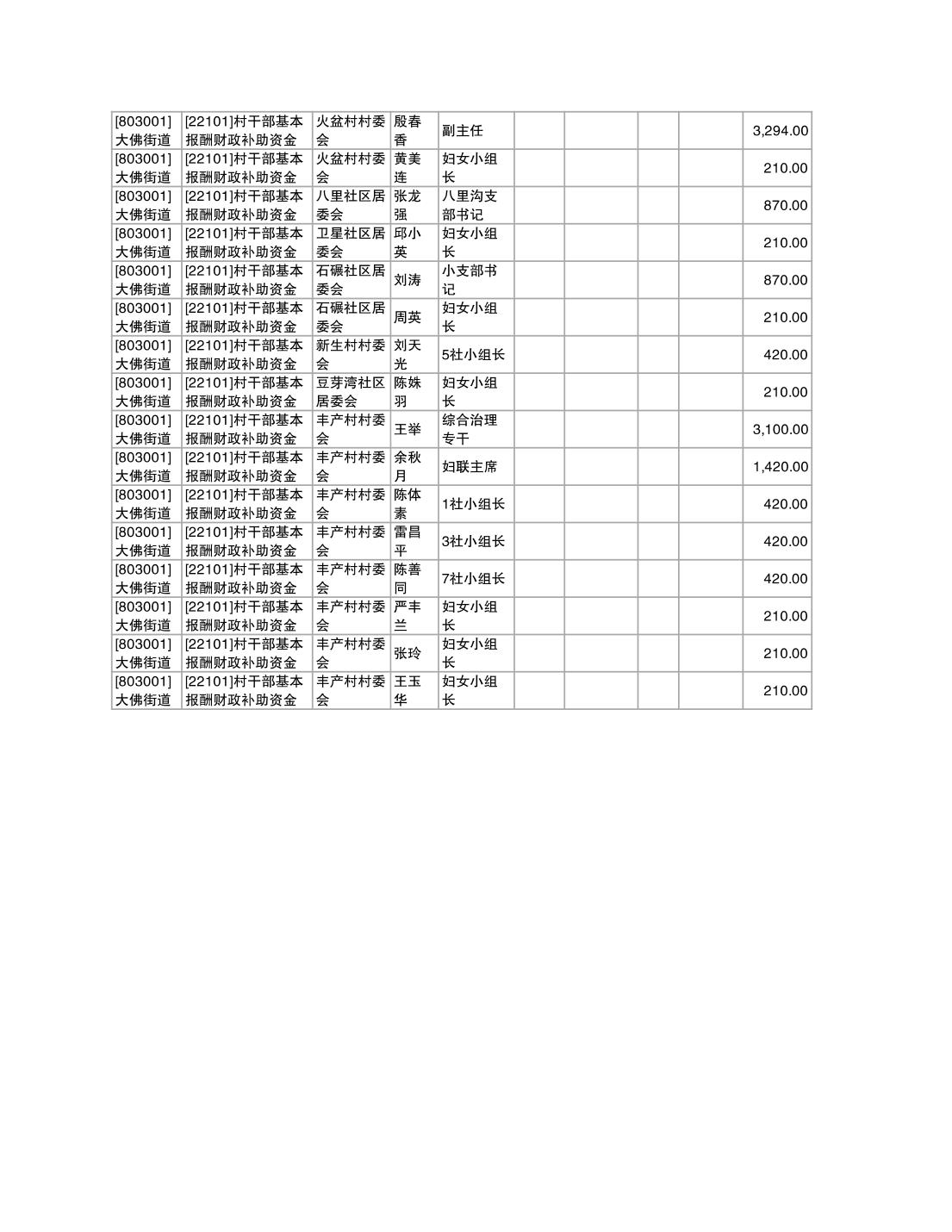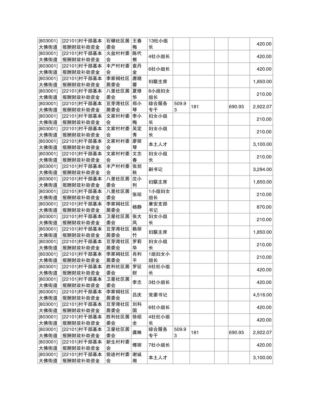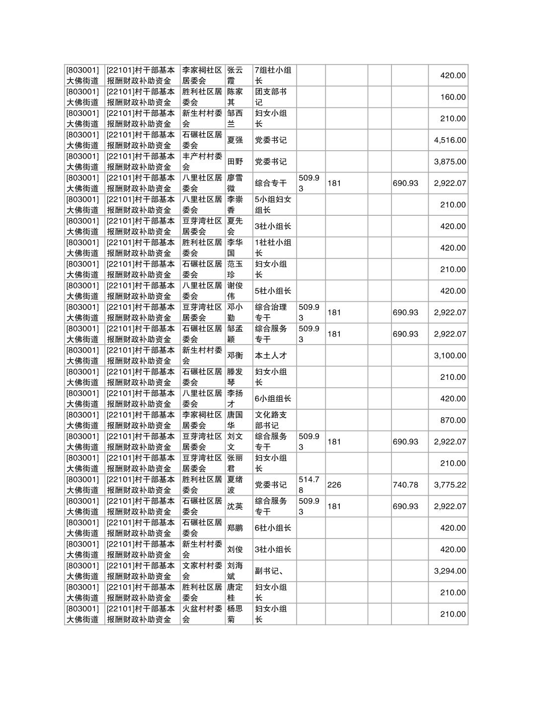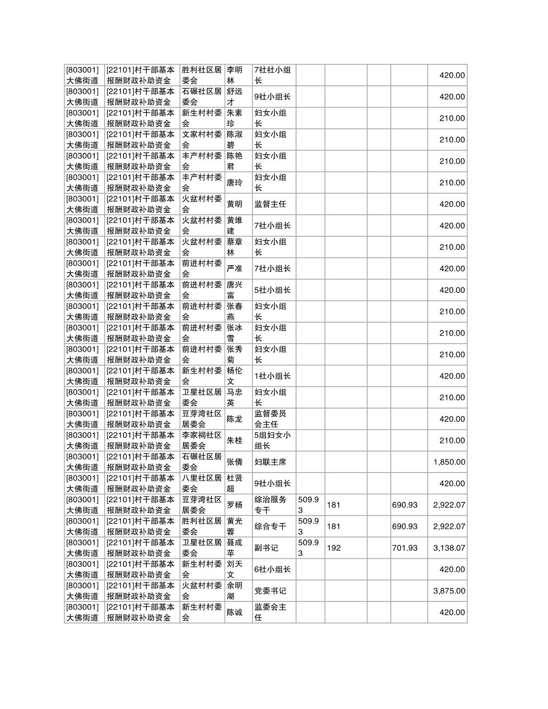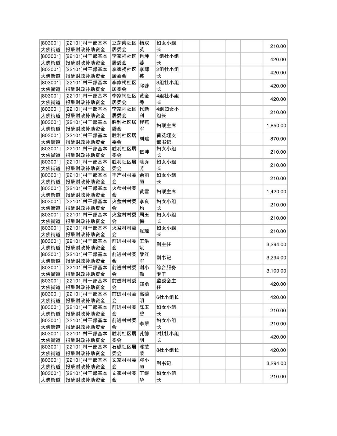 重庆市潼南区大佛街道10月村社干部报酬补助公示表