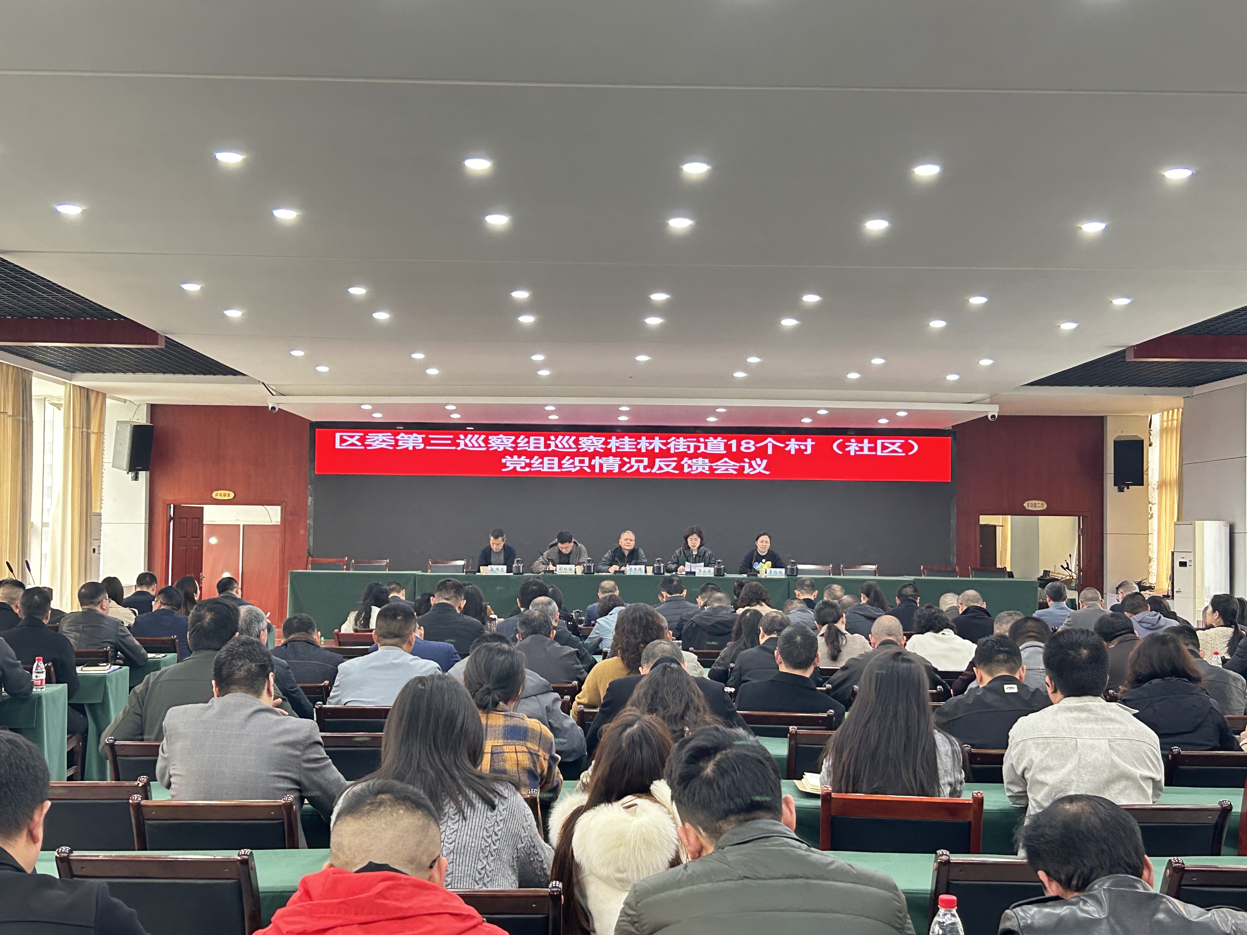 区委第三巡察组副组长及有关同志,区纪委监委有关监督检查室和区委组织部有关科室同志出席会议;桂林街道全体正式干部职工,梨树村第一书记,18个村(社区)四职干部列席会议。