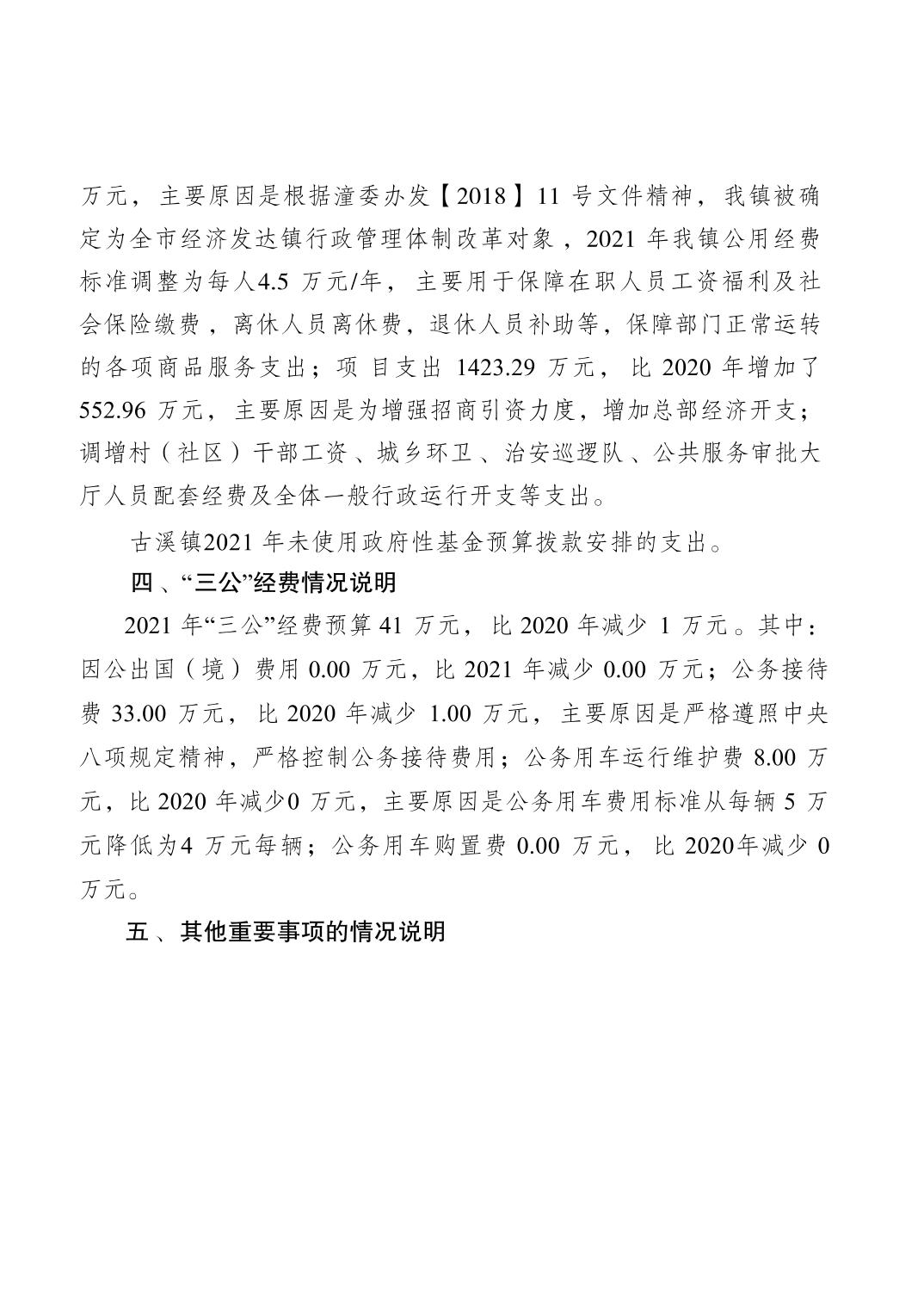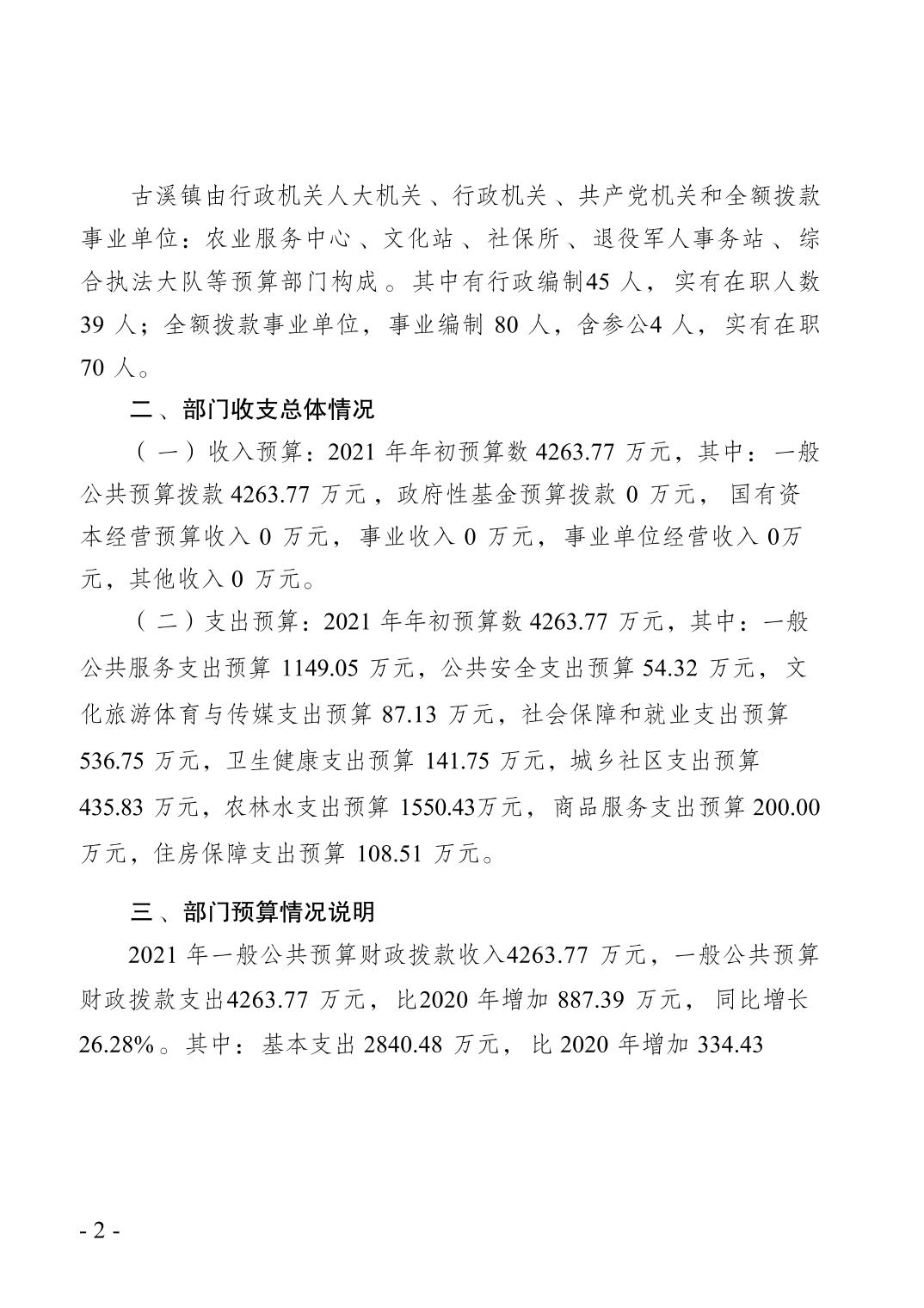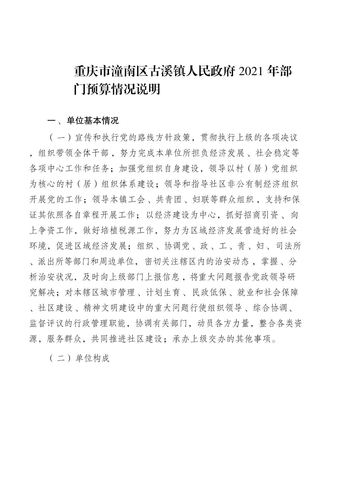 重庆市潼南区古溪镇人民政府2021年部门预算情况说明