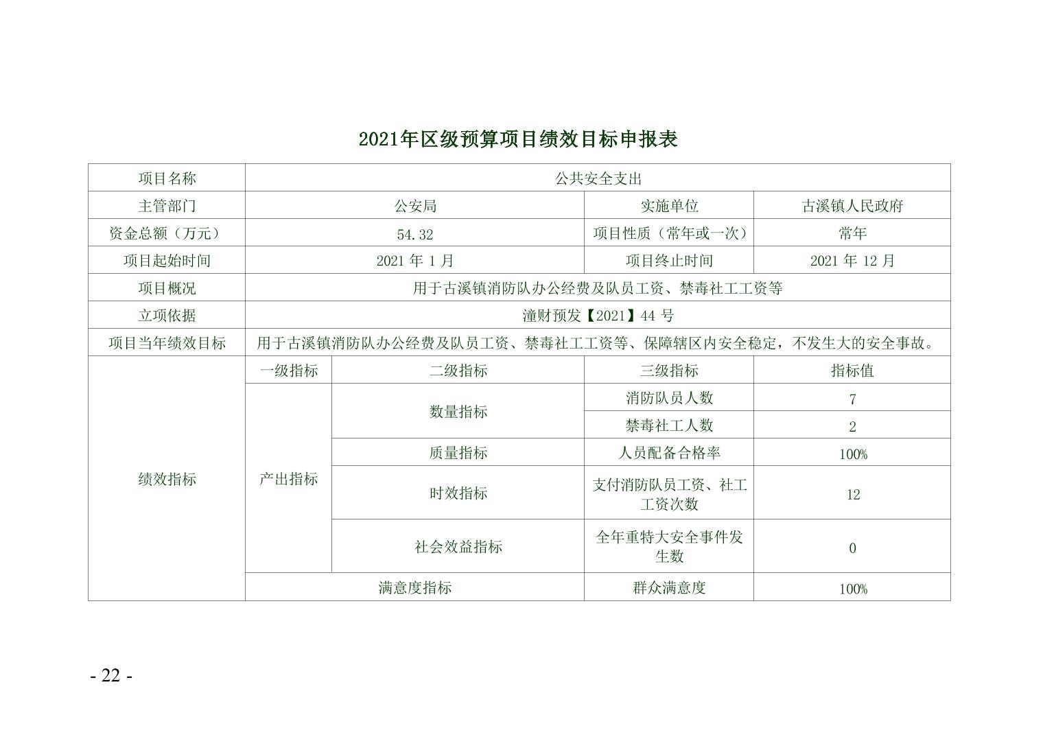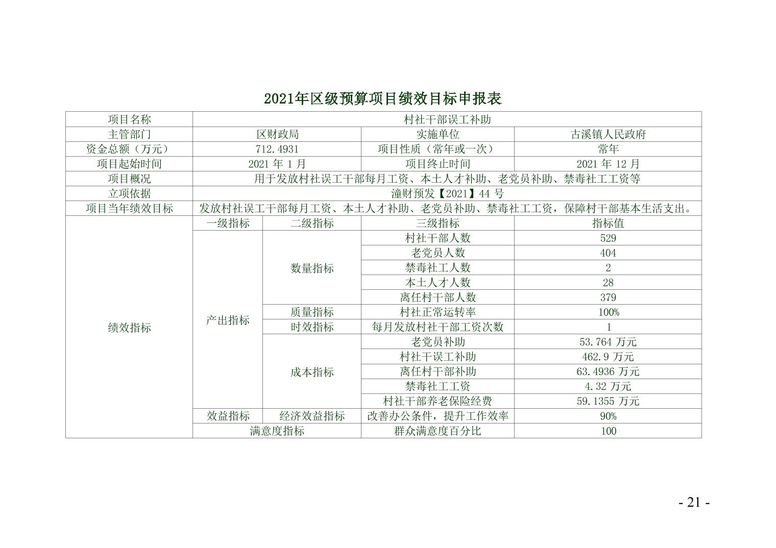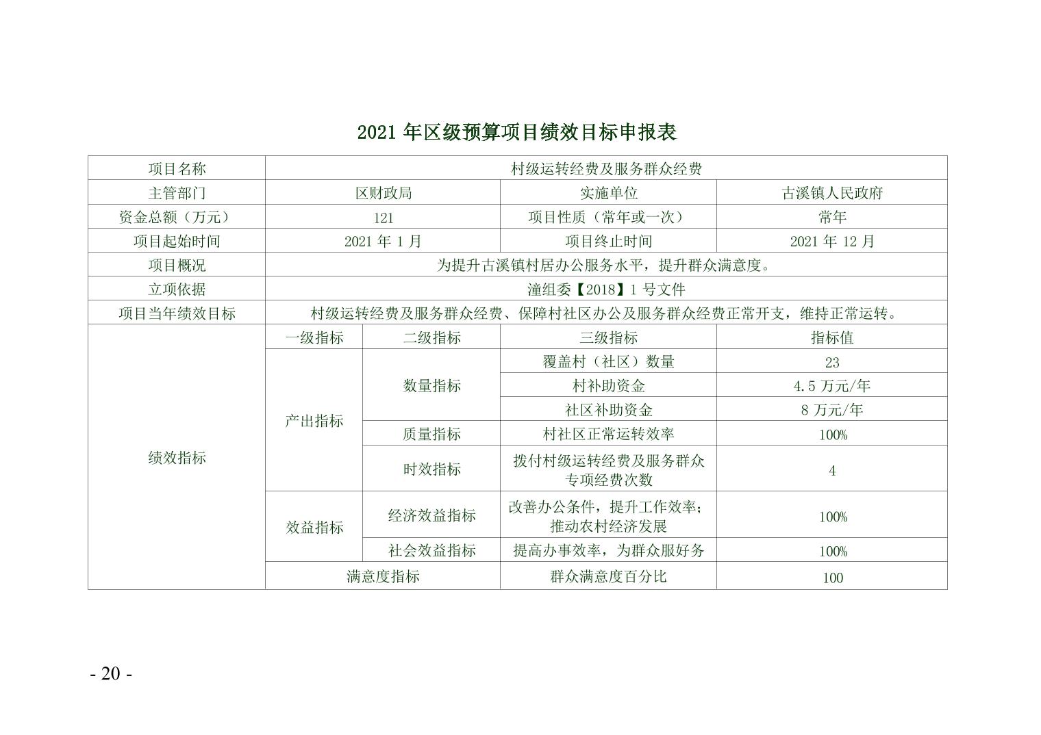 重庆市潼南区古溪镇人民政府2021年部门预算情况说明