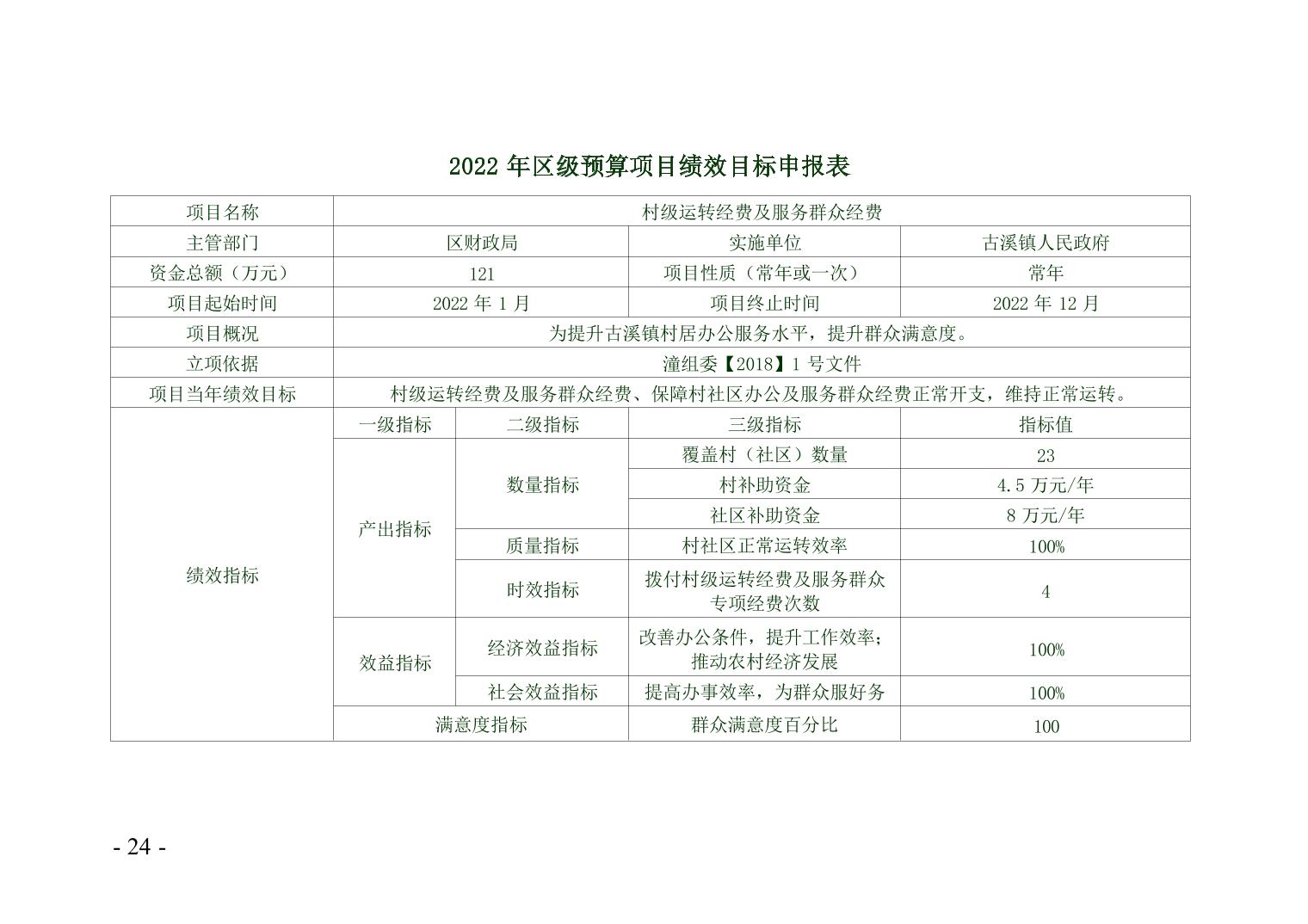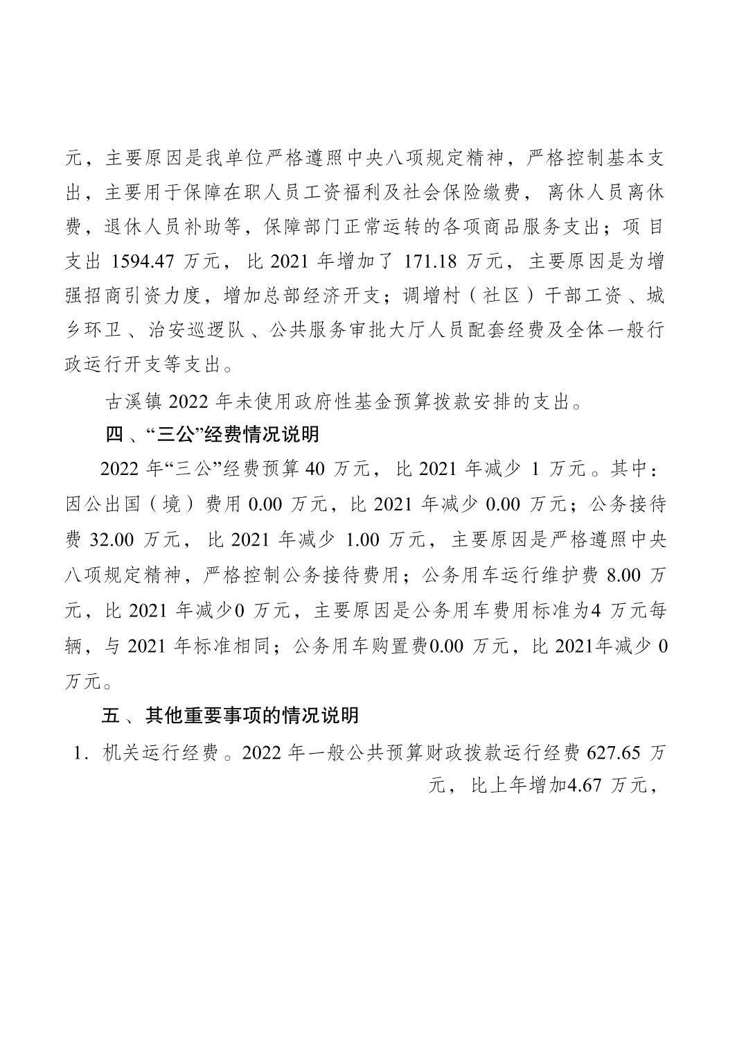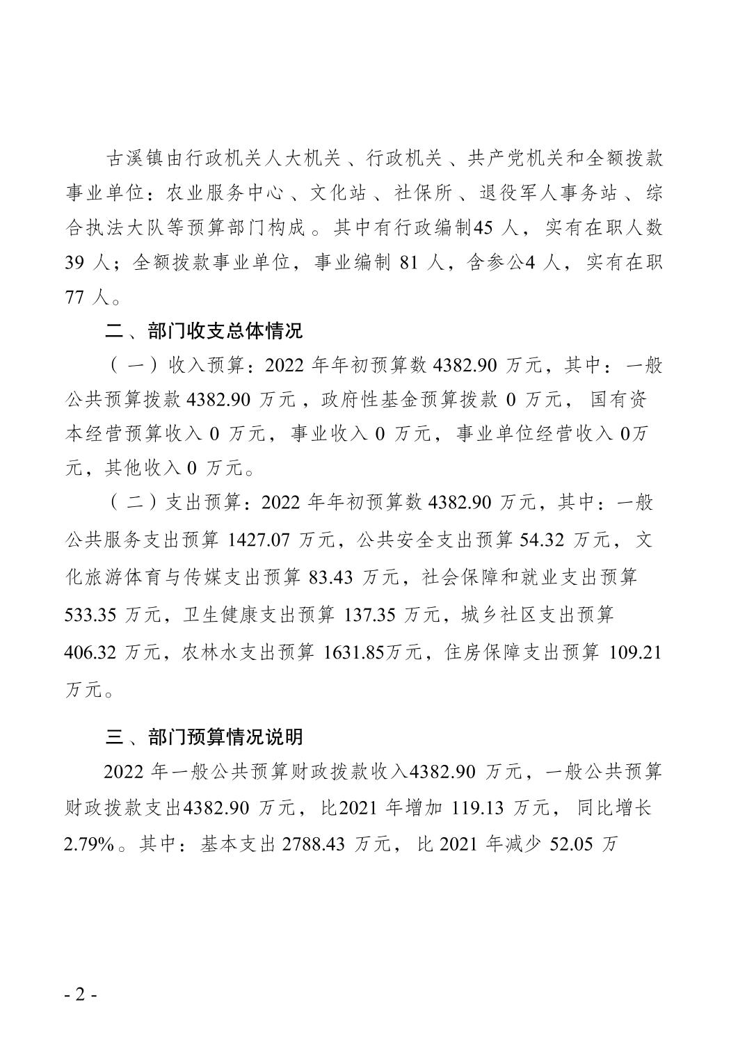 重庆市潼南区古溪镇人民政府 2022 年部门预算情况说明