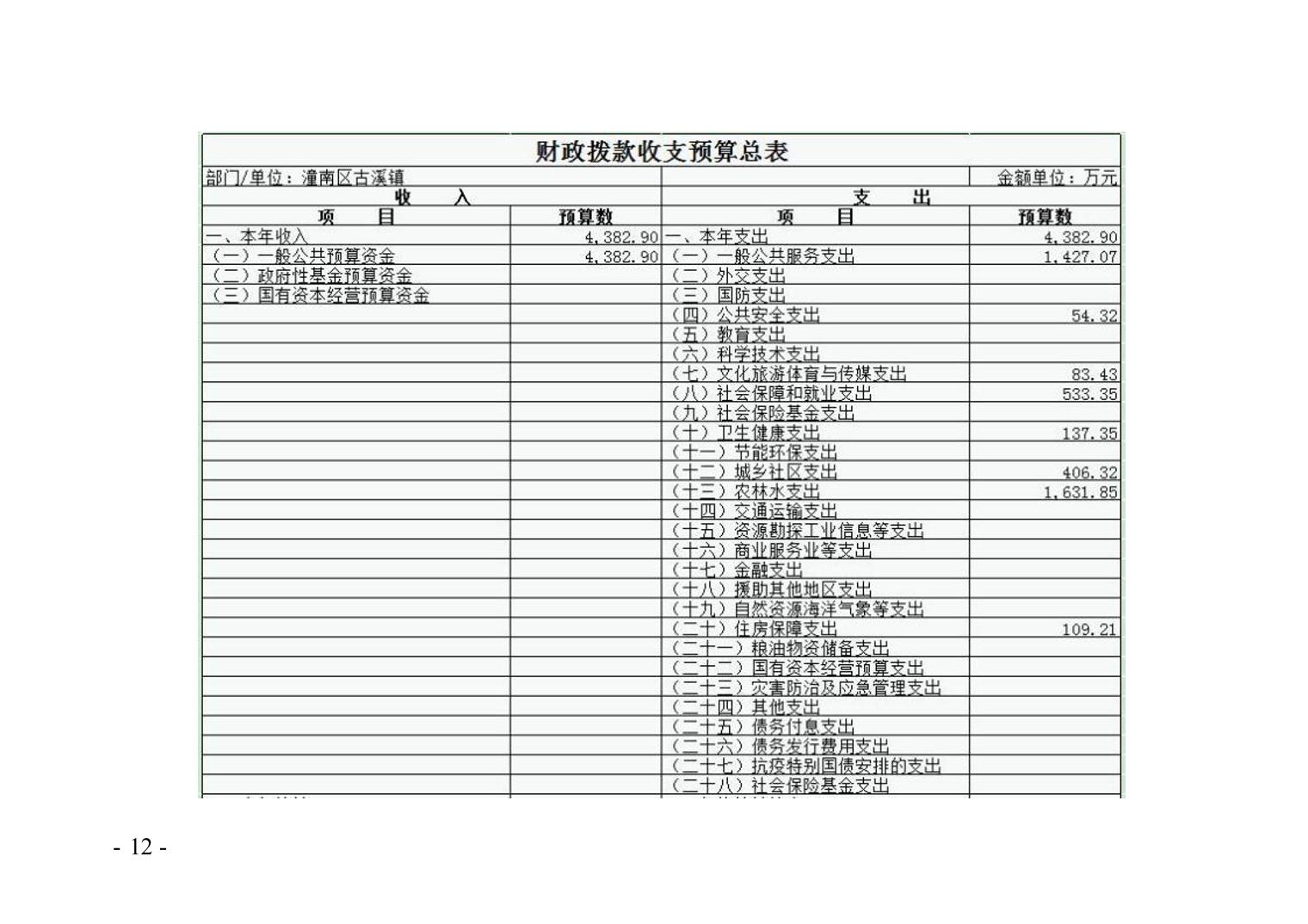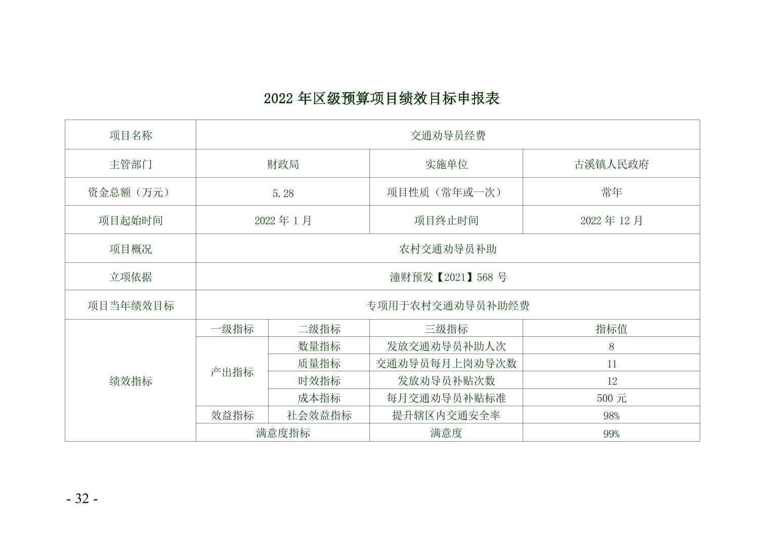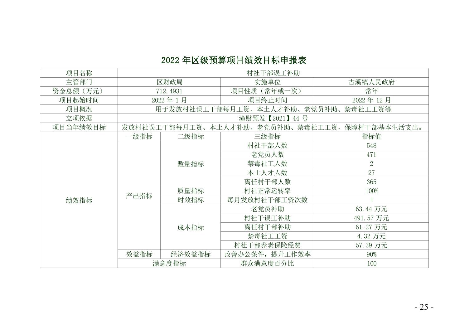 重庆市潼南区古溪镇人民政府 2022 年部门预算情况说明