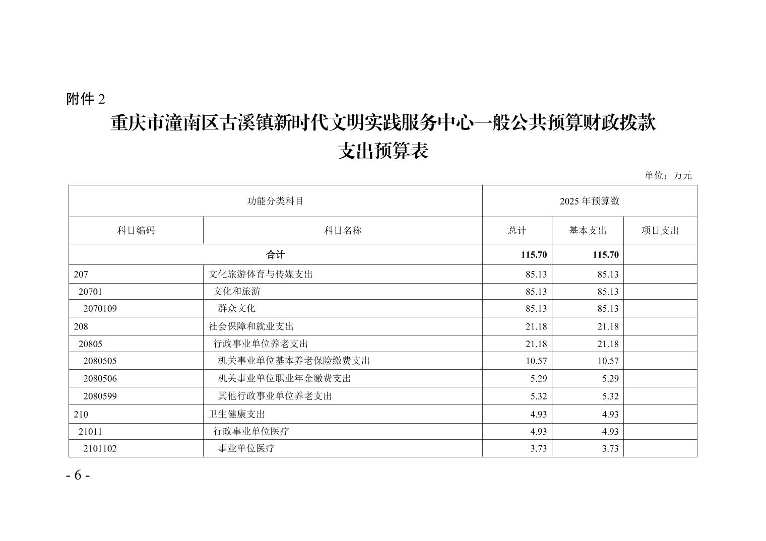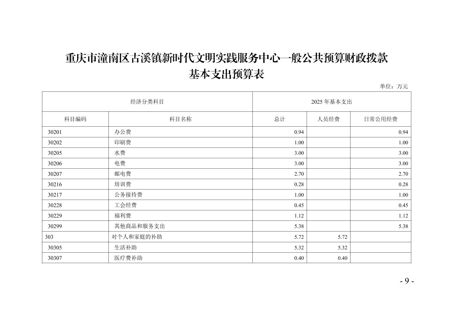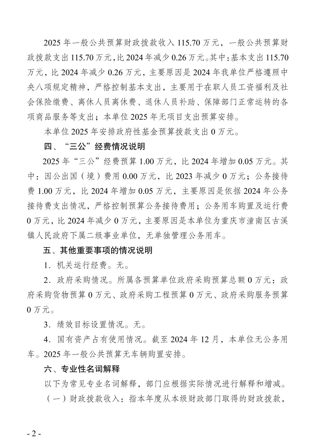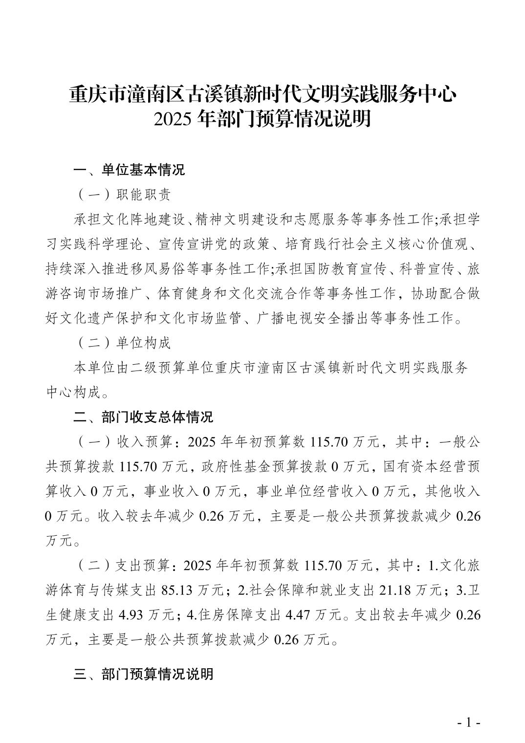 重庆市潼南区古溪镇新时代文明实践服务中心2025年部门预算情况说明