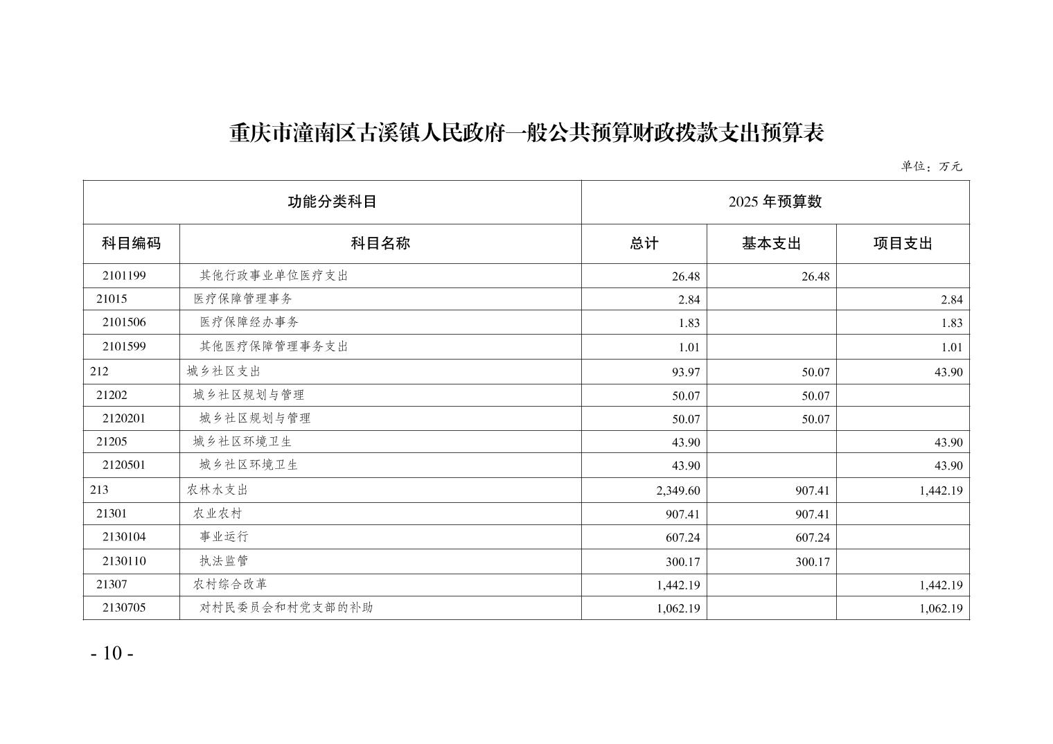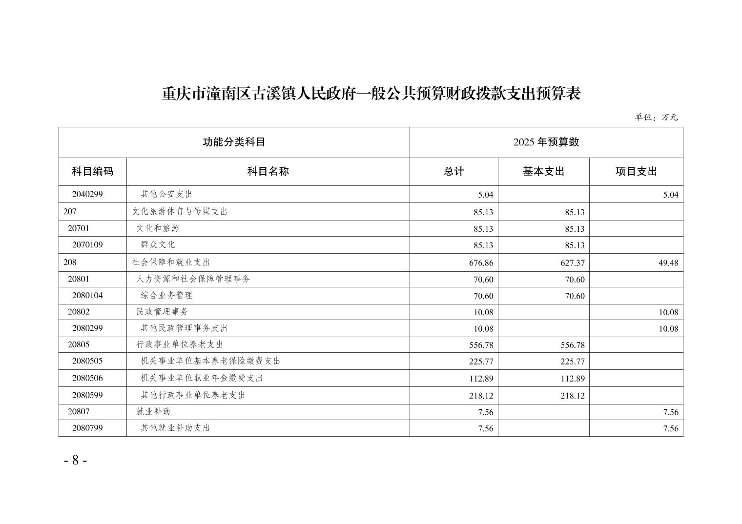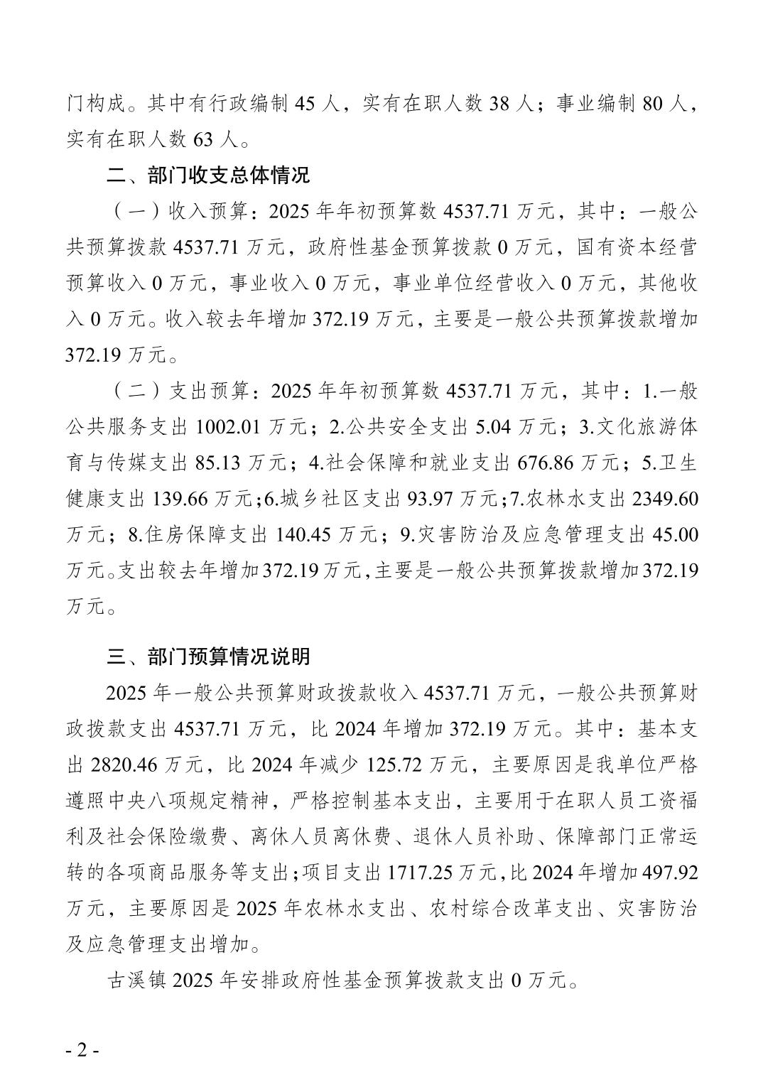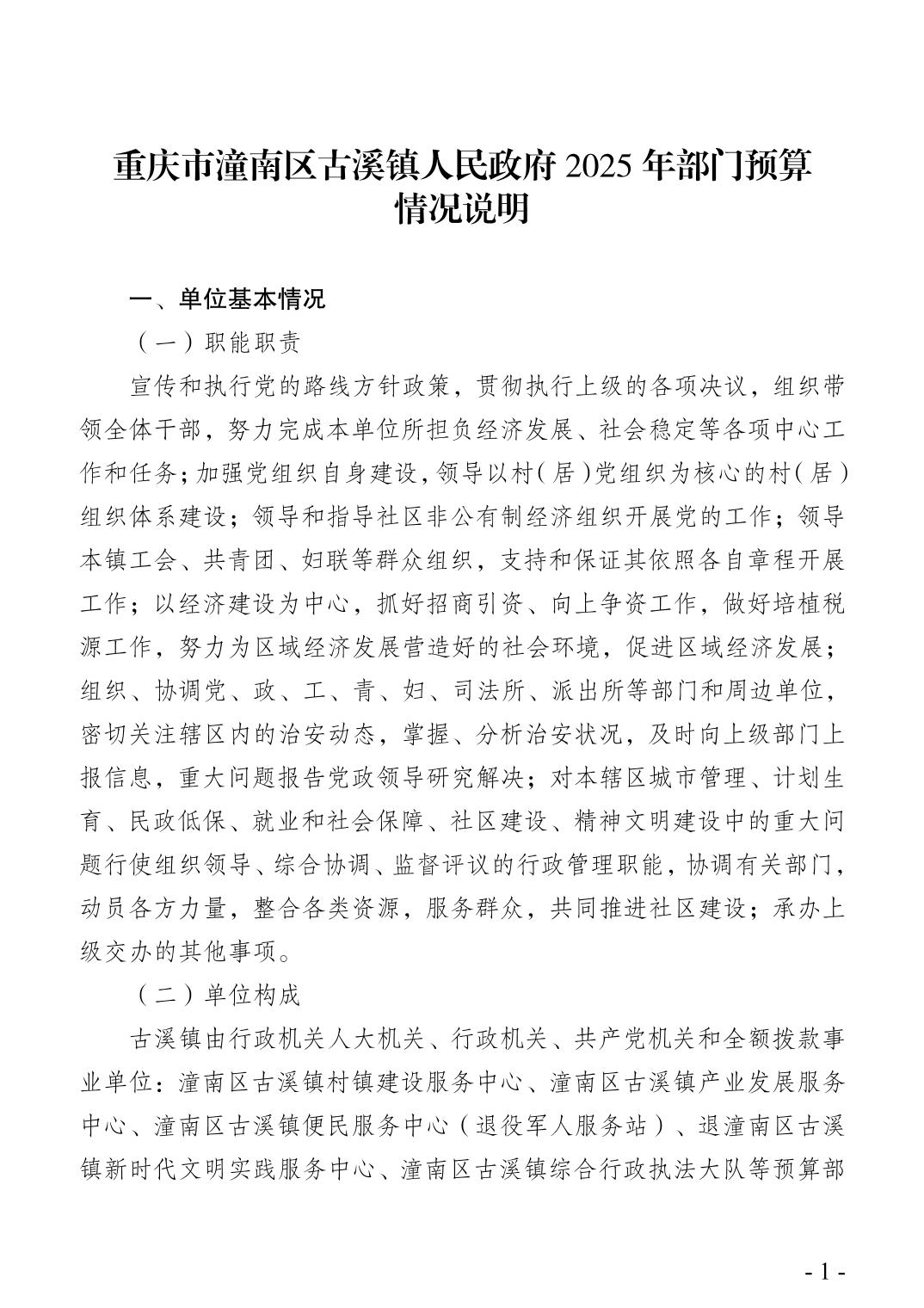 重庆市潼南区古溪镇人民政府2025年部门预算情况说明