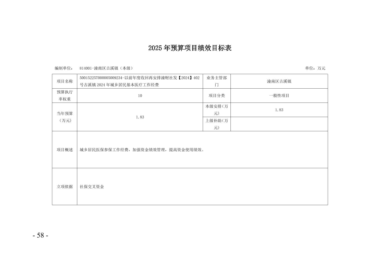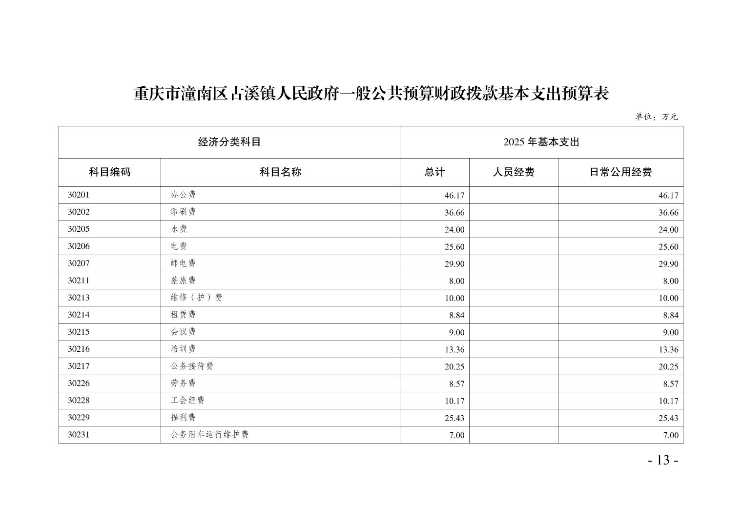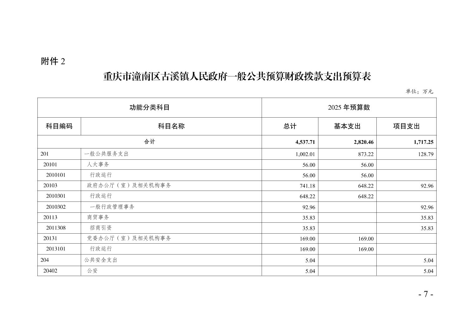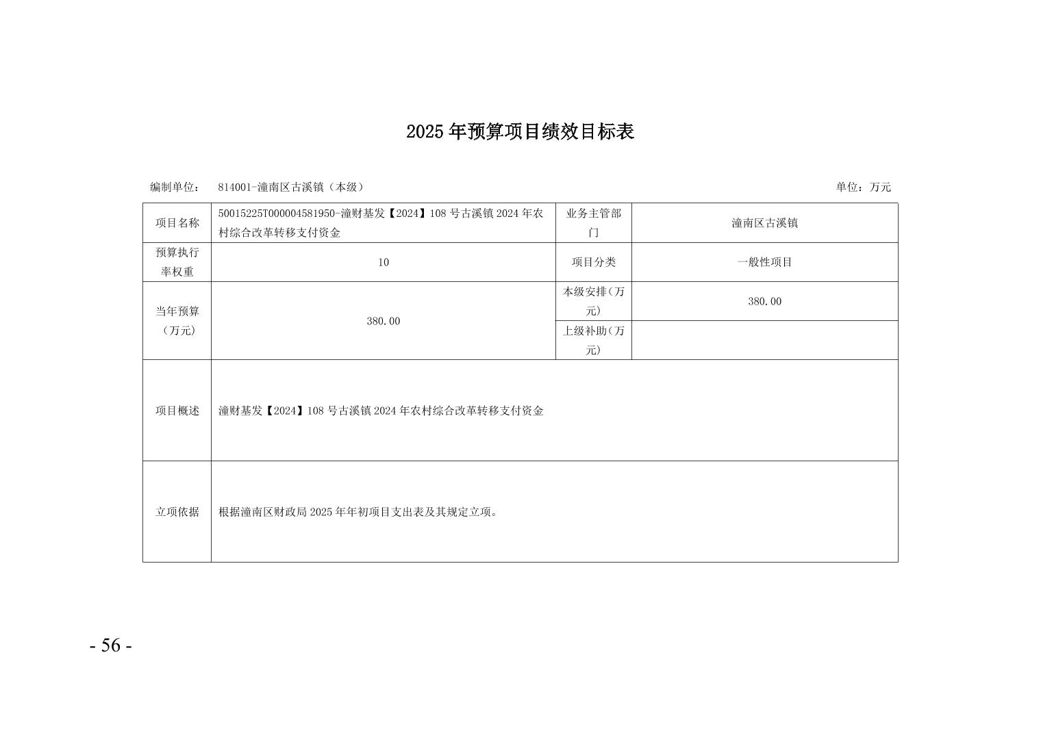 重庆市潼南区古溪镇人民政府2025年部门预算情况说明