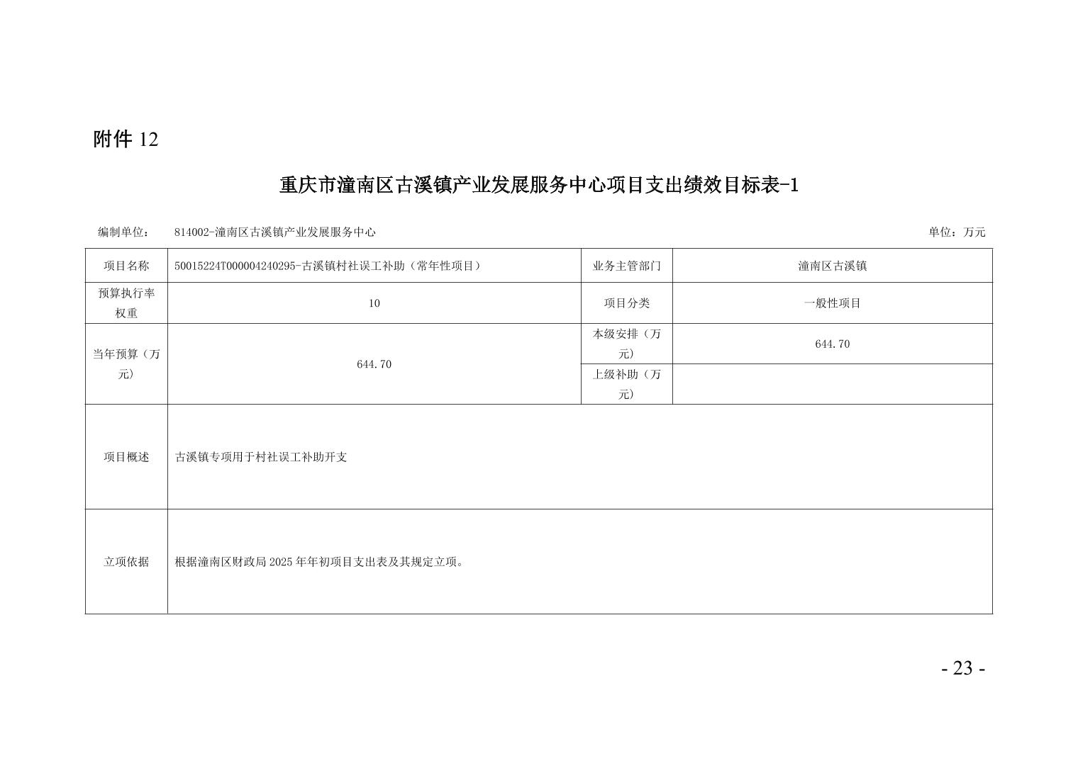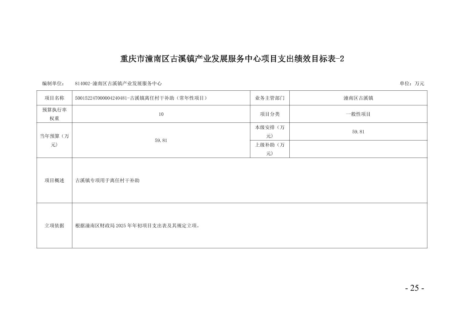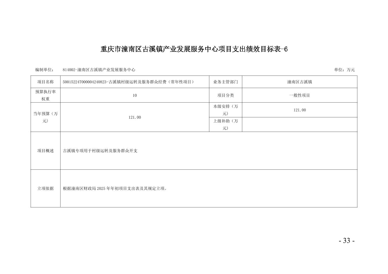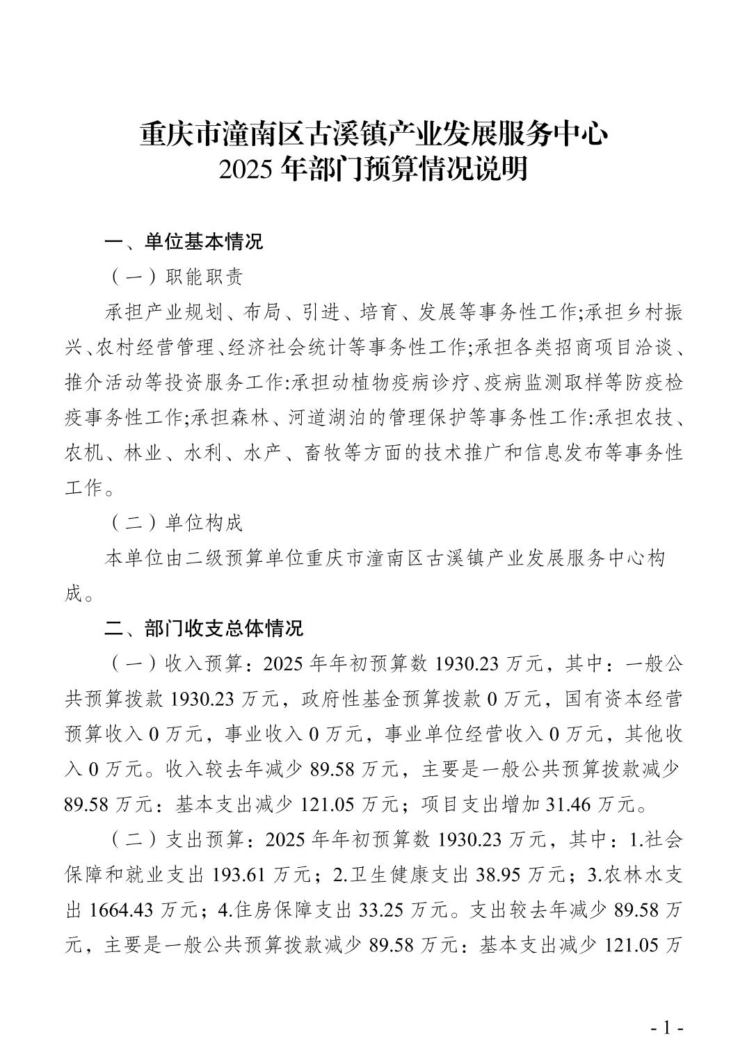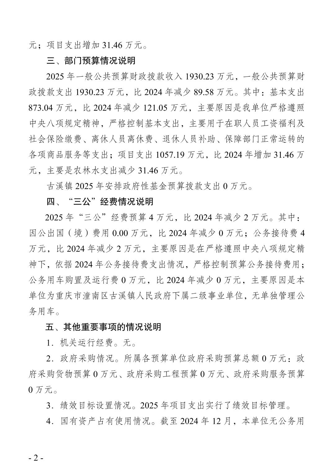 重庆市潼南区古溪镇产业发展服务中心2025年部门预算情况说明