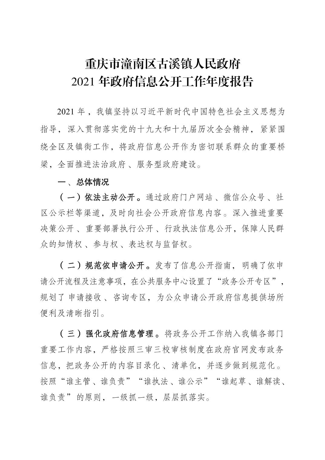 重庆市潼南区古溪镇2021年政府信息公开工作年度报告