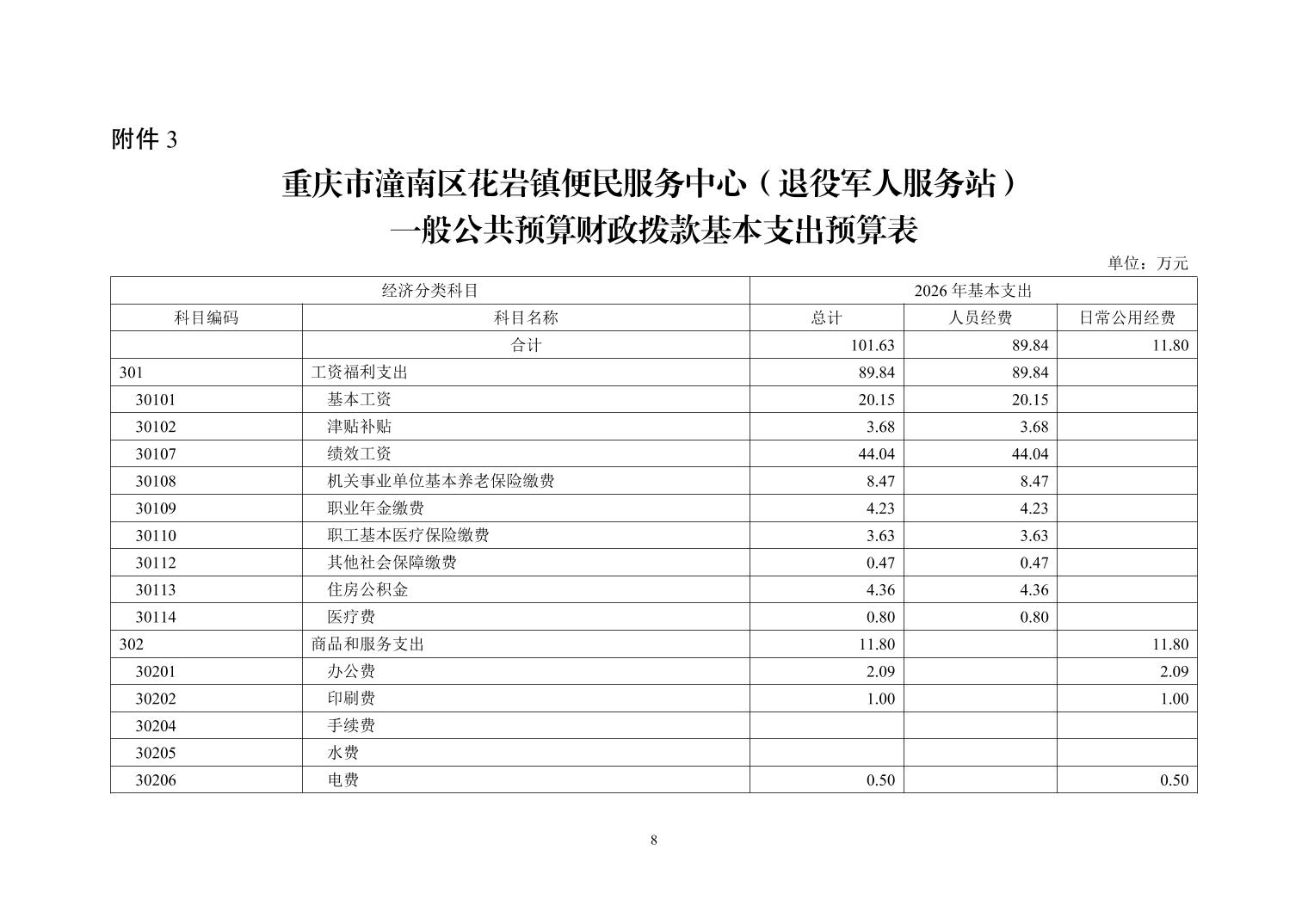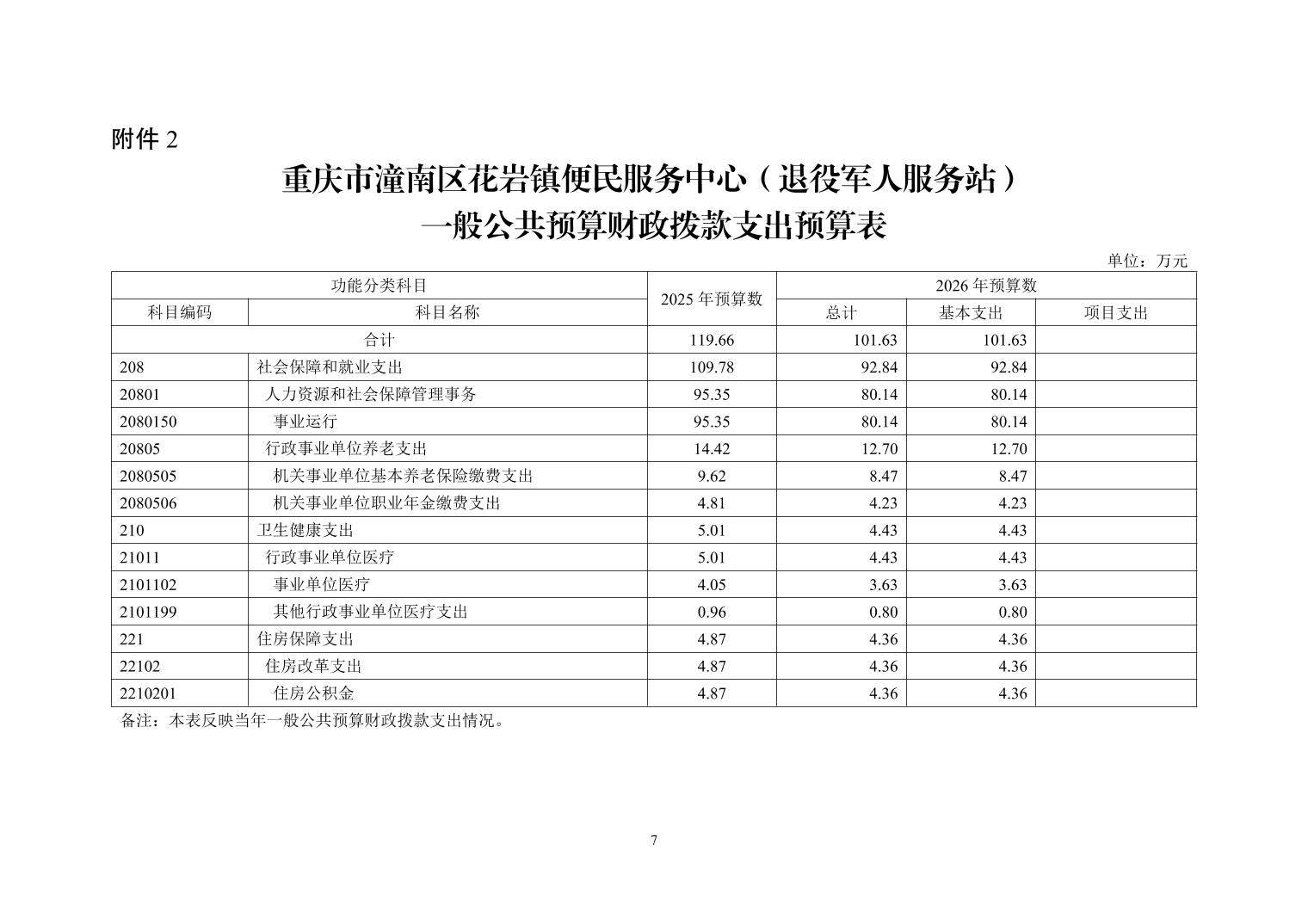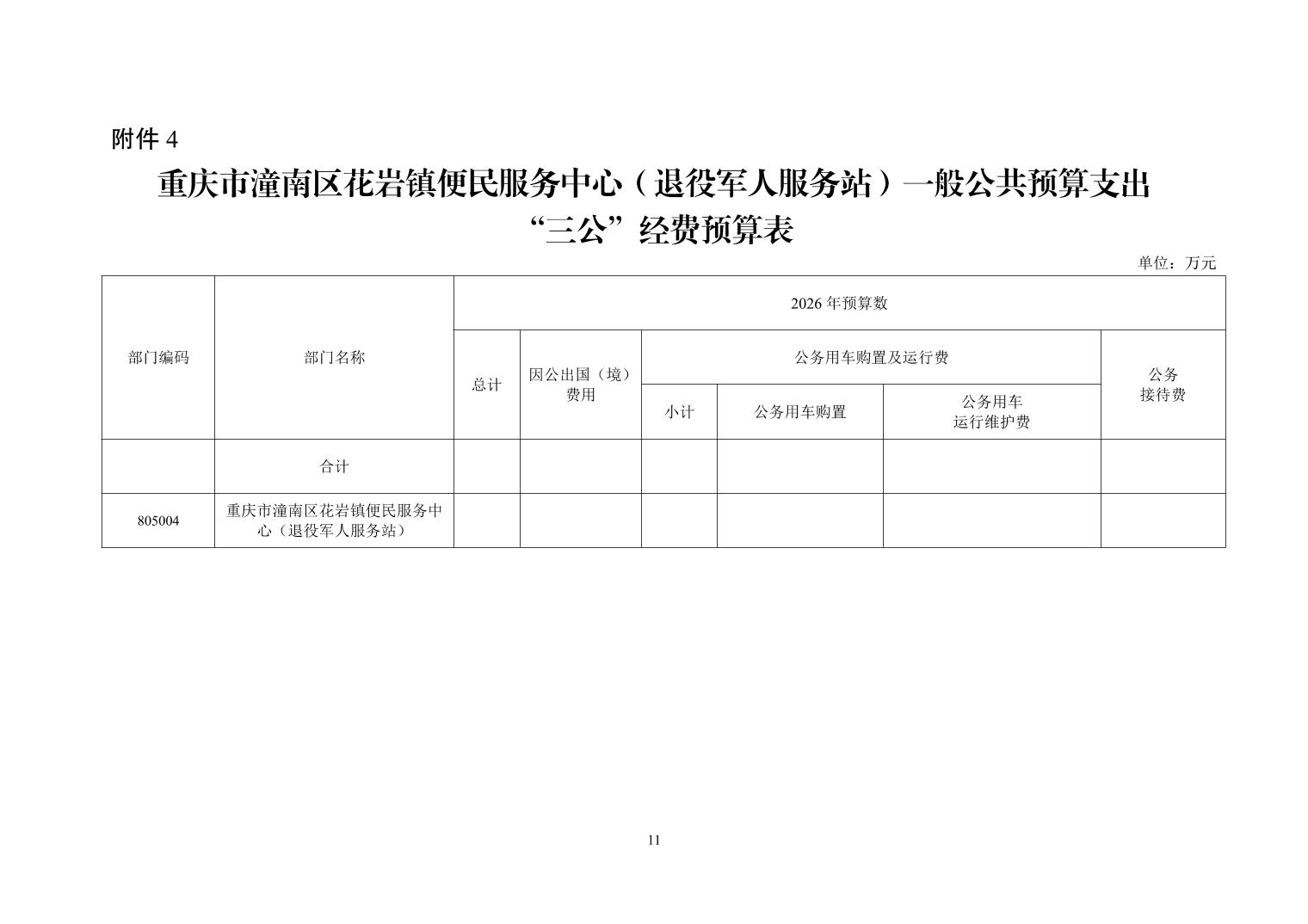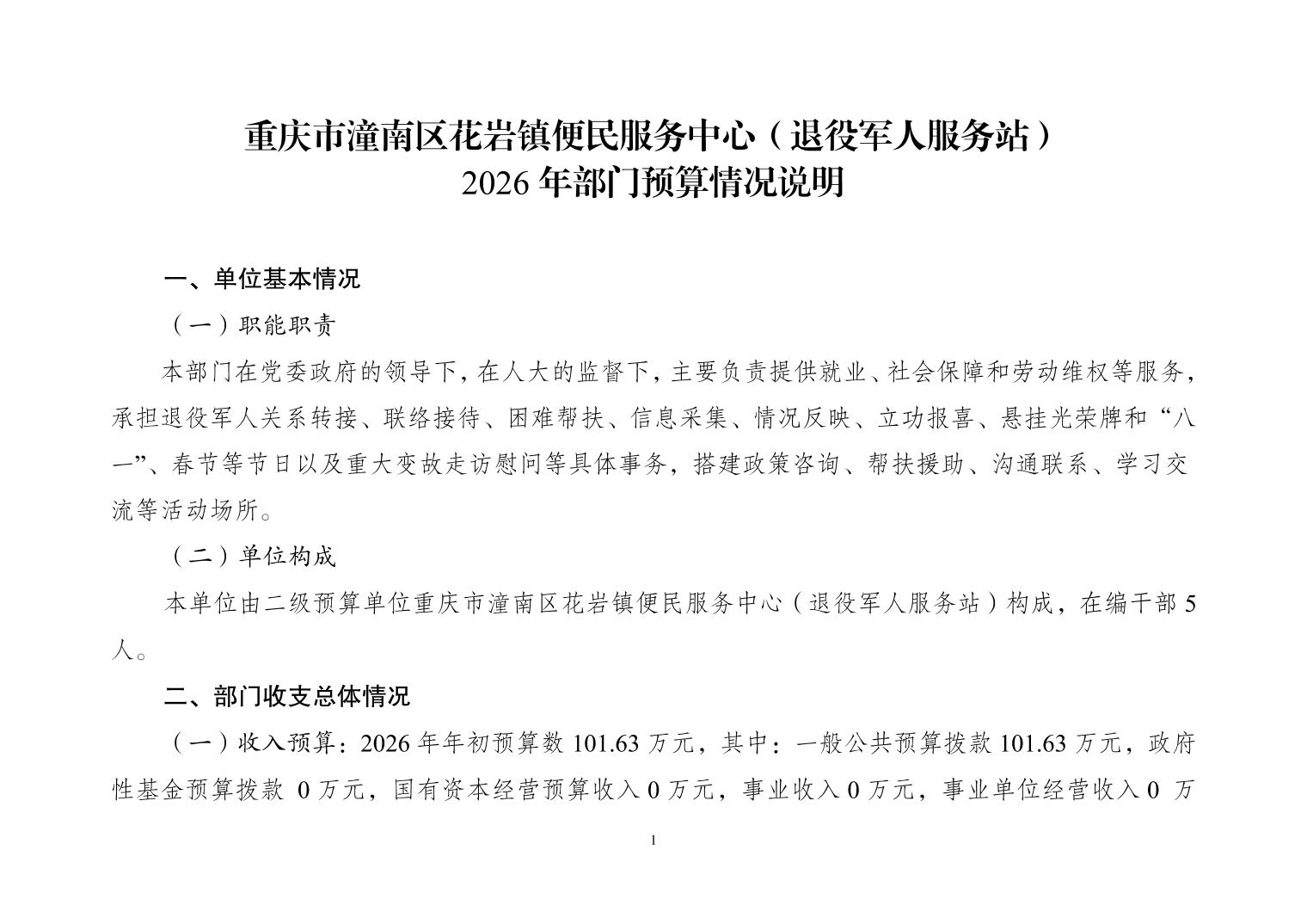 重庆市潼南区花岩镇便民服务中心(退役军人服务站)2026年部门预算情况说明