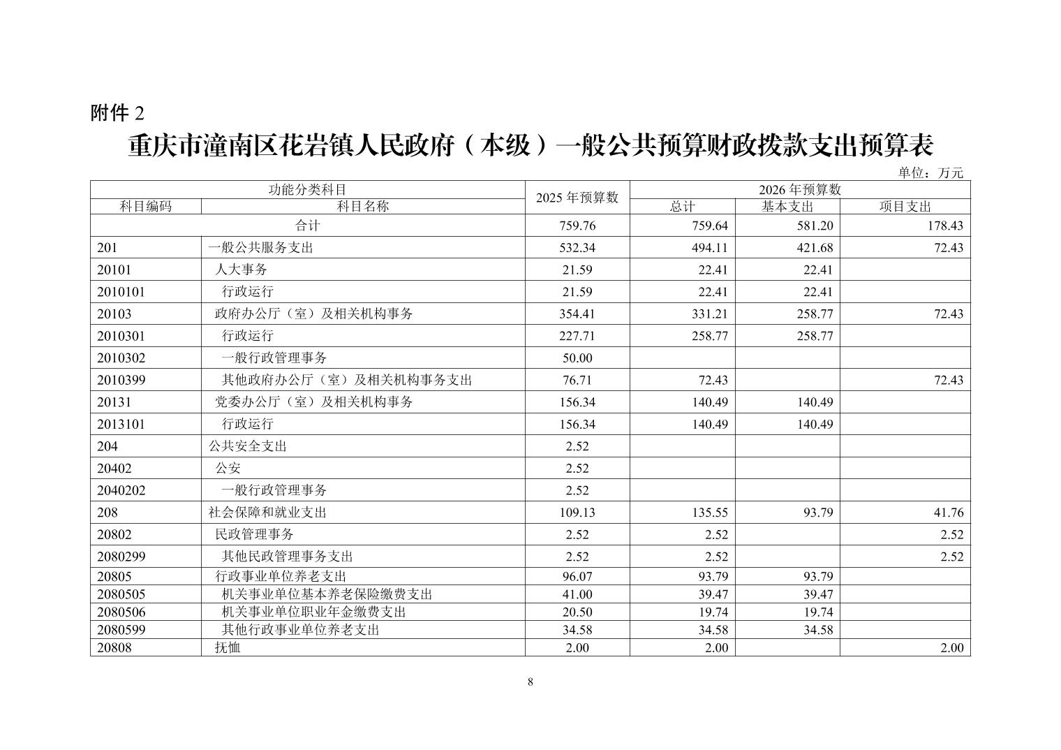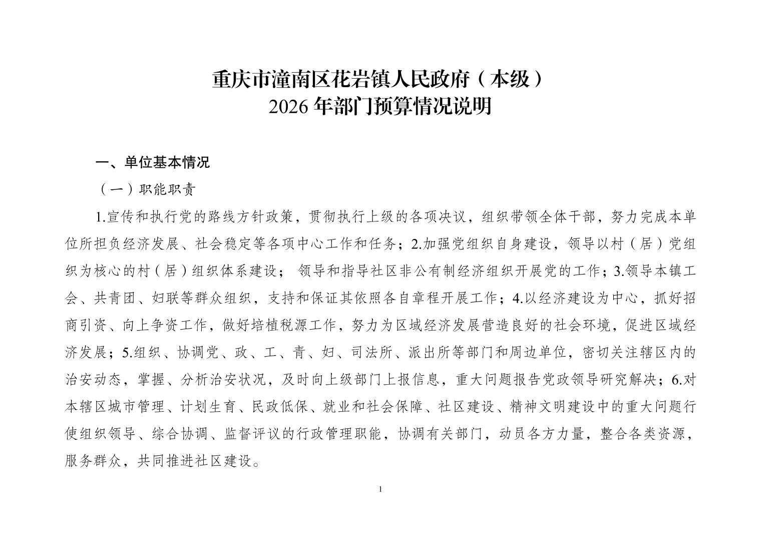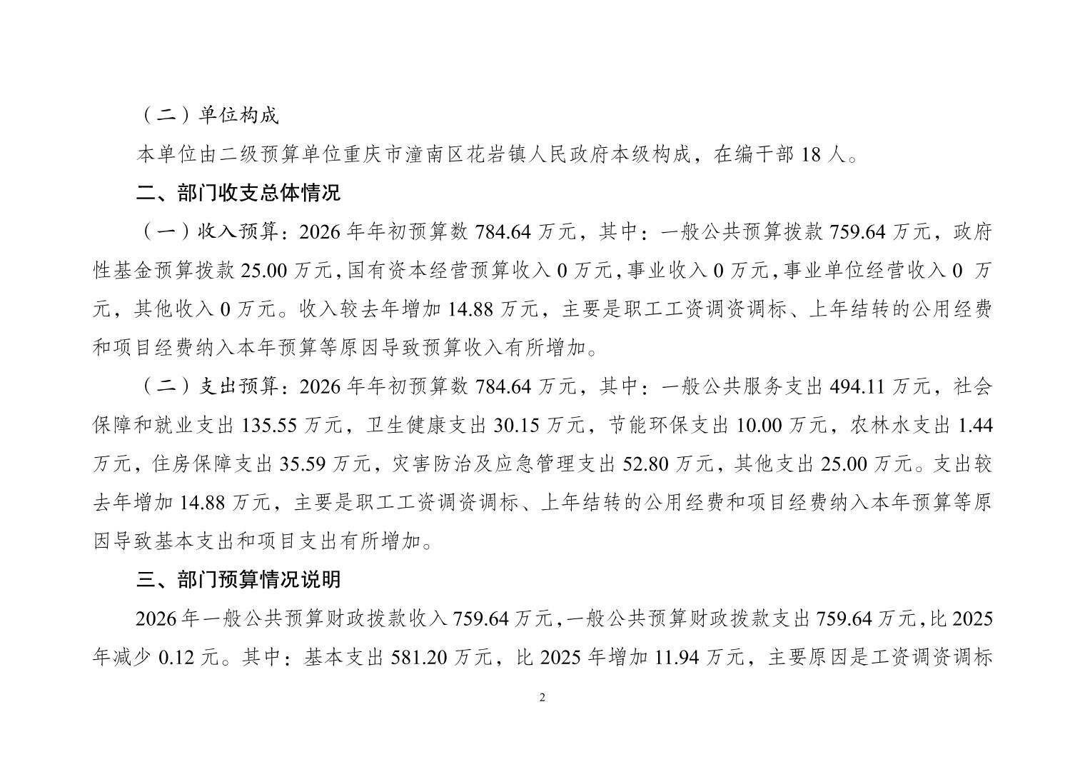 重庆市潼南区花岩镇人民政府(本级)2026年部门预算情况说明
