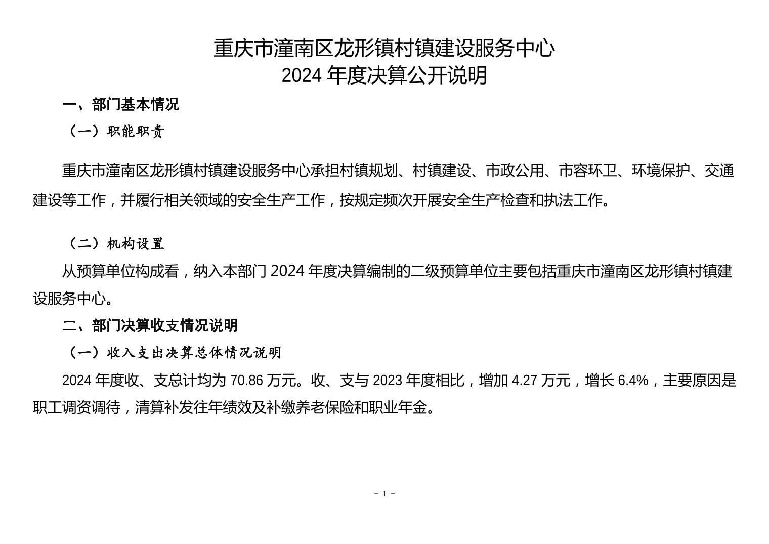 重庆市潼南区龙形村镇建设服务中心2024年度部门决算公开