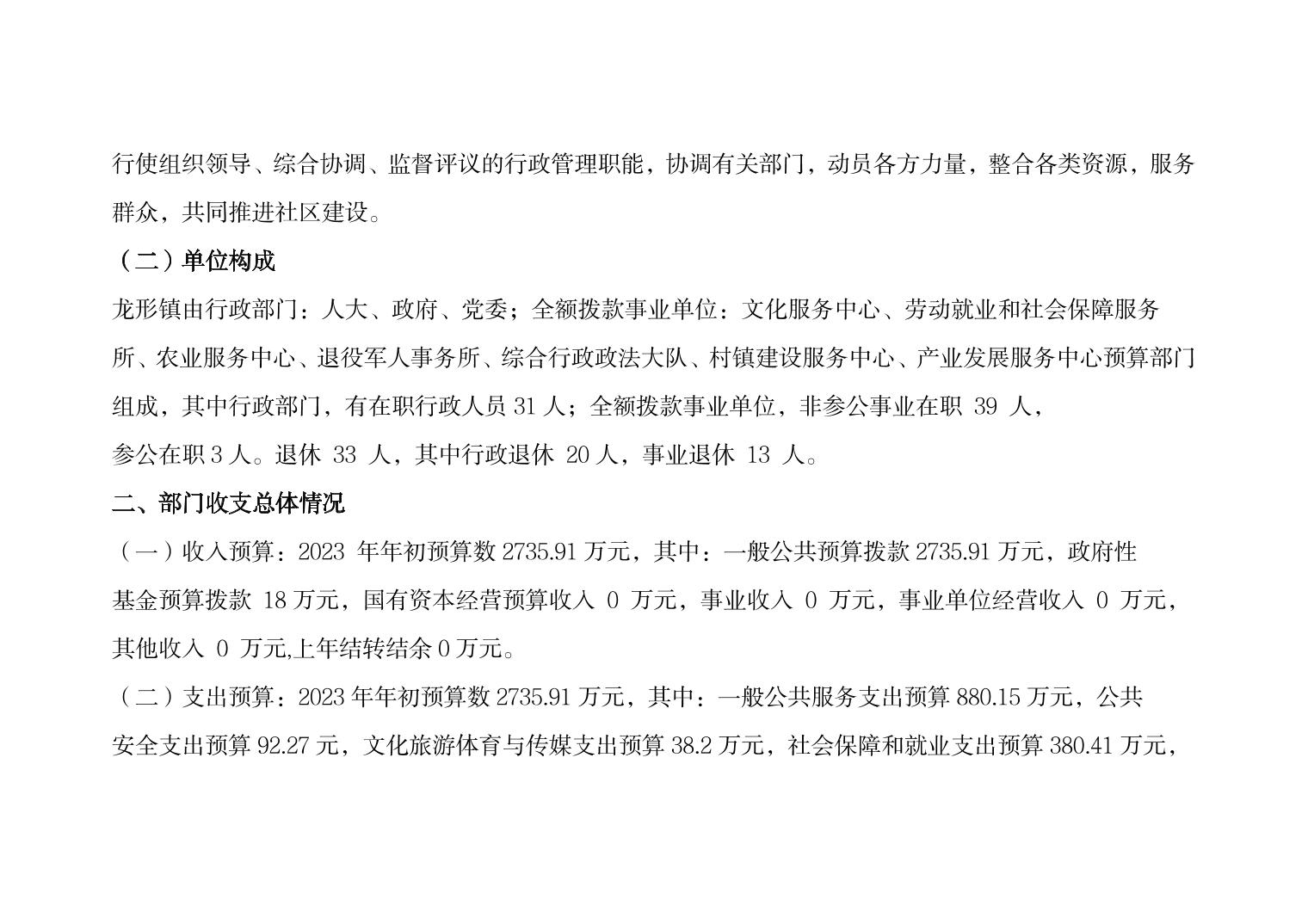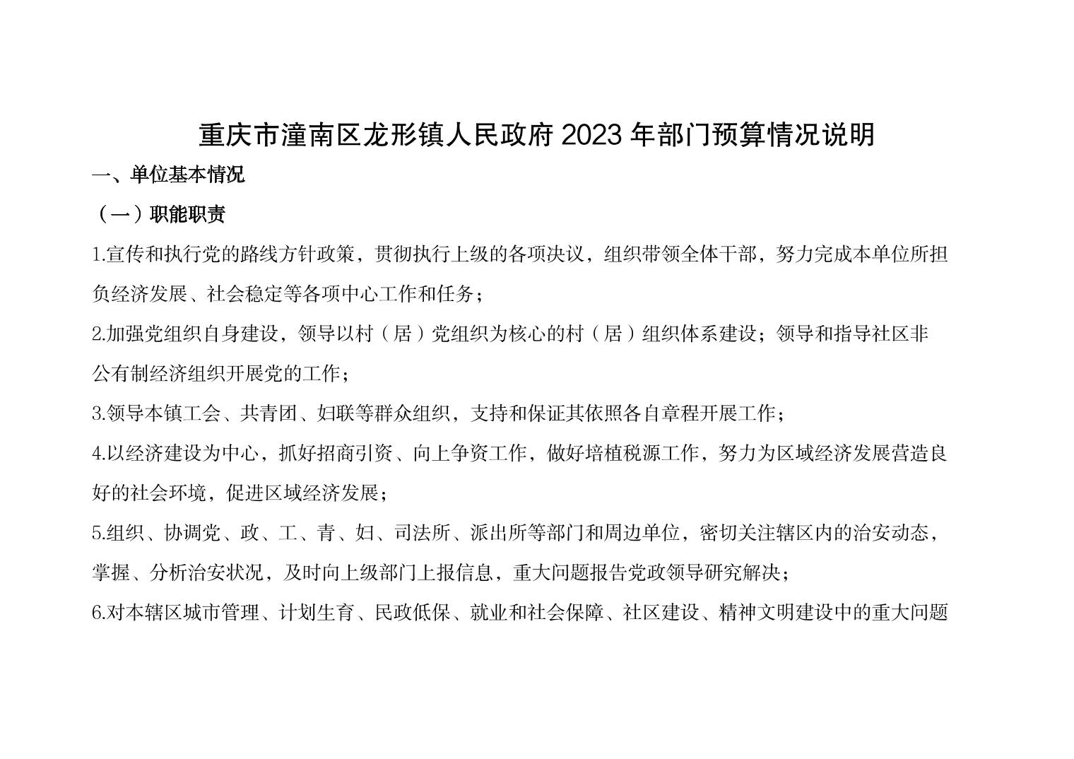 重庆市潼南区龙形镇人民政府2023年部门预算情况说明