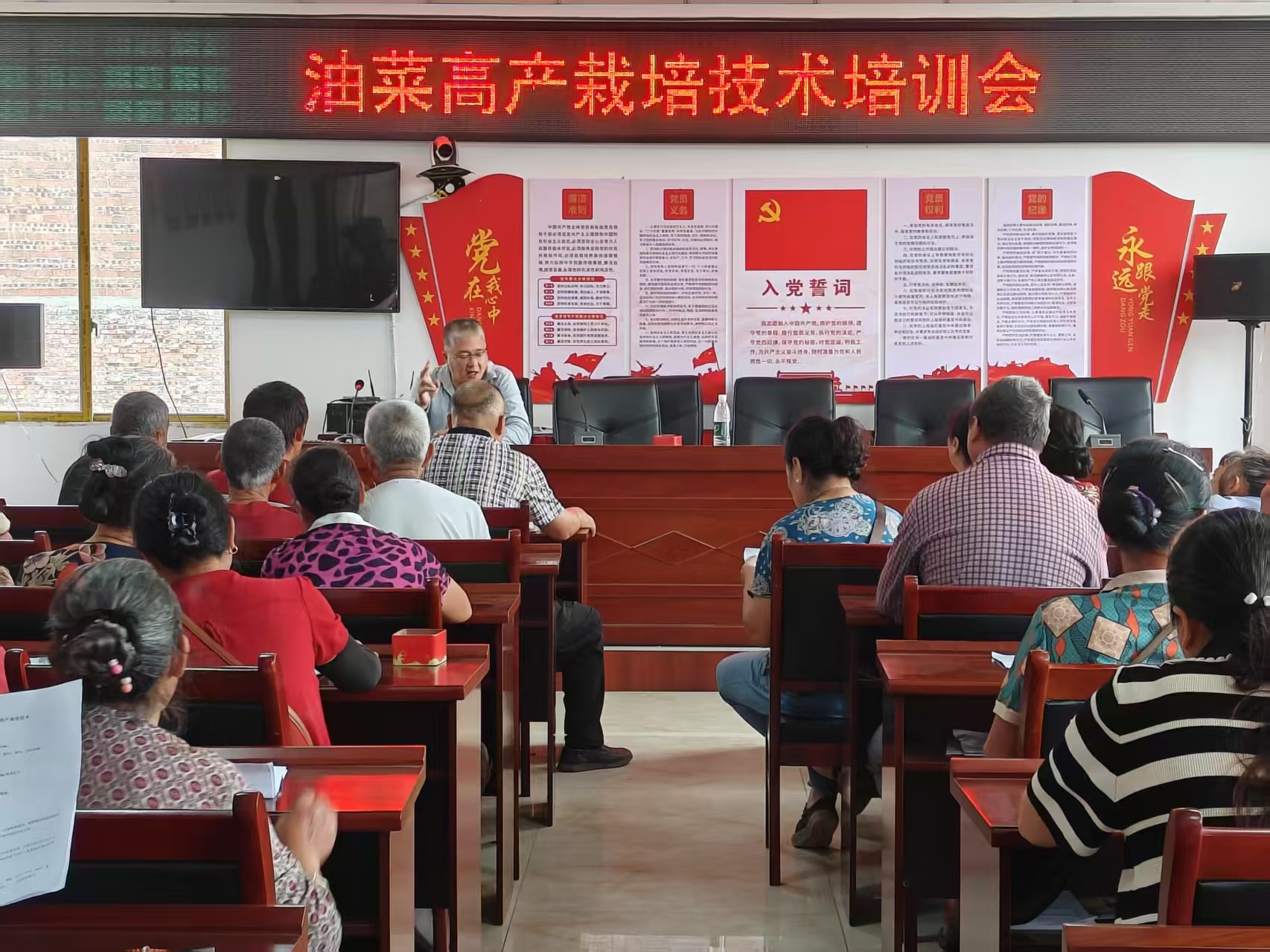 近日,龙形镇丁坝村的油菜制种基地迎来了一场专业培训。“兴乡专家团”成员、重庆市农业科学院油料所正高级农艺师刘希忠面对120余名农户,深入浅出地讲解了制种油菜高产高效栽培关键技术。“苗好一半收”,刘希忠在培训中强调育苗环节的重要性。龙形镇作为“全国农业产业强镇”,目前已开展油菜制种6400亩,全面进入管护阶段。此次培训聚焦“育苗准备、移栽技术、田间管理、适时收获”四个核心内容,为农户们提供了一场内容详实、操作性强的技术指导。