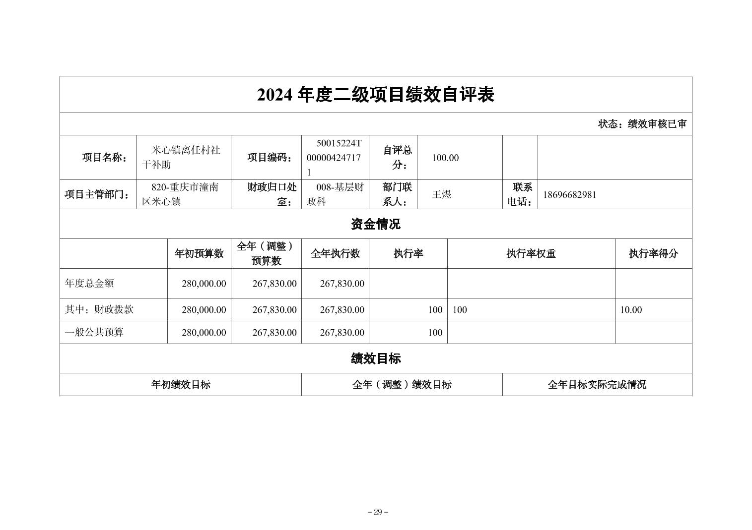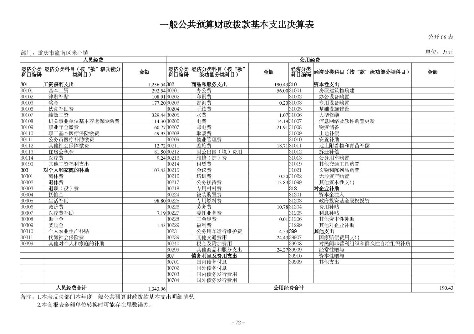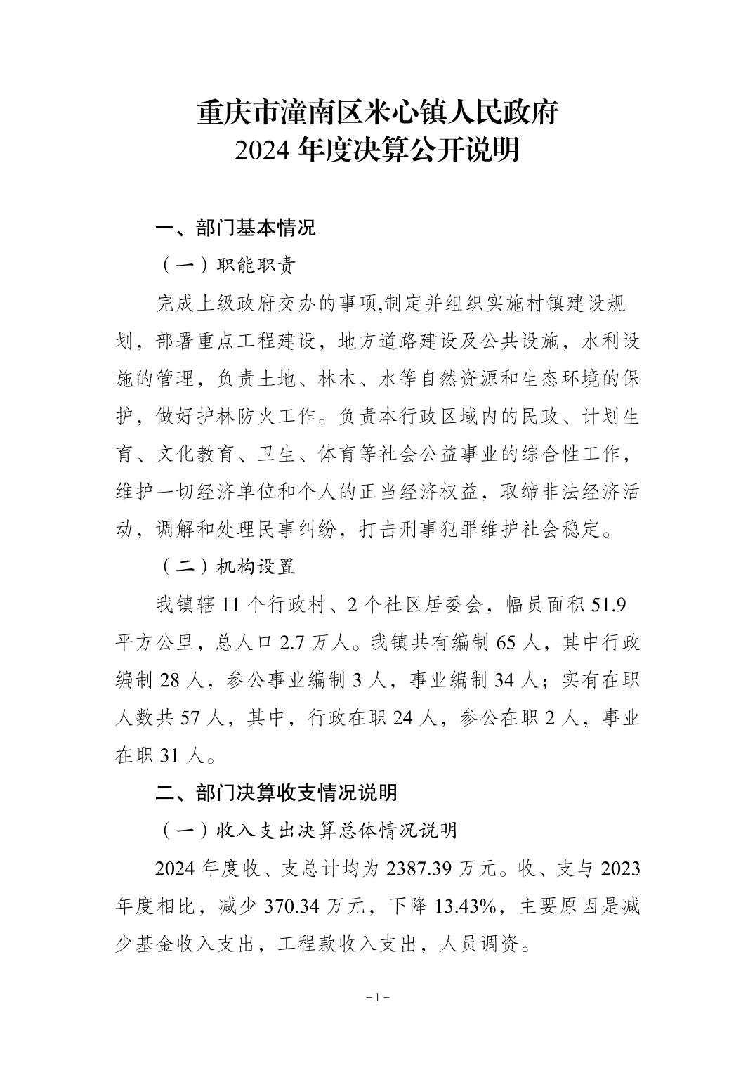 重庆市潼南区米心镇人民政府 2024 年度决算公开说明