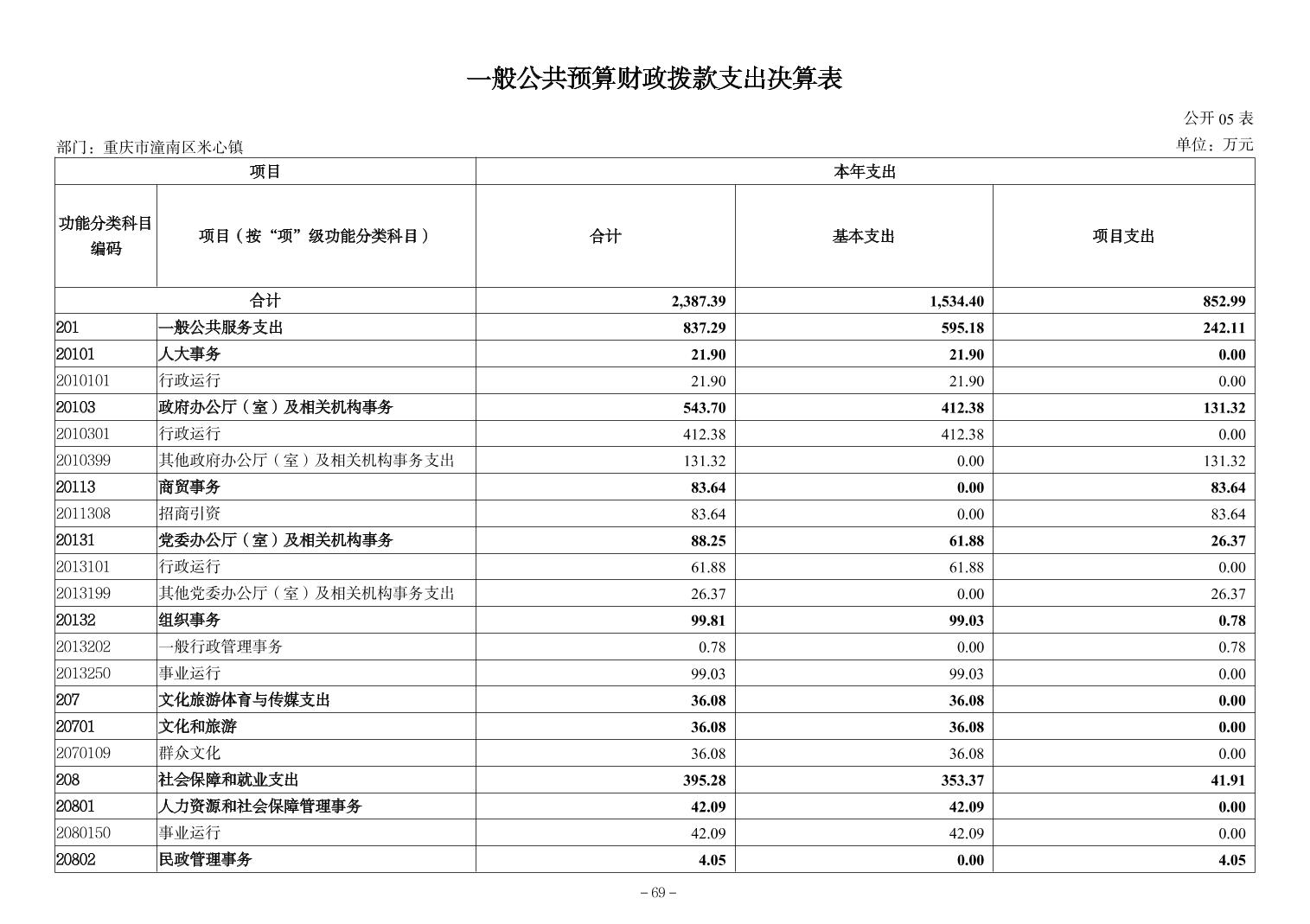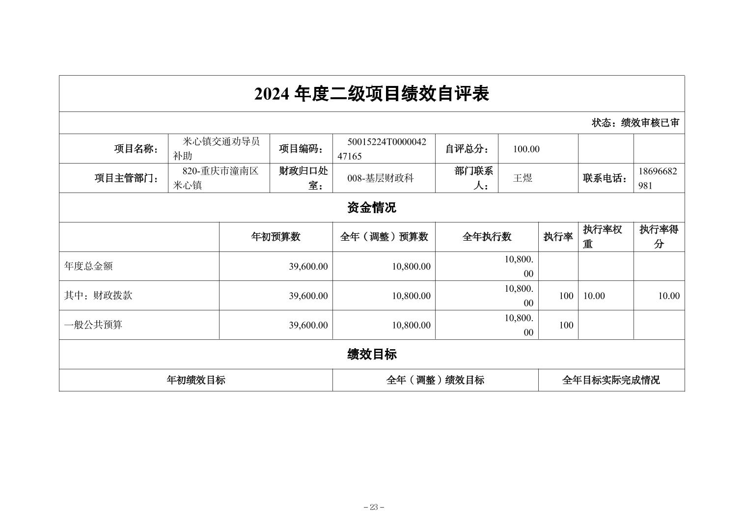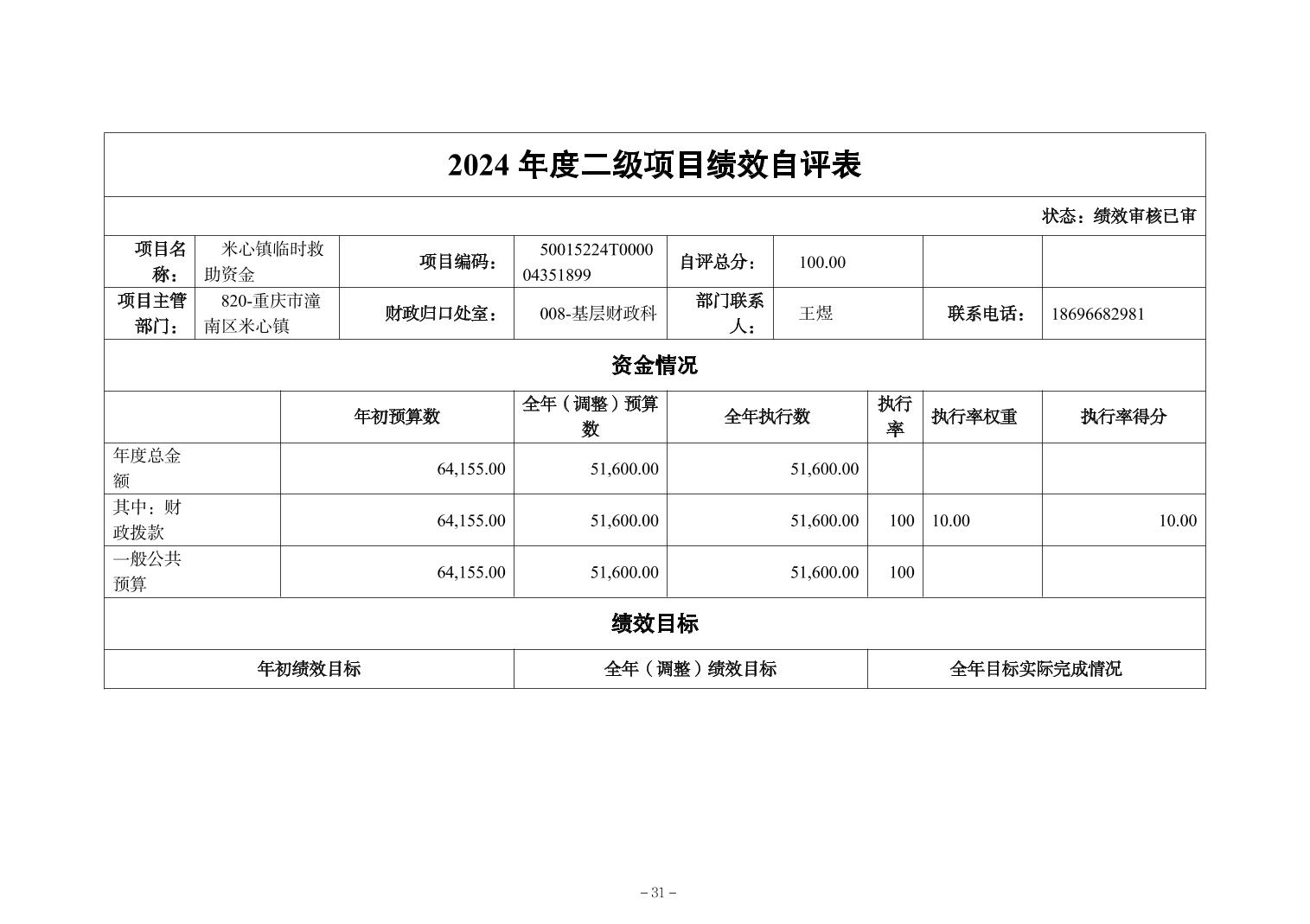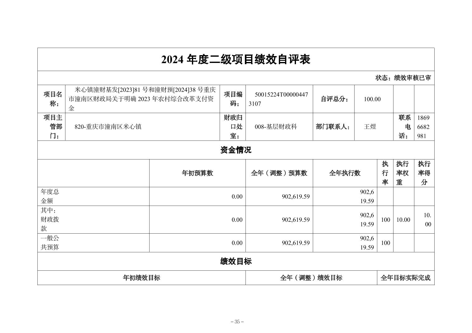 重庆市潼南区米心镇人民政府 2024 年度决算公开说明