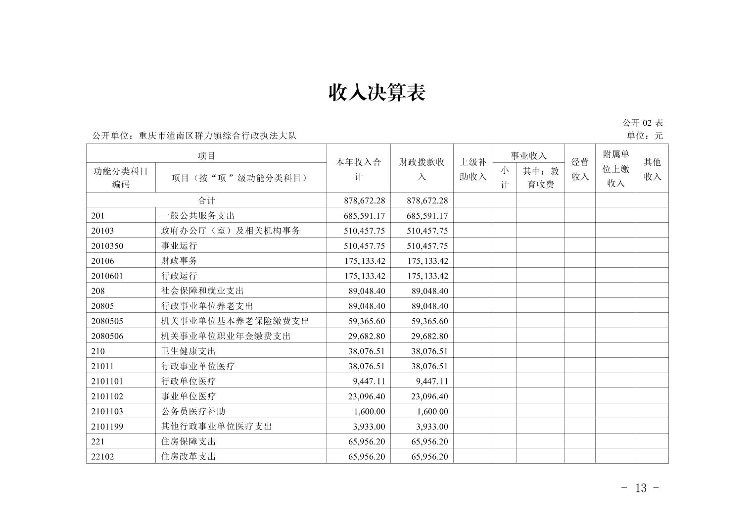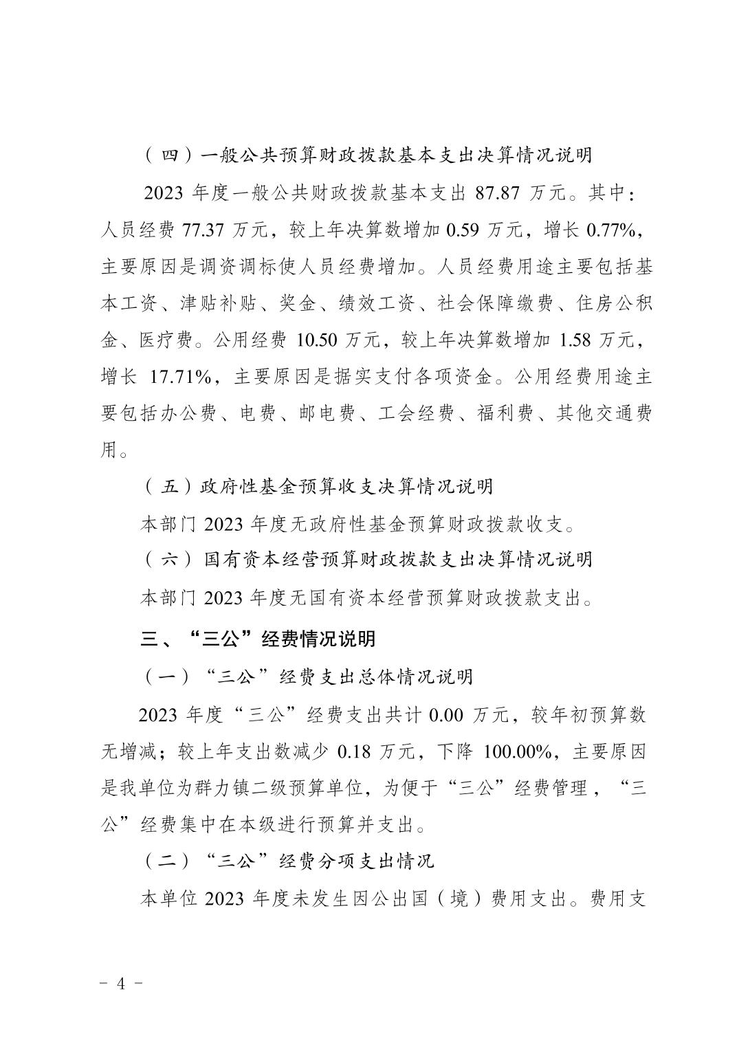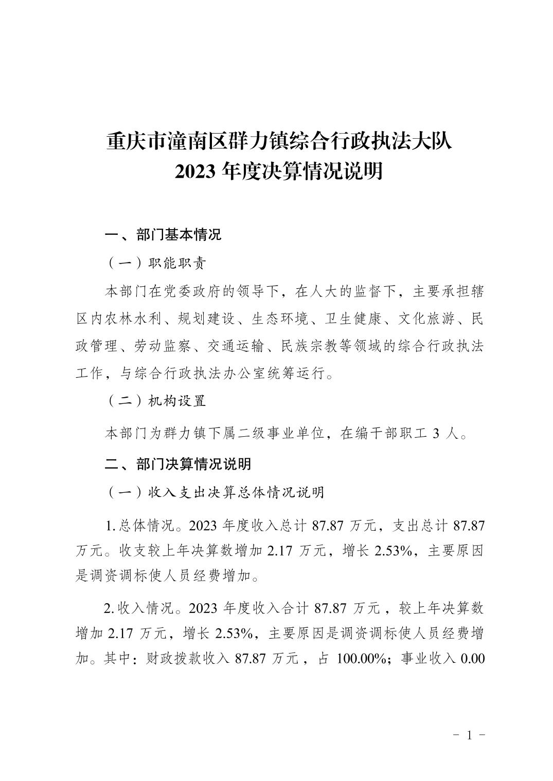 重庆市潼南区群力镇综合行政执法大队 2023 年度决算情况说明