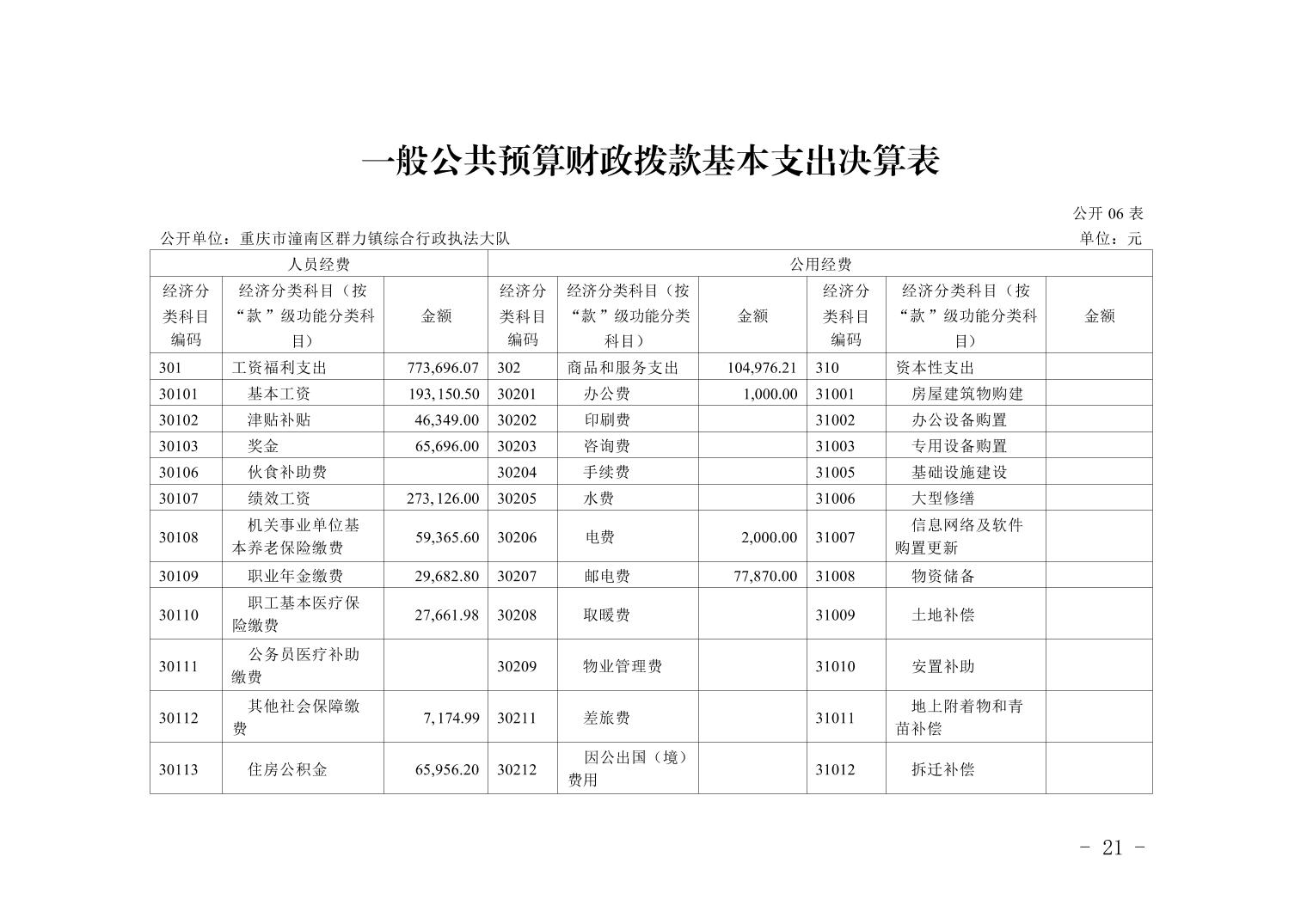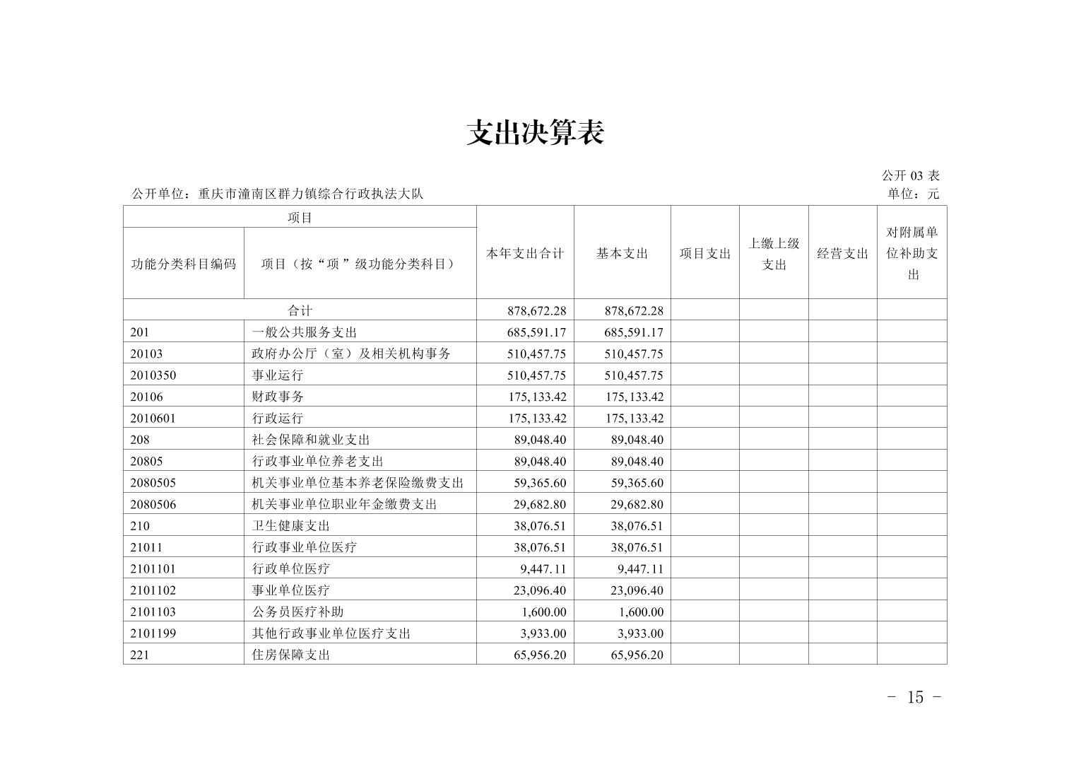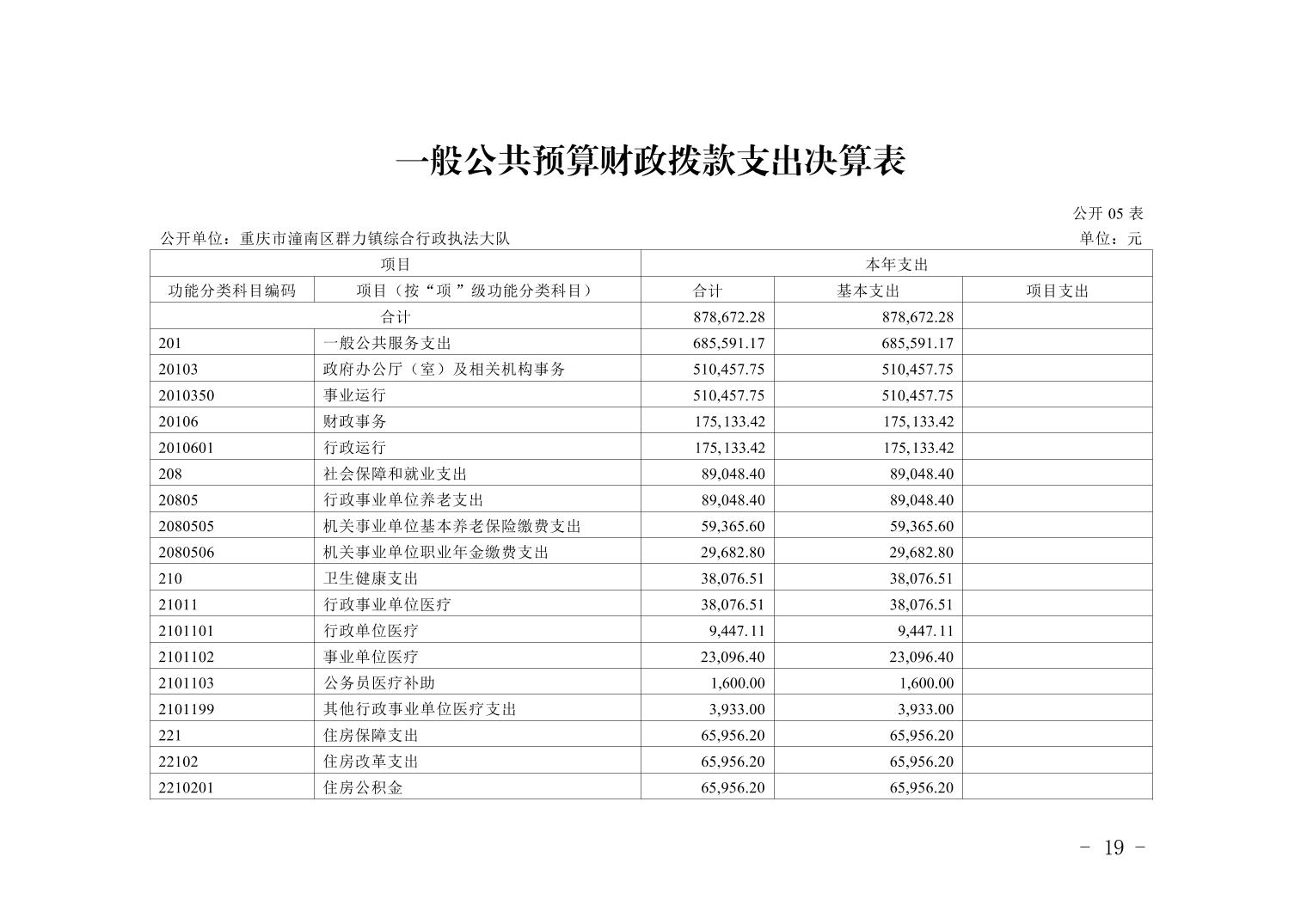 重庆市潼南区群力镇综合行政执法大队 2023 年度决算情况说明