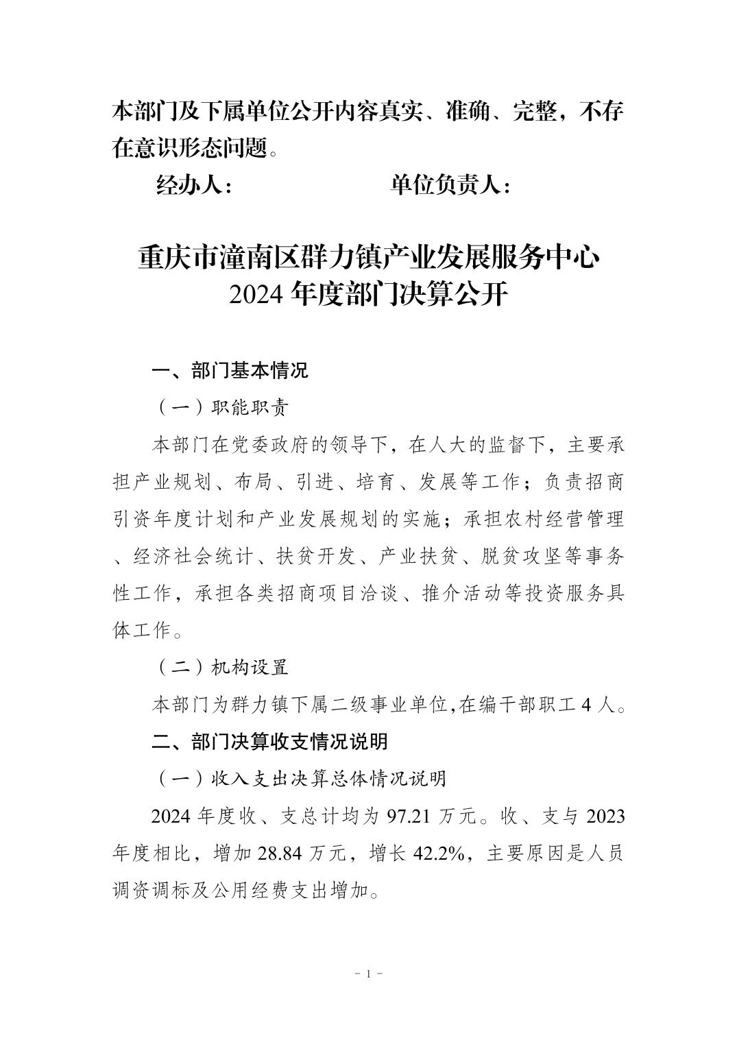 重庆市潼南区群力镇产业发展服务中心2024年度部门决算公开