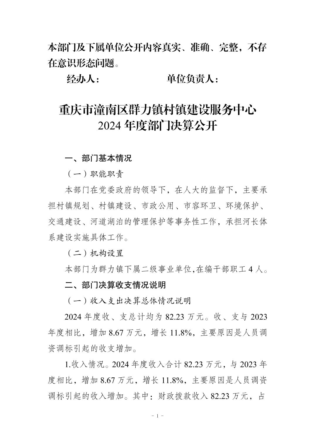 重庆市潼南区群力镇村镇建设服务中心2024年度部门决算公开