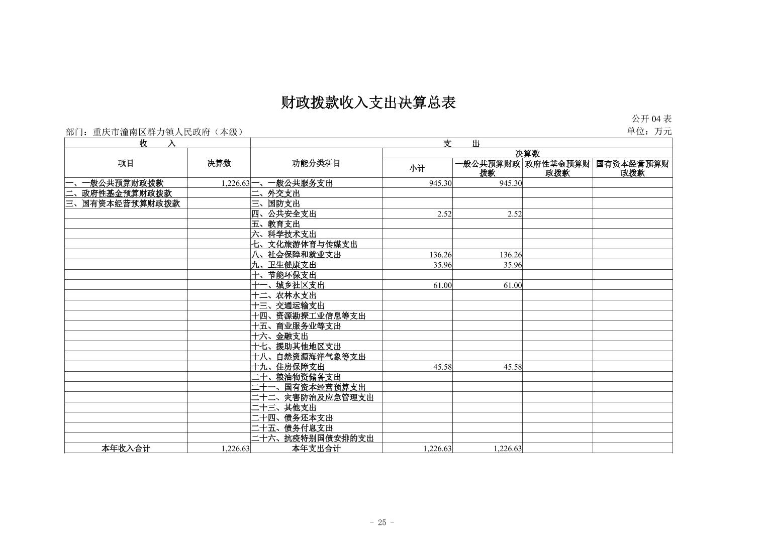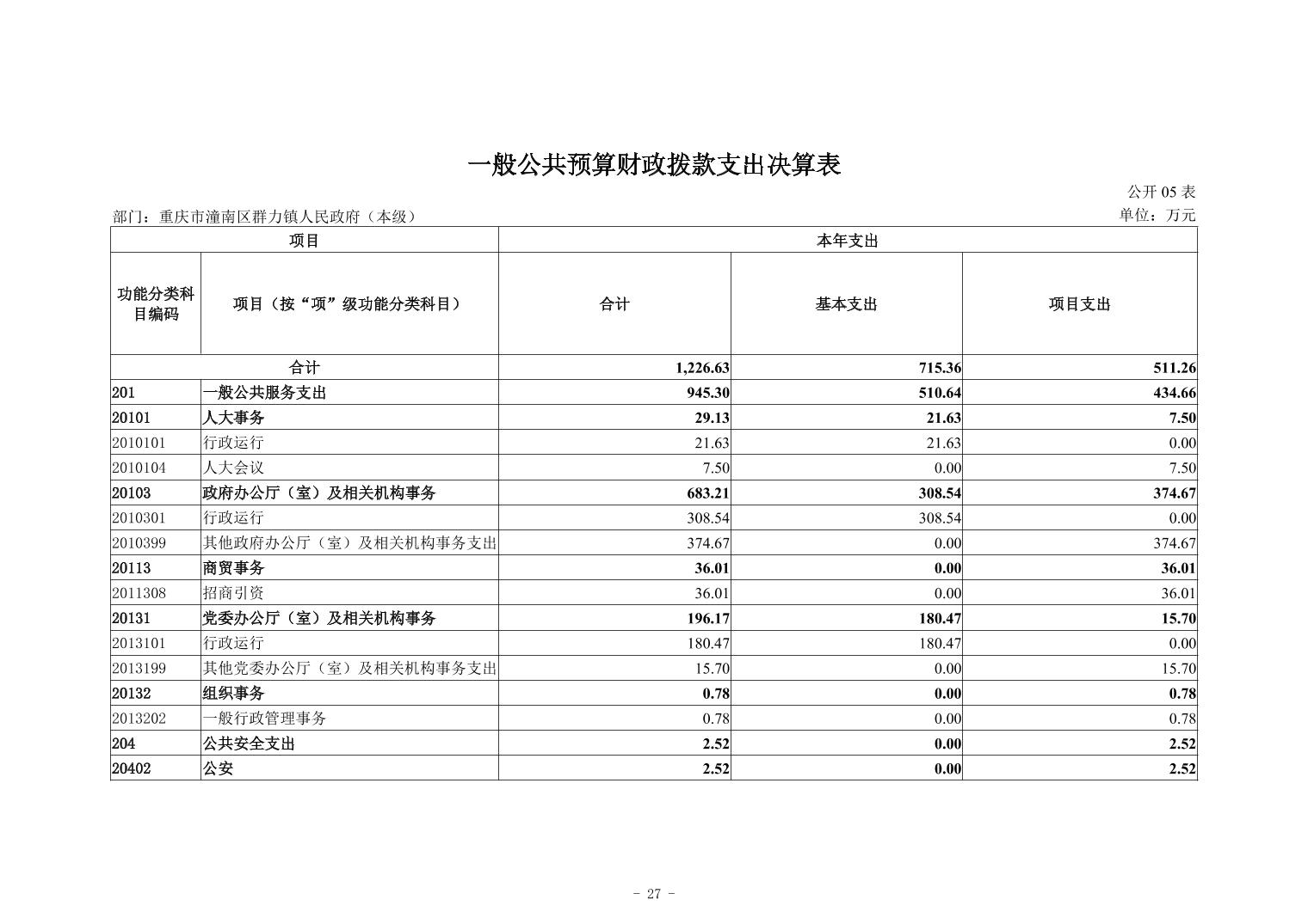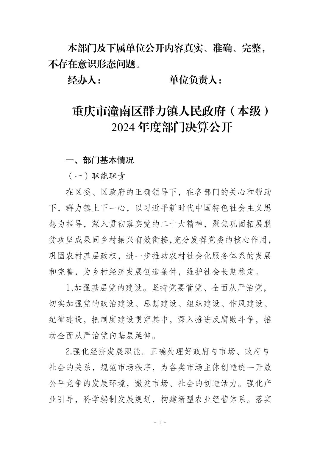 重庆市潼南区群力镇人民政府(本级)2024年度部门决算公开