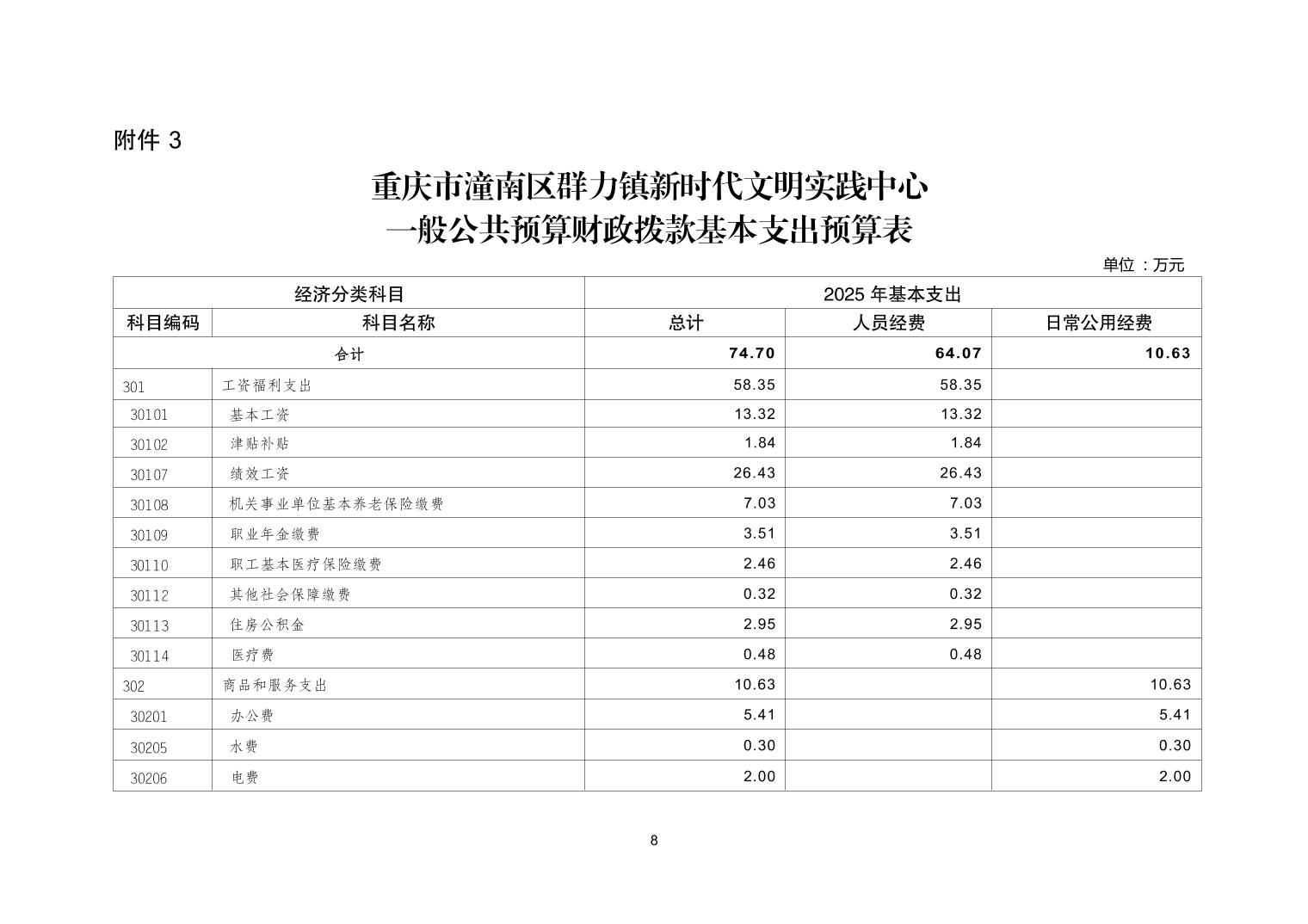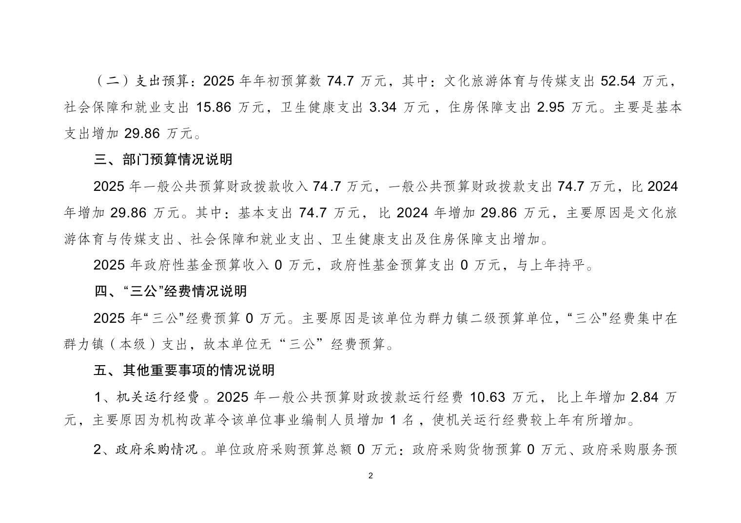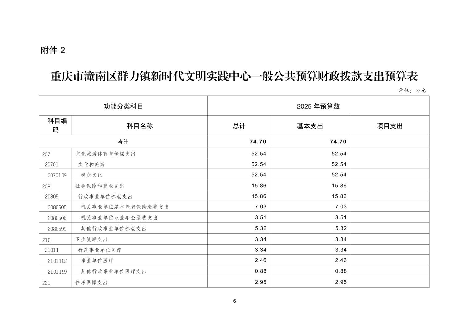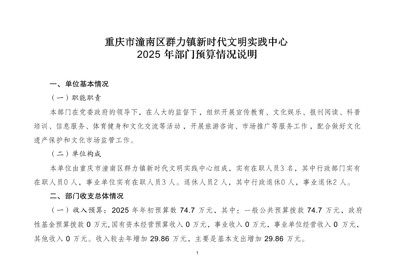 重庆市潼南区群力镇新时代文明实践中心2025年部门预算情况说明