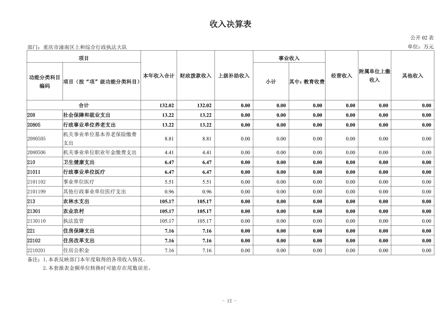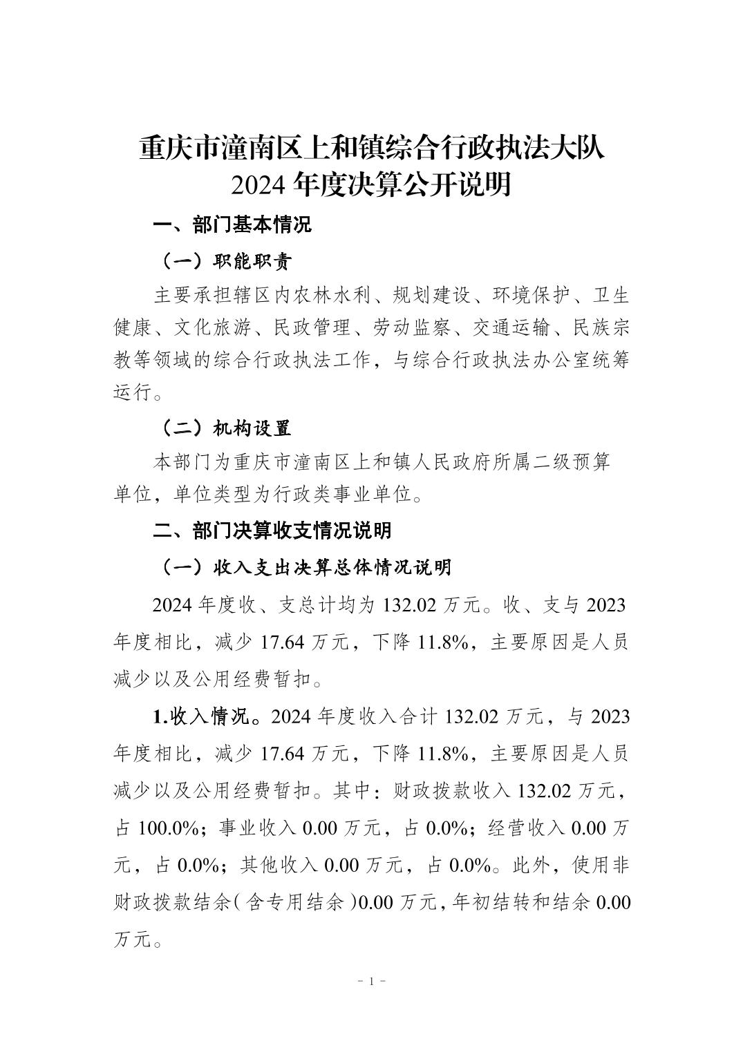 重庆市潼南区上和镇综合执法大队2024年度部门决算公开