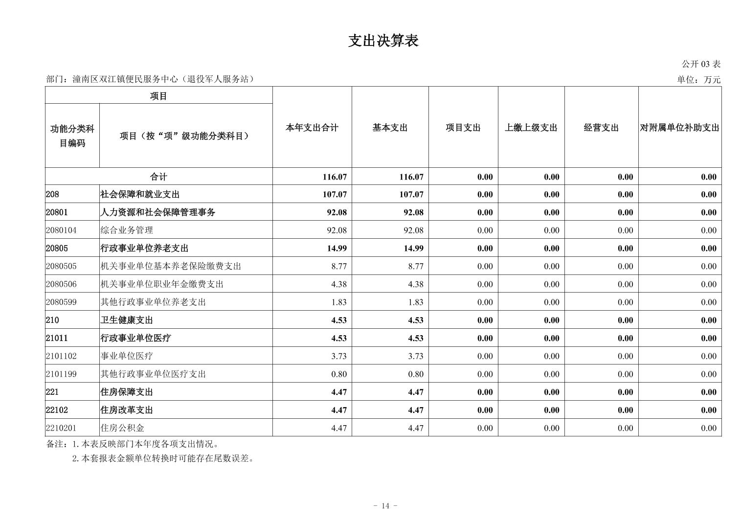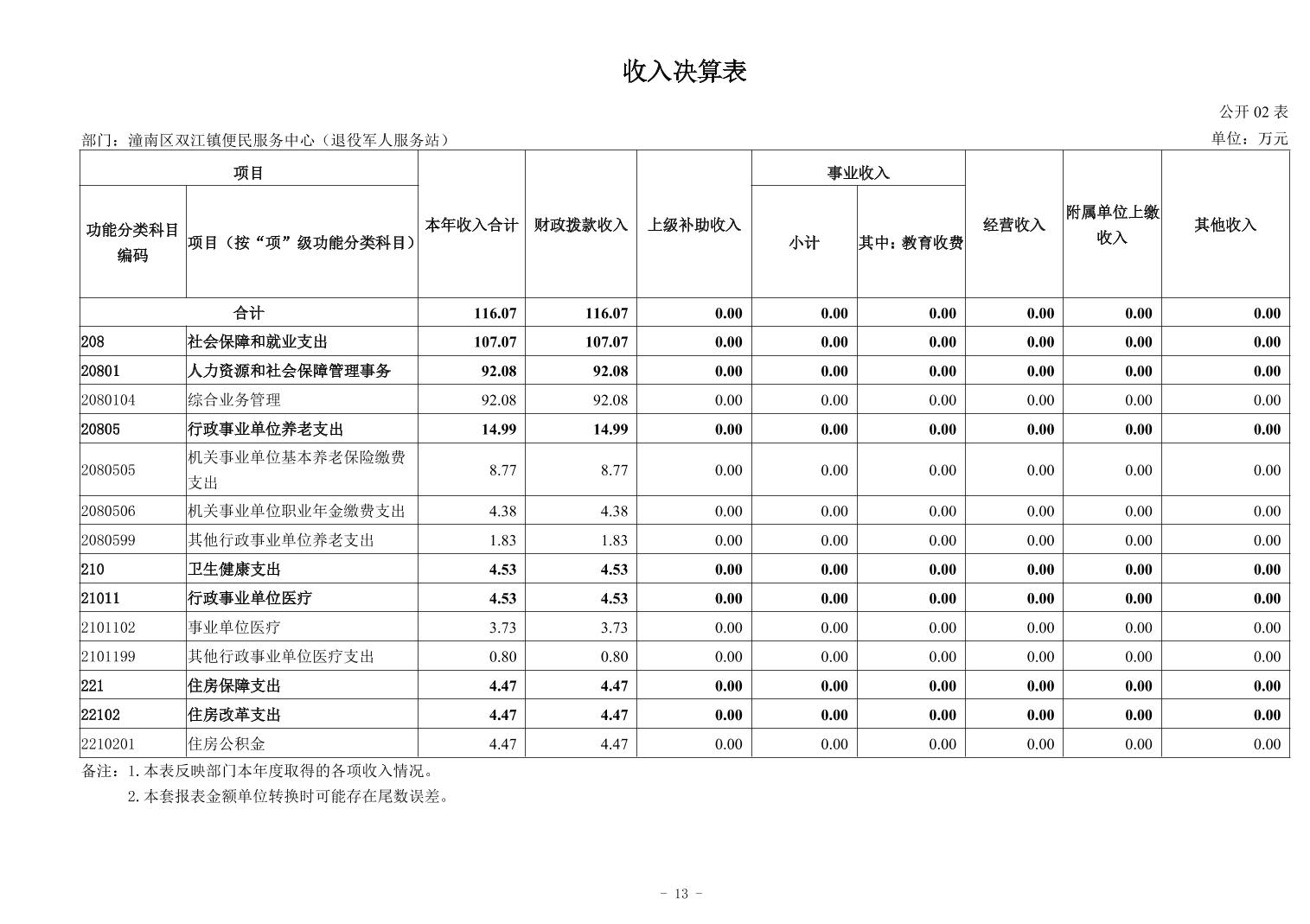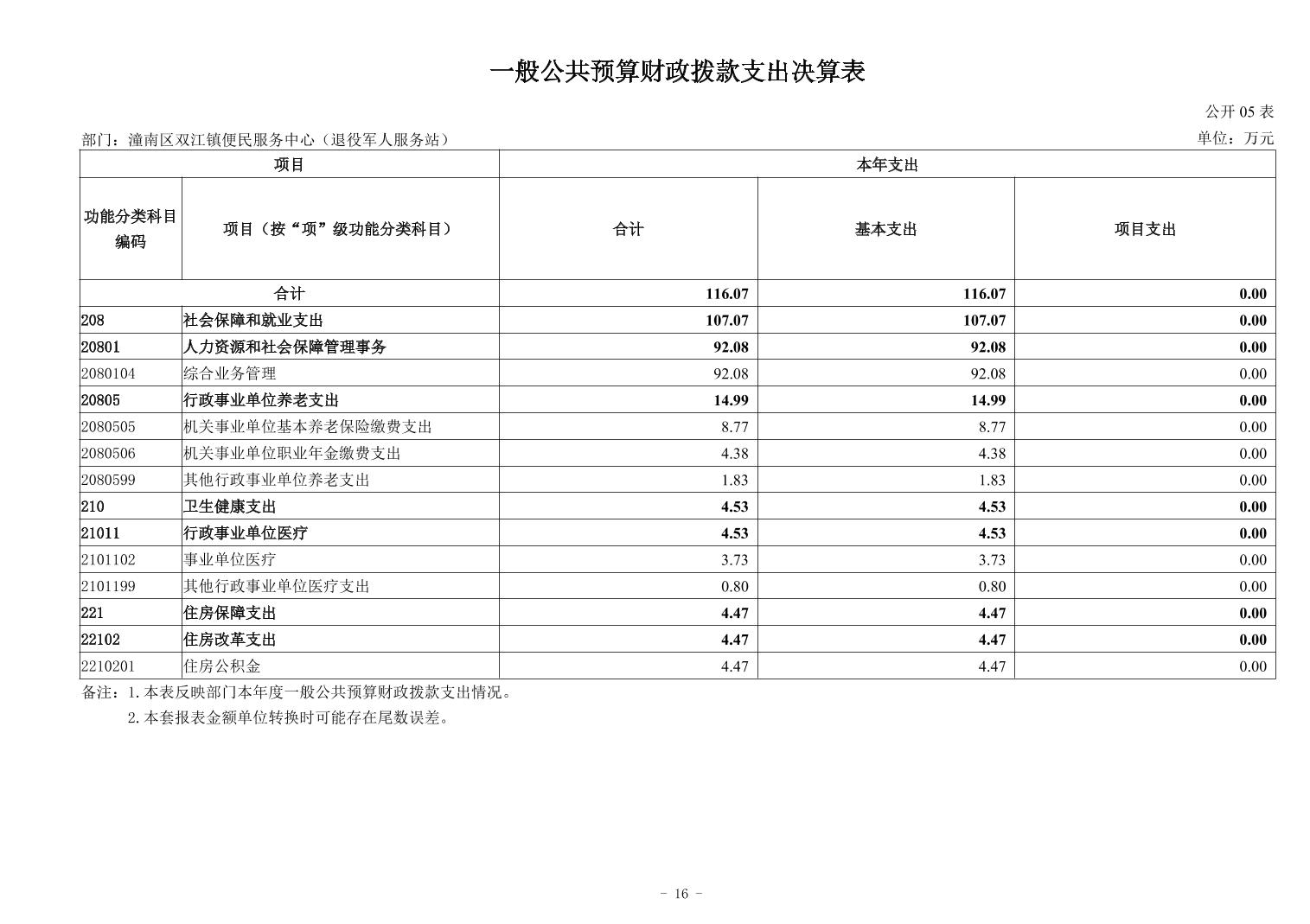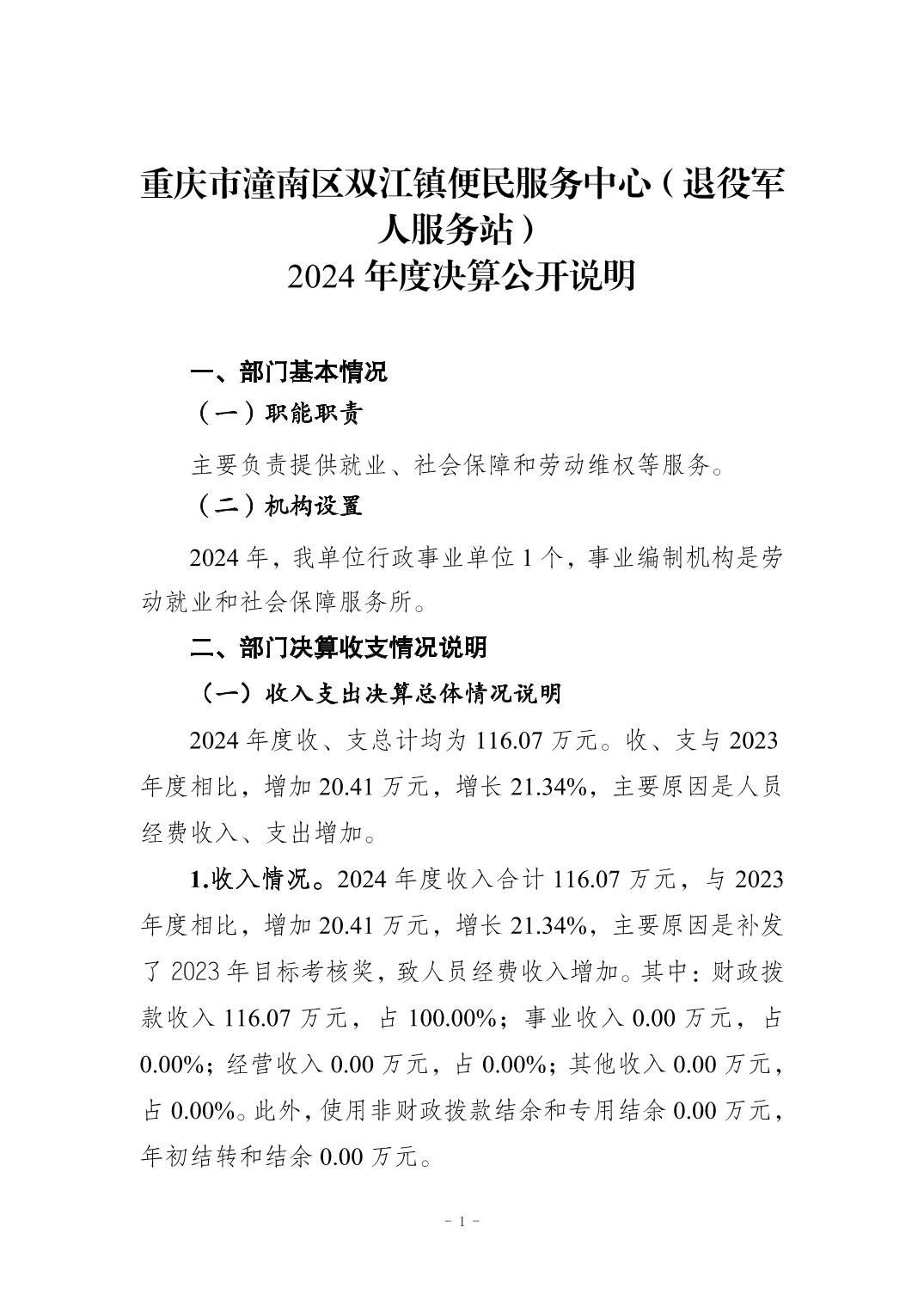 重庆市潼南区双江镇便民服务中心(退役军人服务站)2024年度决算公开