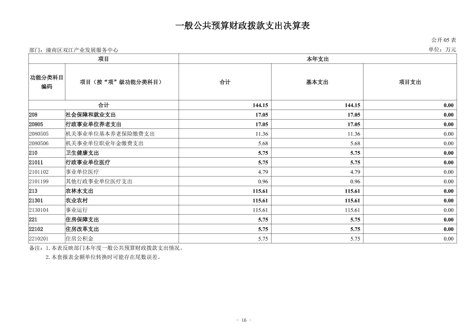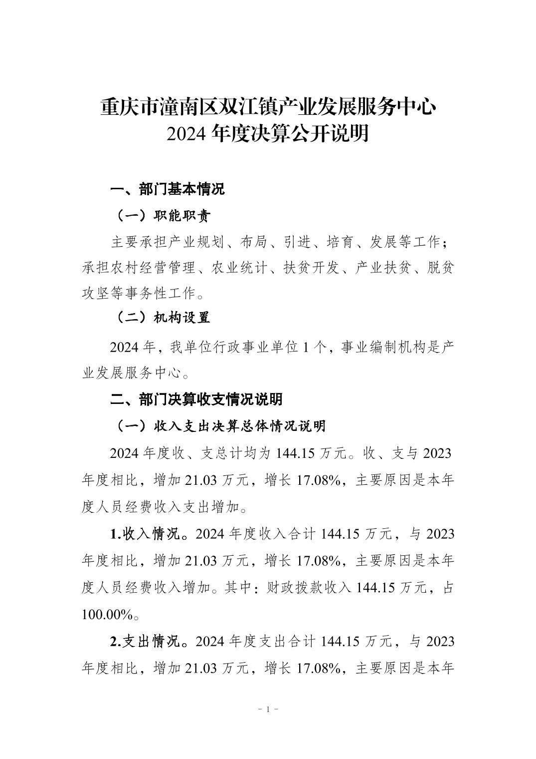 重庆市潼南区双江镇产业发展服务中心2024年度决算公开