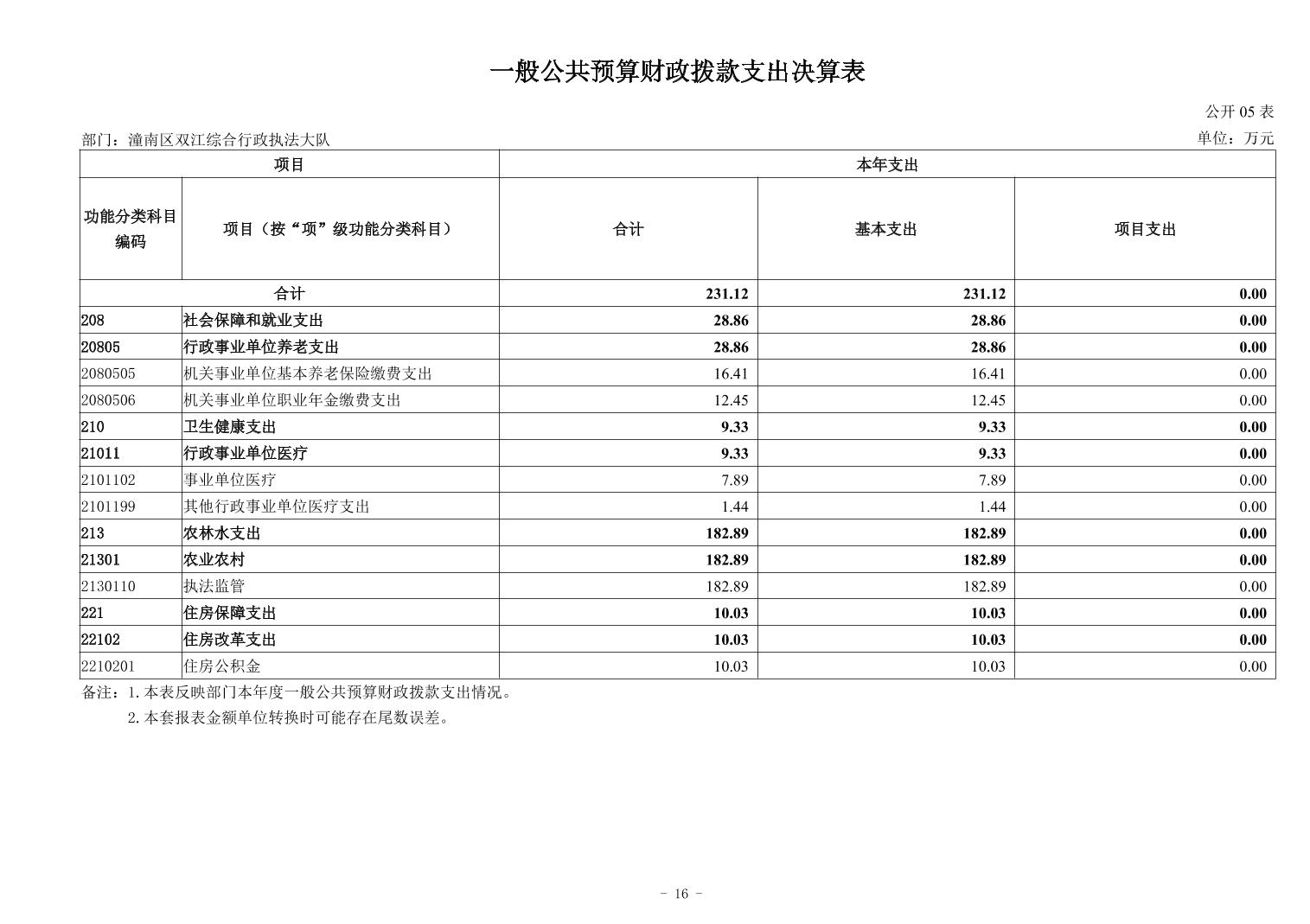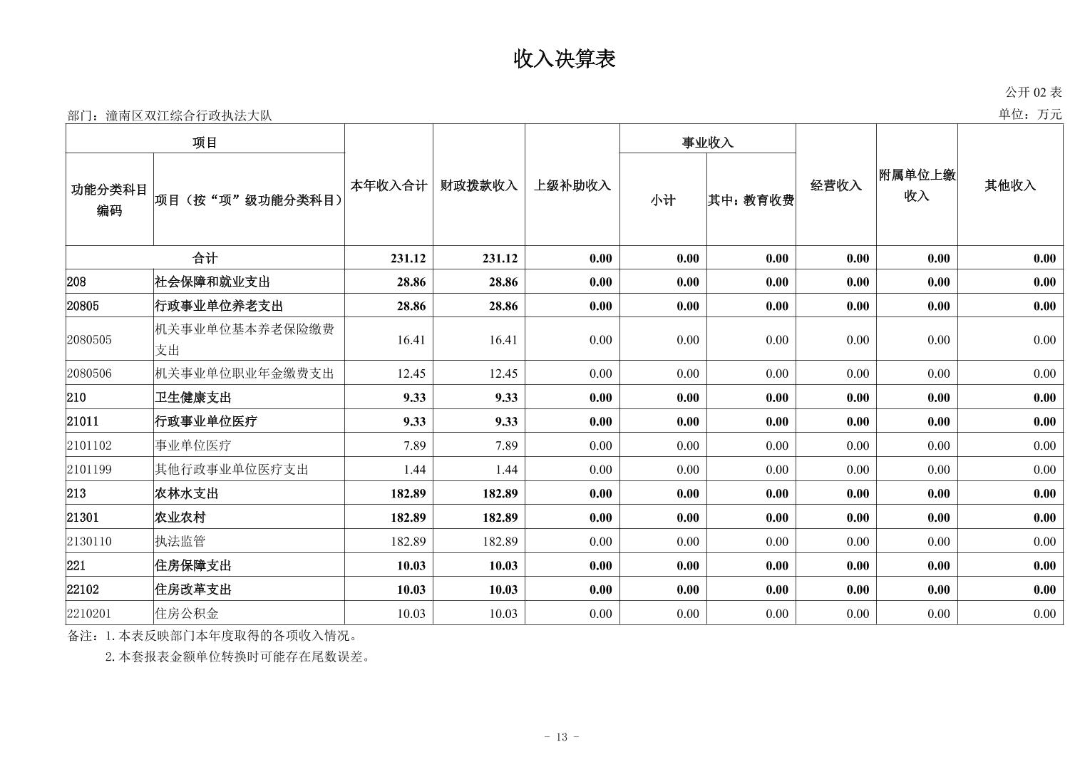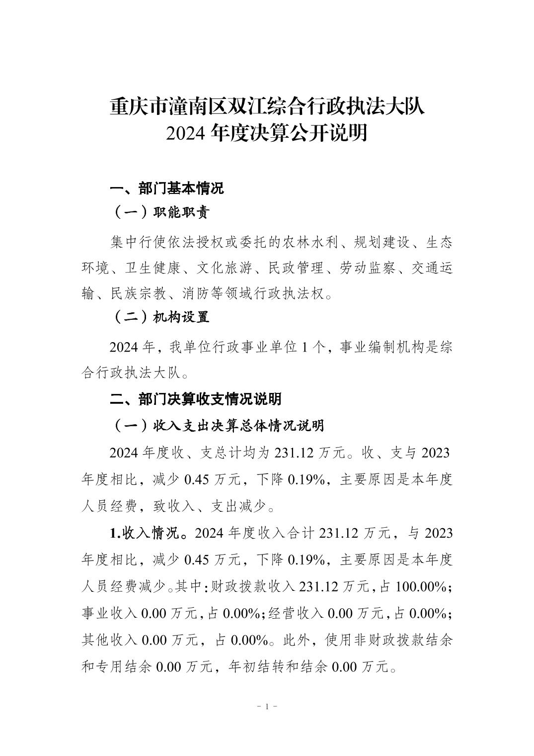 重庆市潼南区双江综合行政执法大队2024 年度决算公开