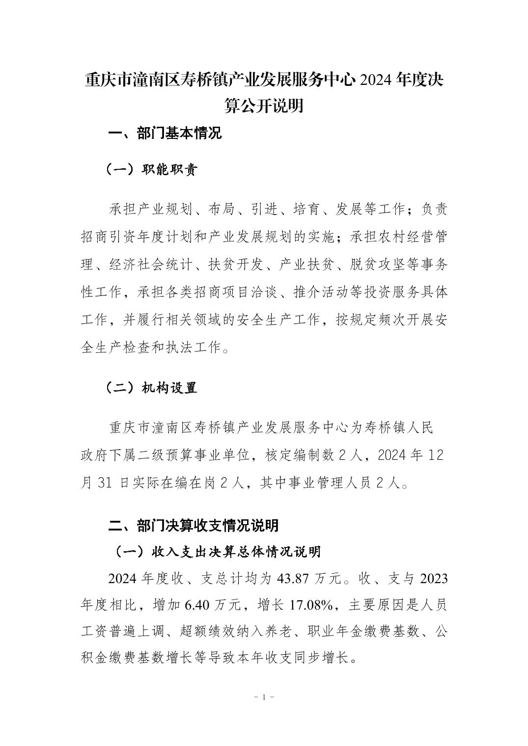 重庆市潼南区寿桥产业发展服务中心2024年度部门决算公开