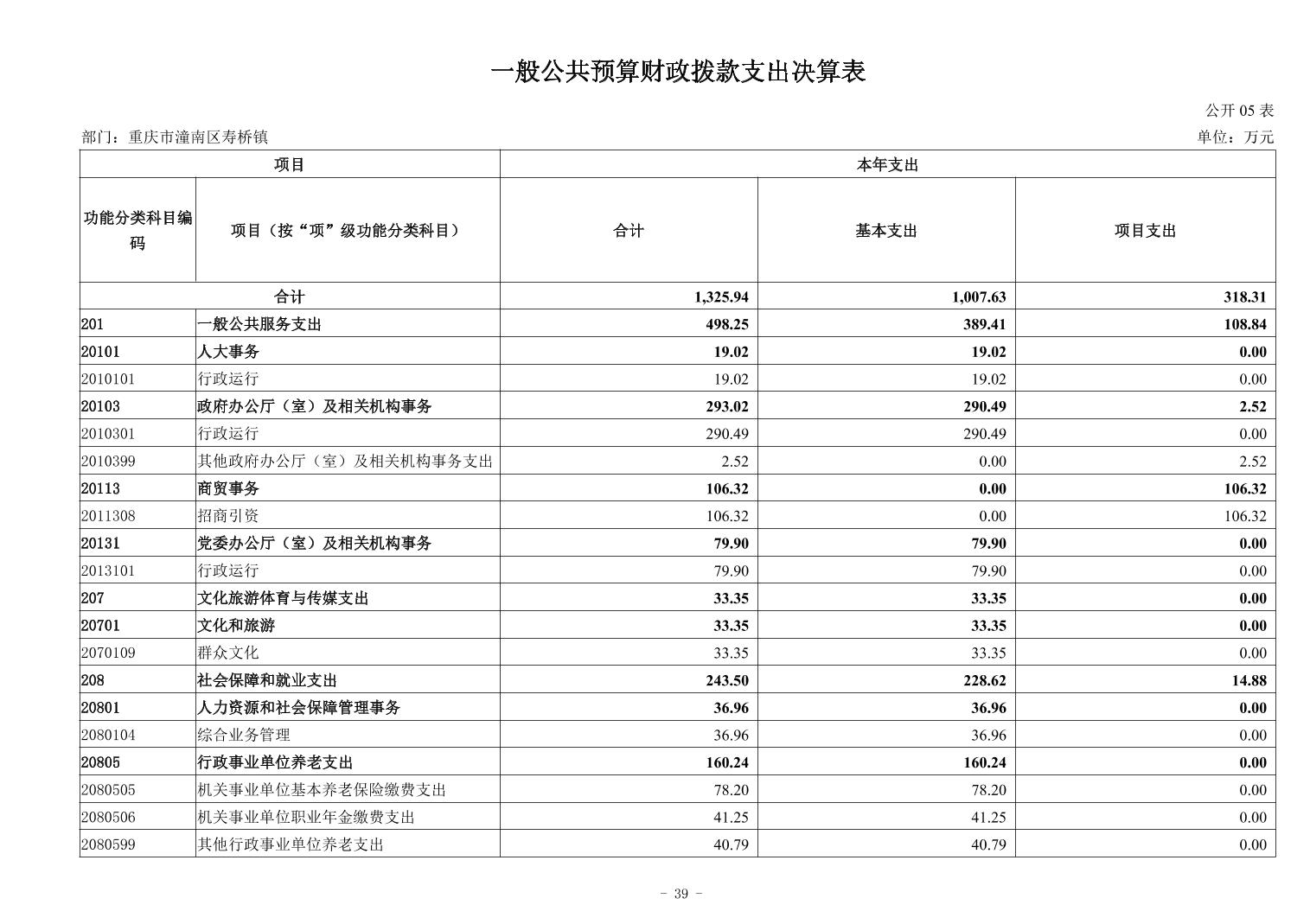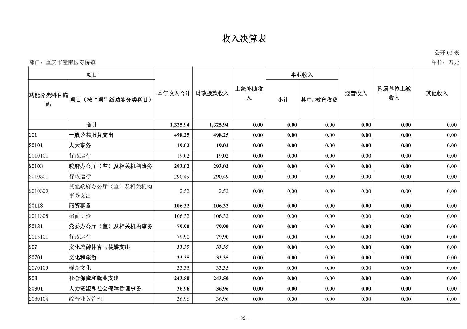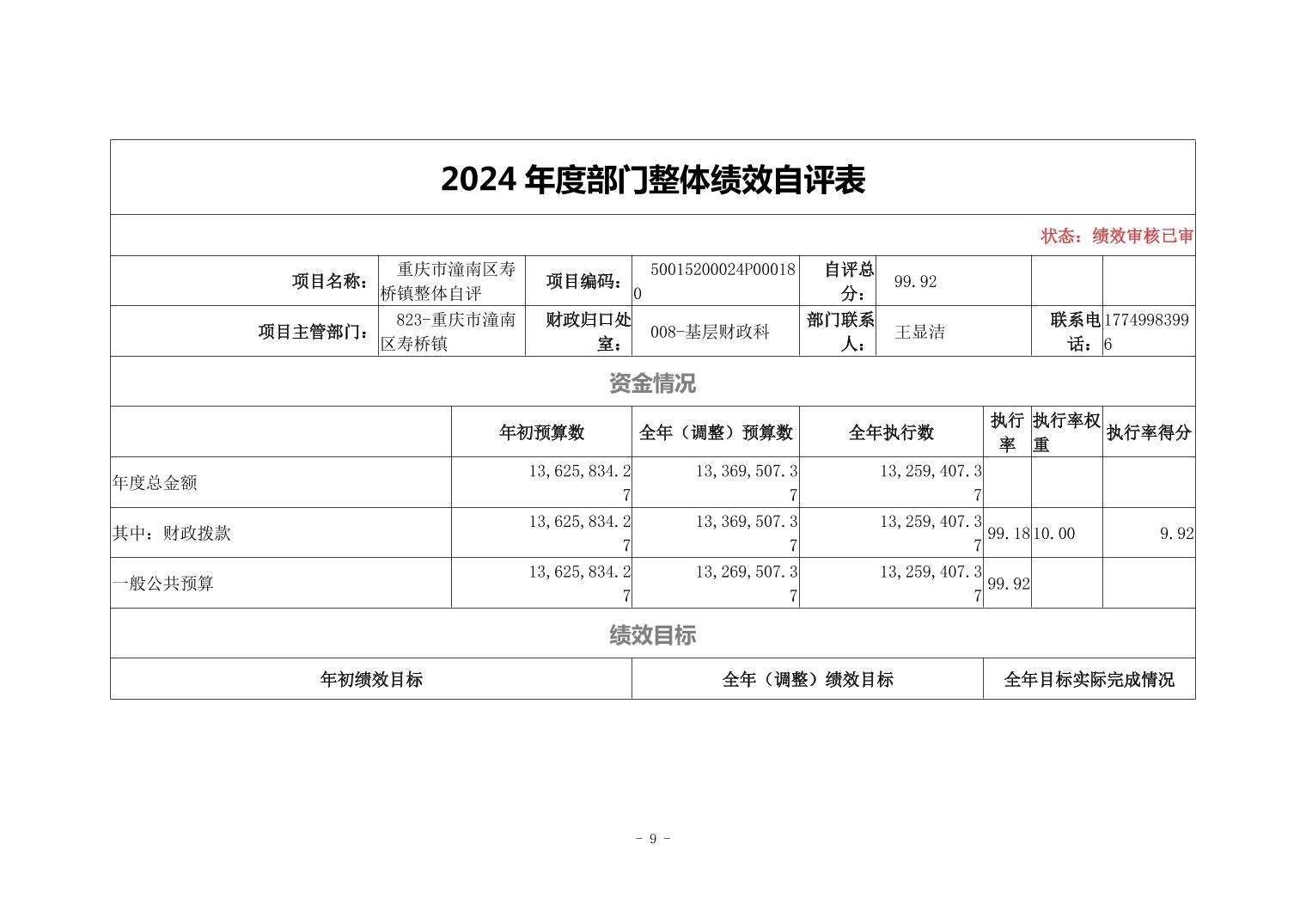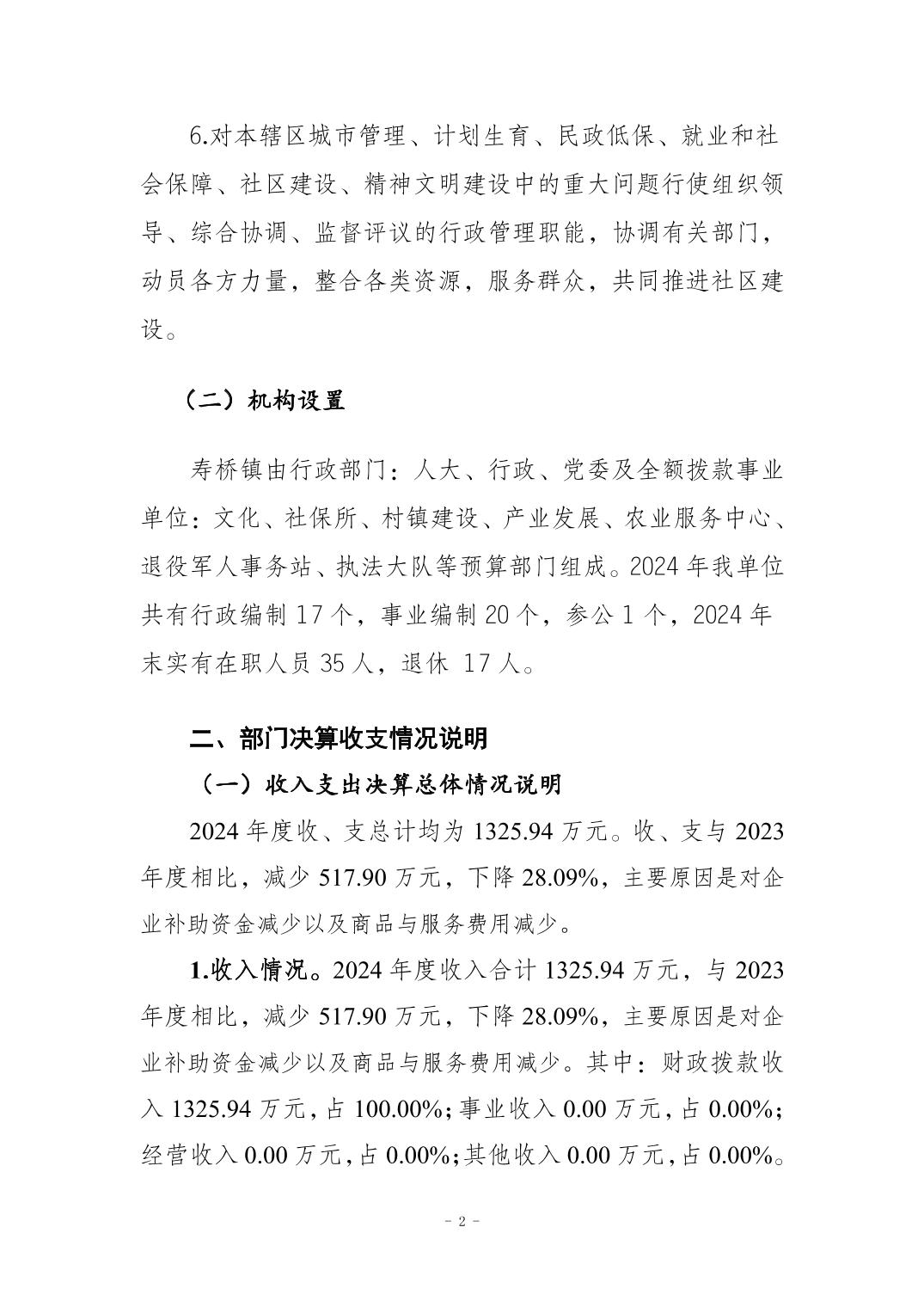 重庆市潼南区寿桥镇2024年度部门决算公开