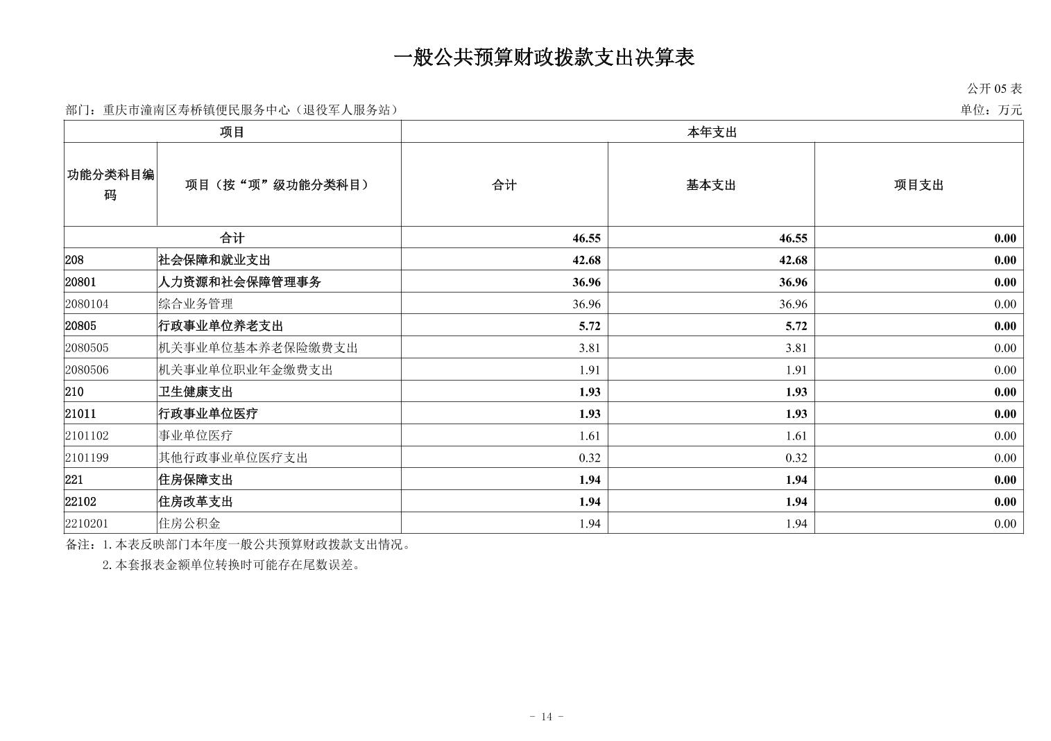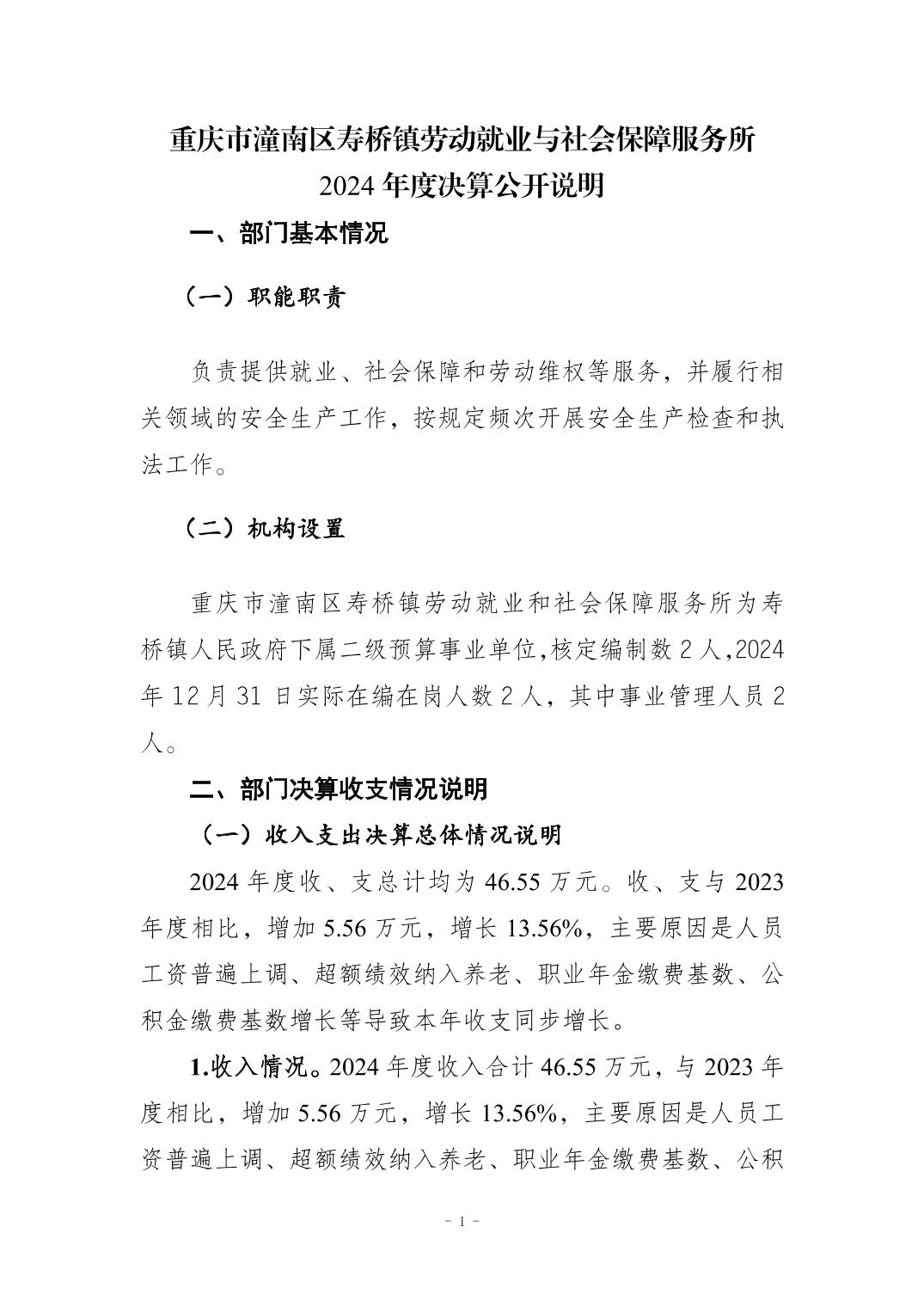 重庆市潼南区寿桥镇劳动就业和社会保障服务所2024年度部门决算公开