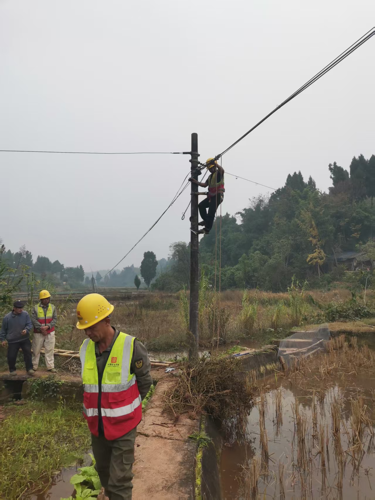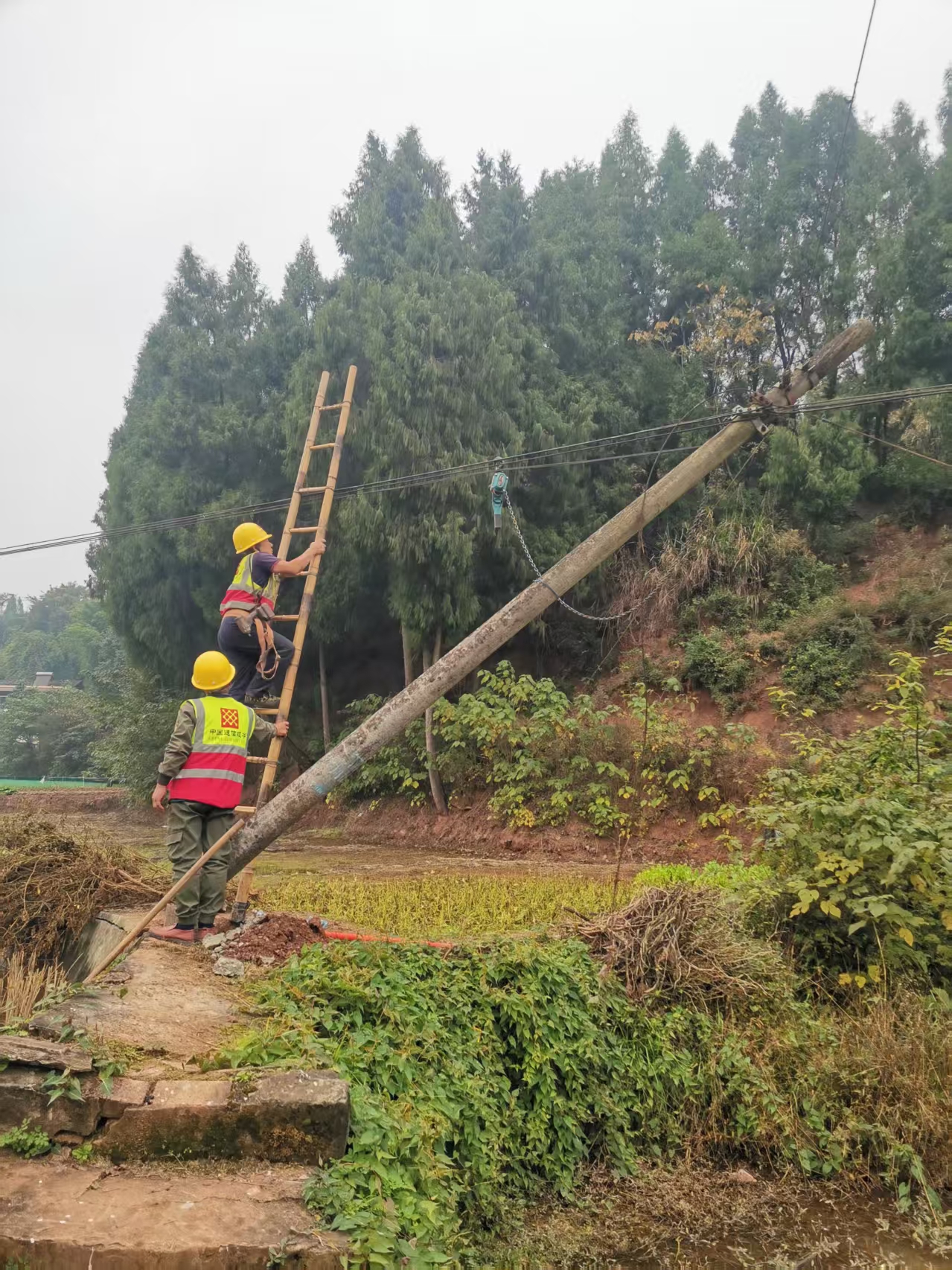 近日,我镇工作人员在常态化巡查过程中发现辖区内部分电线杆出现基础松动及杆体倾斜现象,该隐患对线路安全运行及周边行人车辆构成潜在风险。发现问题后我镇立即向通信部门反映并组织专业技术人员赶赴现场进行勘察评估,并迅速制定了校正加固施工方案。施工期间,作业人员严格执行安全操作规程,设置警示区域,调配专业器械,在最短时间内完成了对倾斜杆体的扶正、基础加固及附属线路检查调整等一系列抢修作业。整个处置过程响应迅速、操作规范、措施得当。