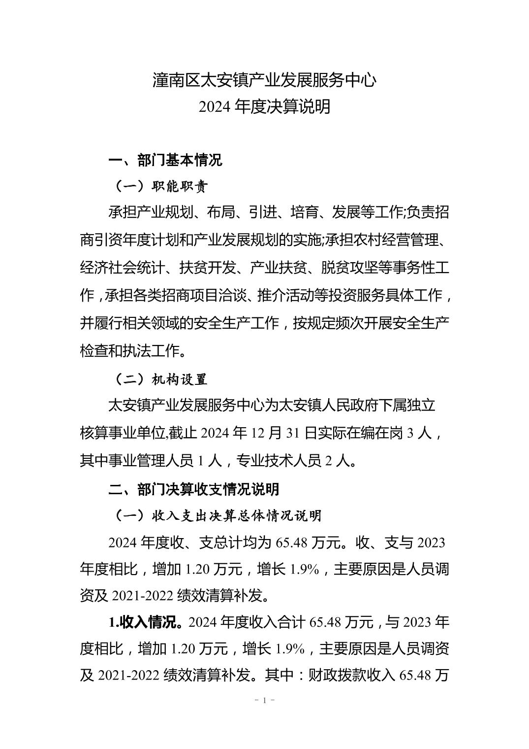 潼南区太安镇产业发展服务中心2024年度部门决算公开
