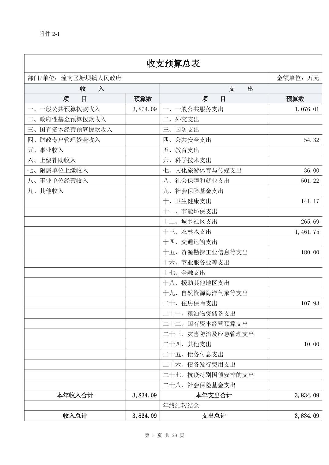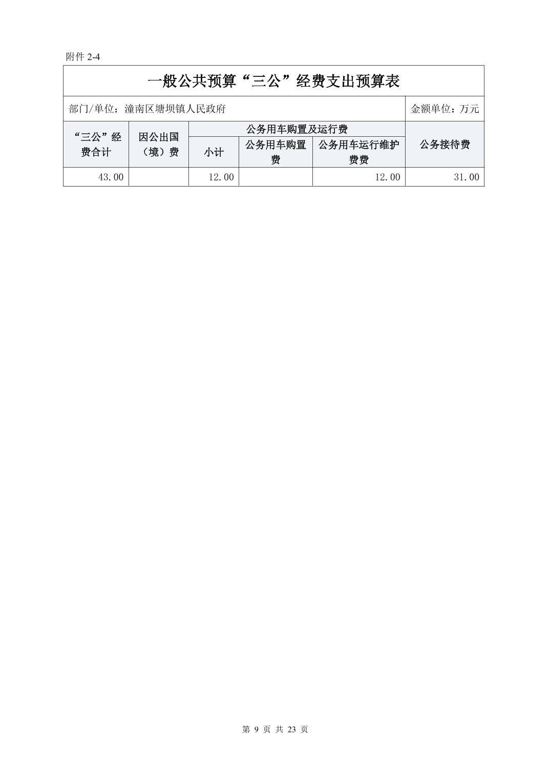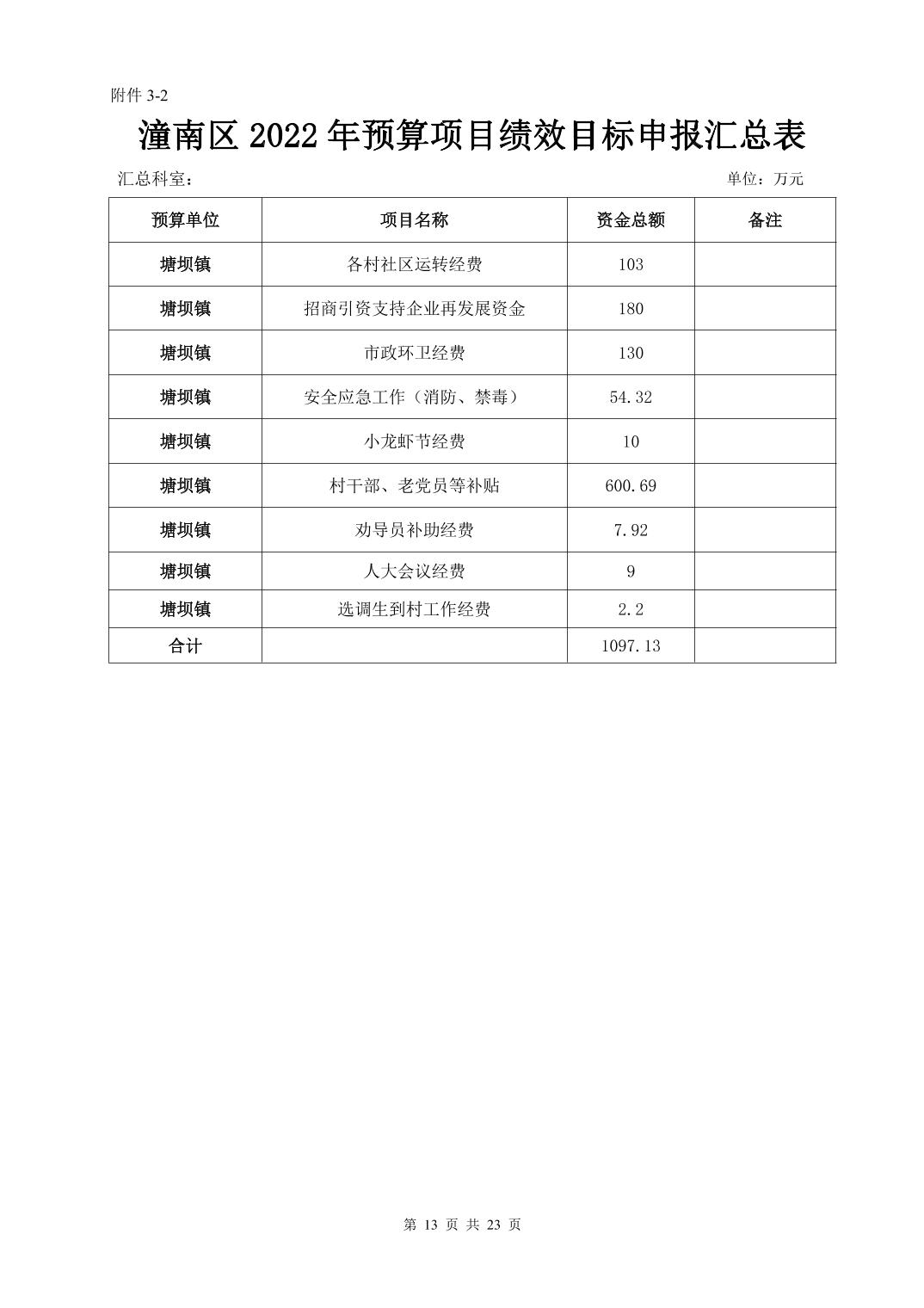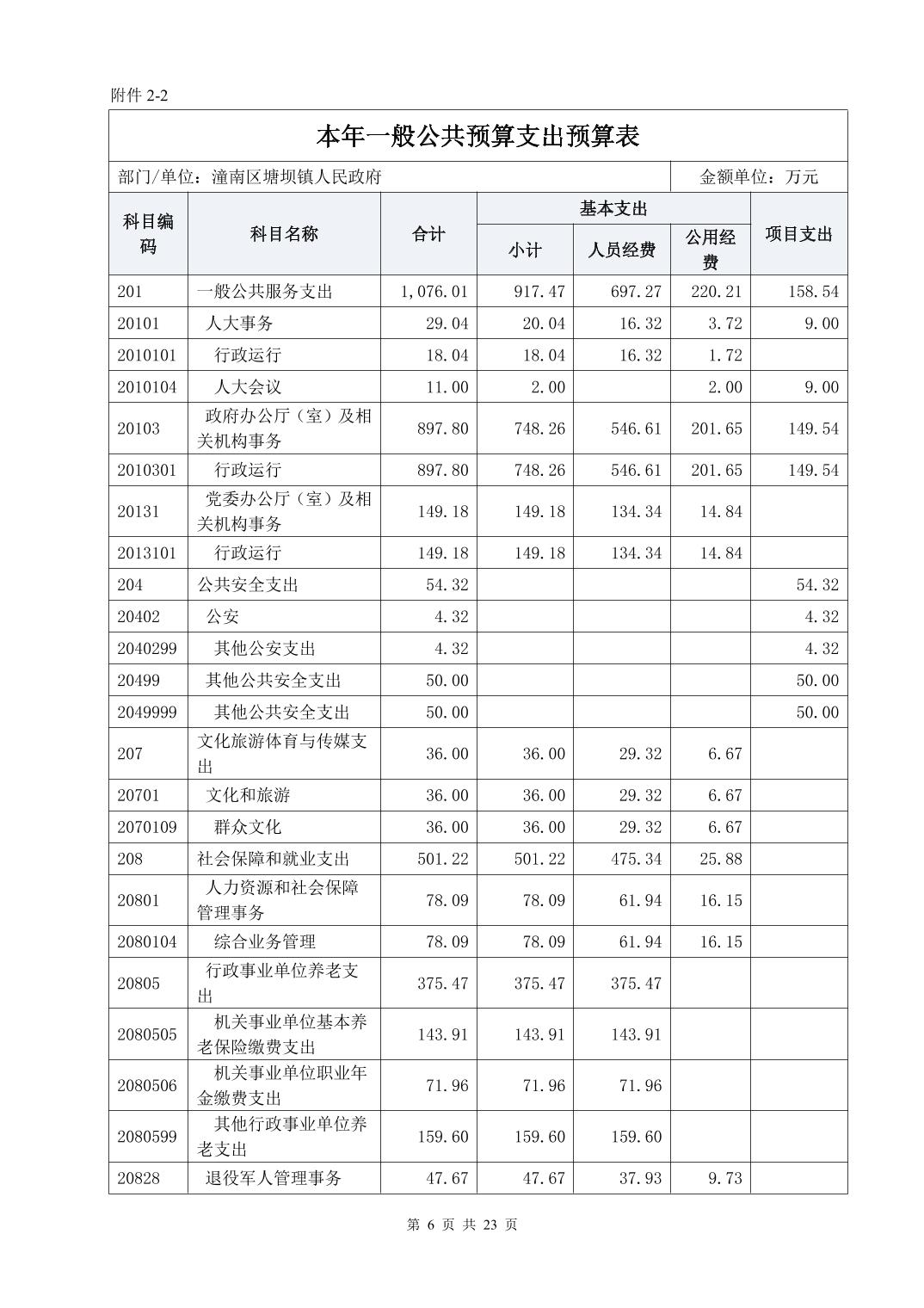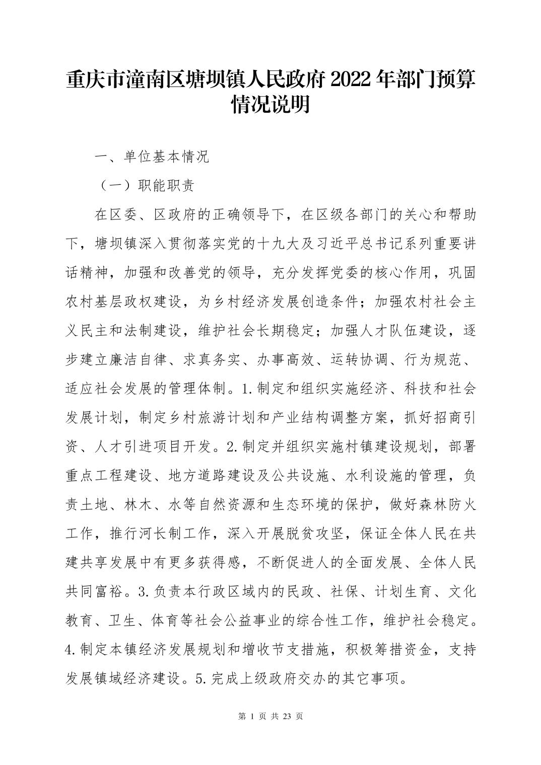 重庆市潼南区塘坝镇人民政府 2022 年部门预算情况说明