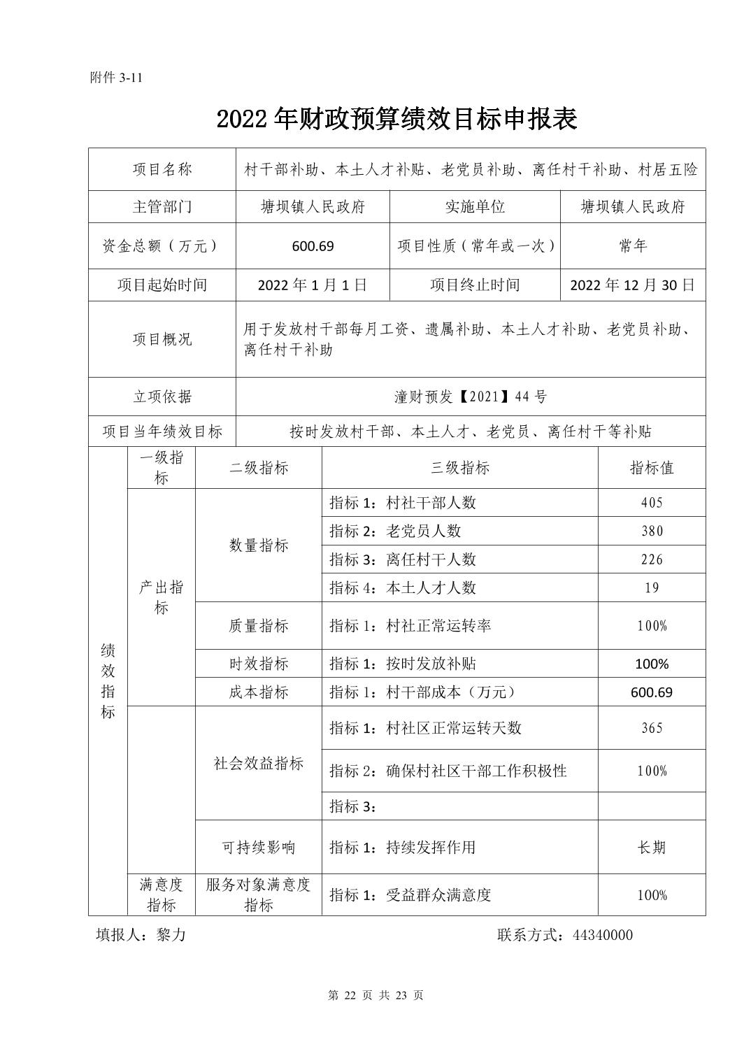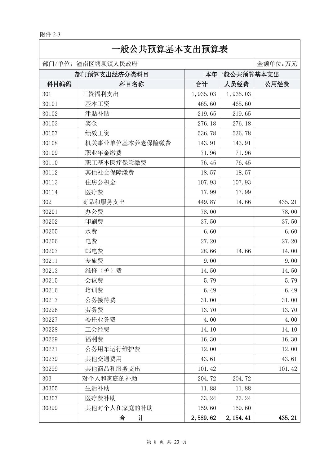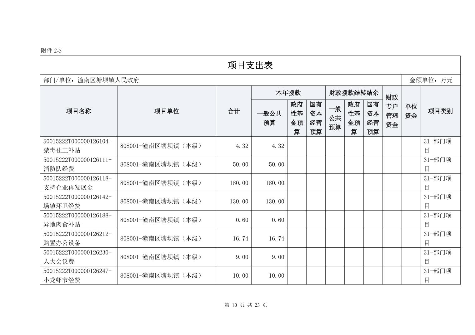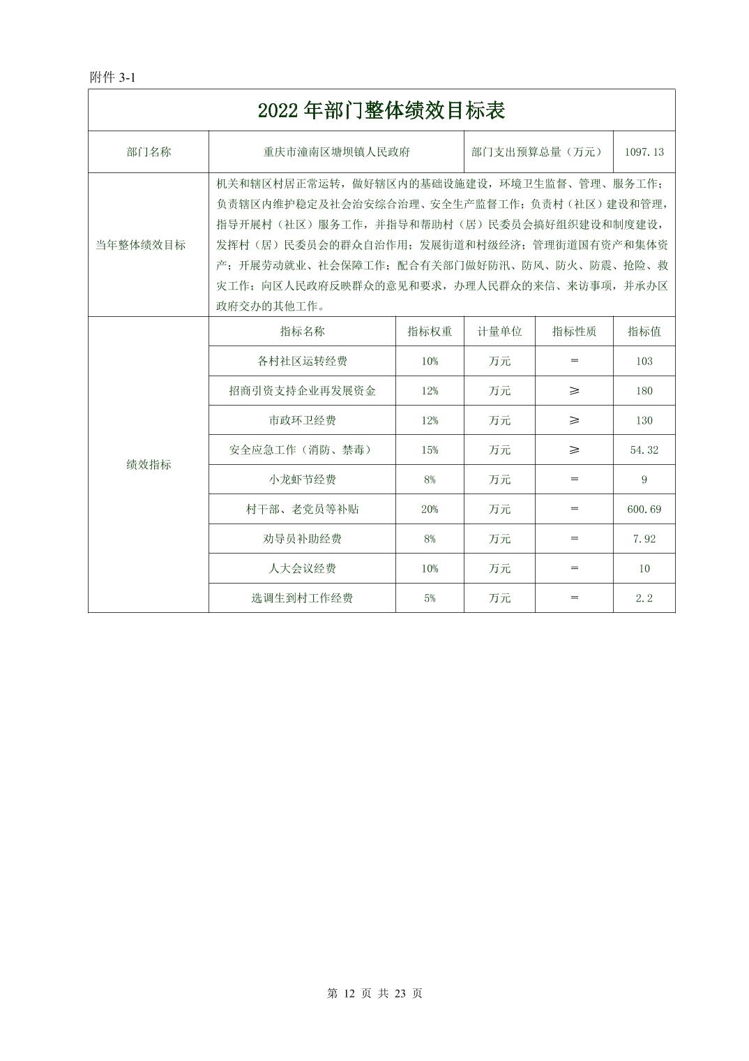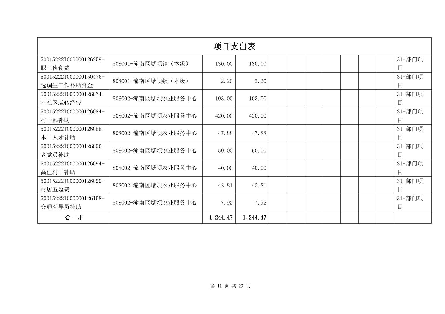 重庆市潼南区塘坝镇人民政府 2022 年部门预算情况说明