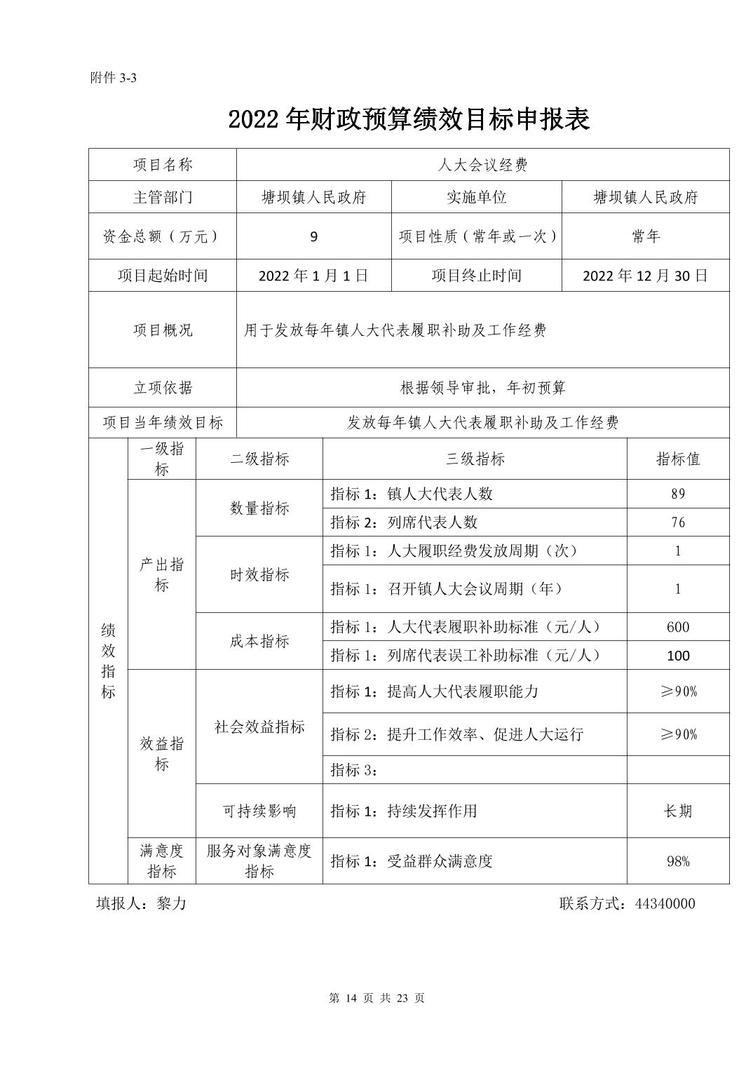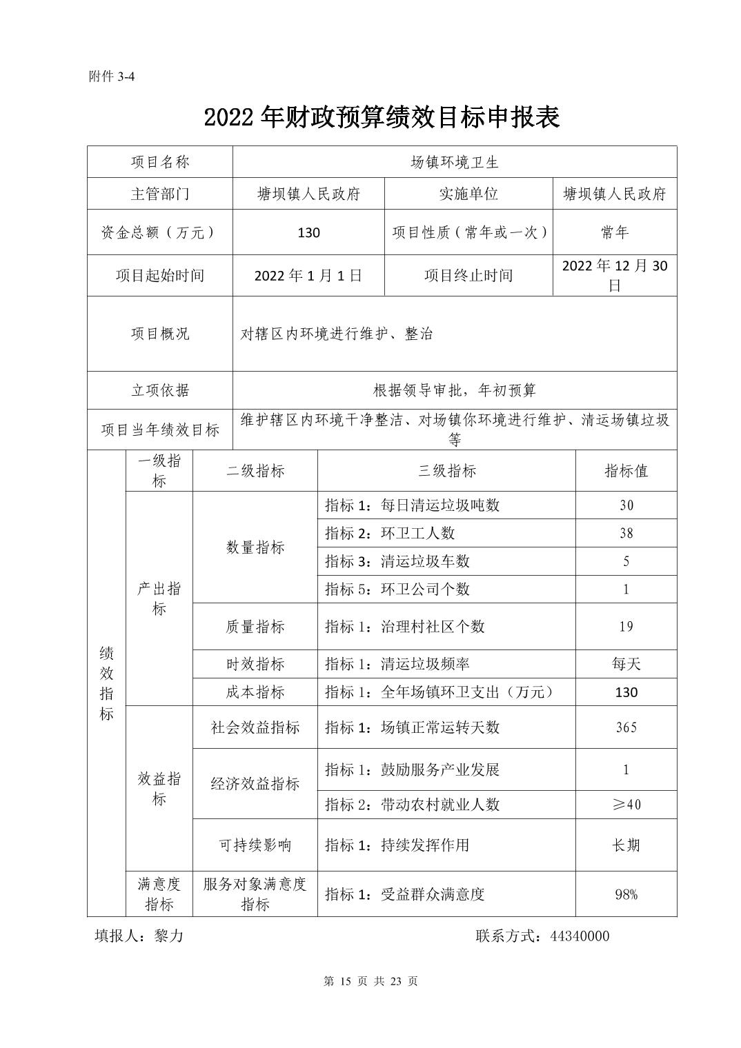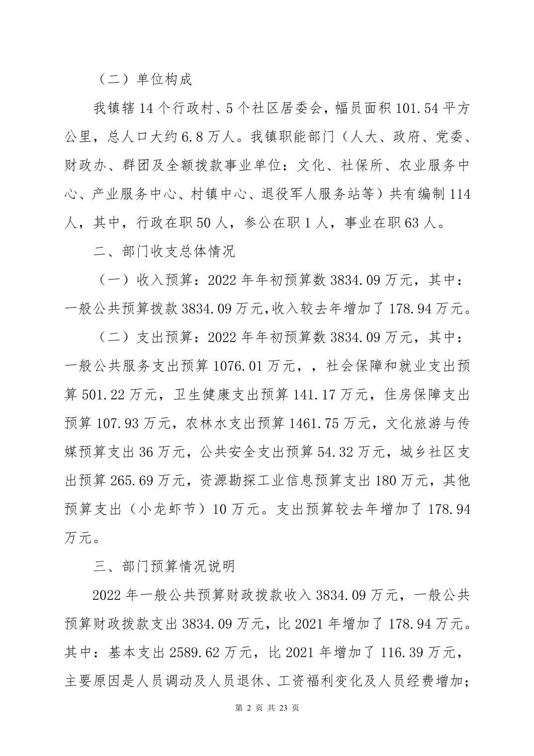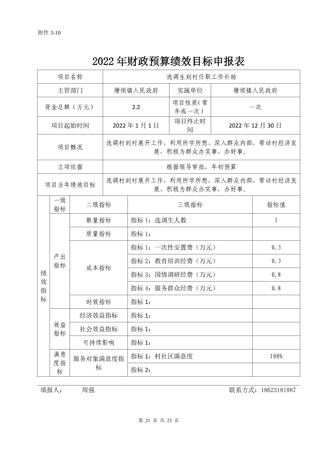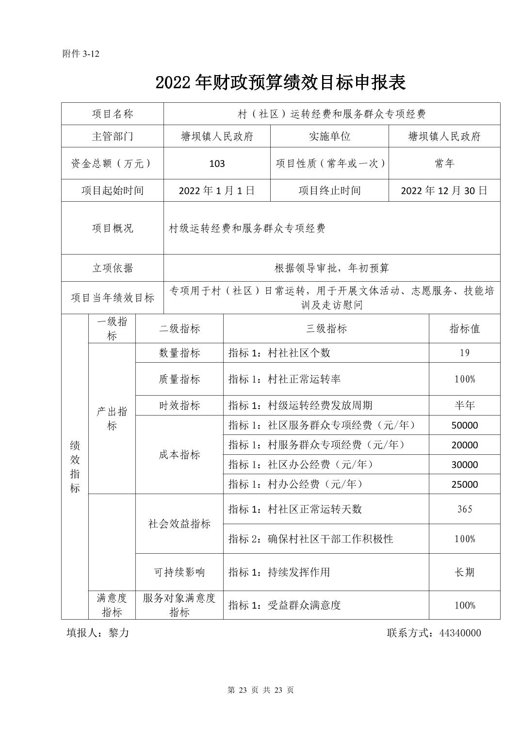 重庆市潼南区塘坝镇人民政府 2022 年部门预算情况说明