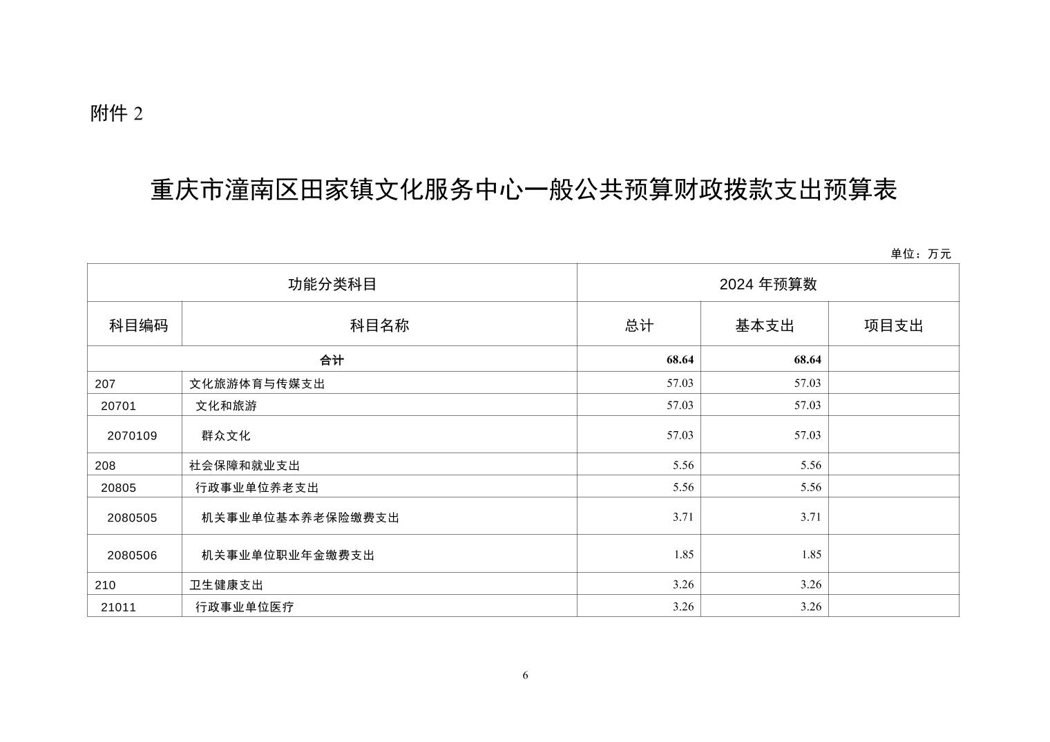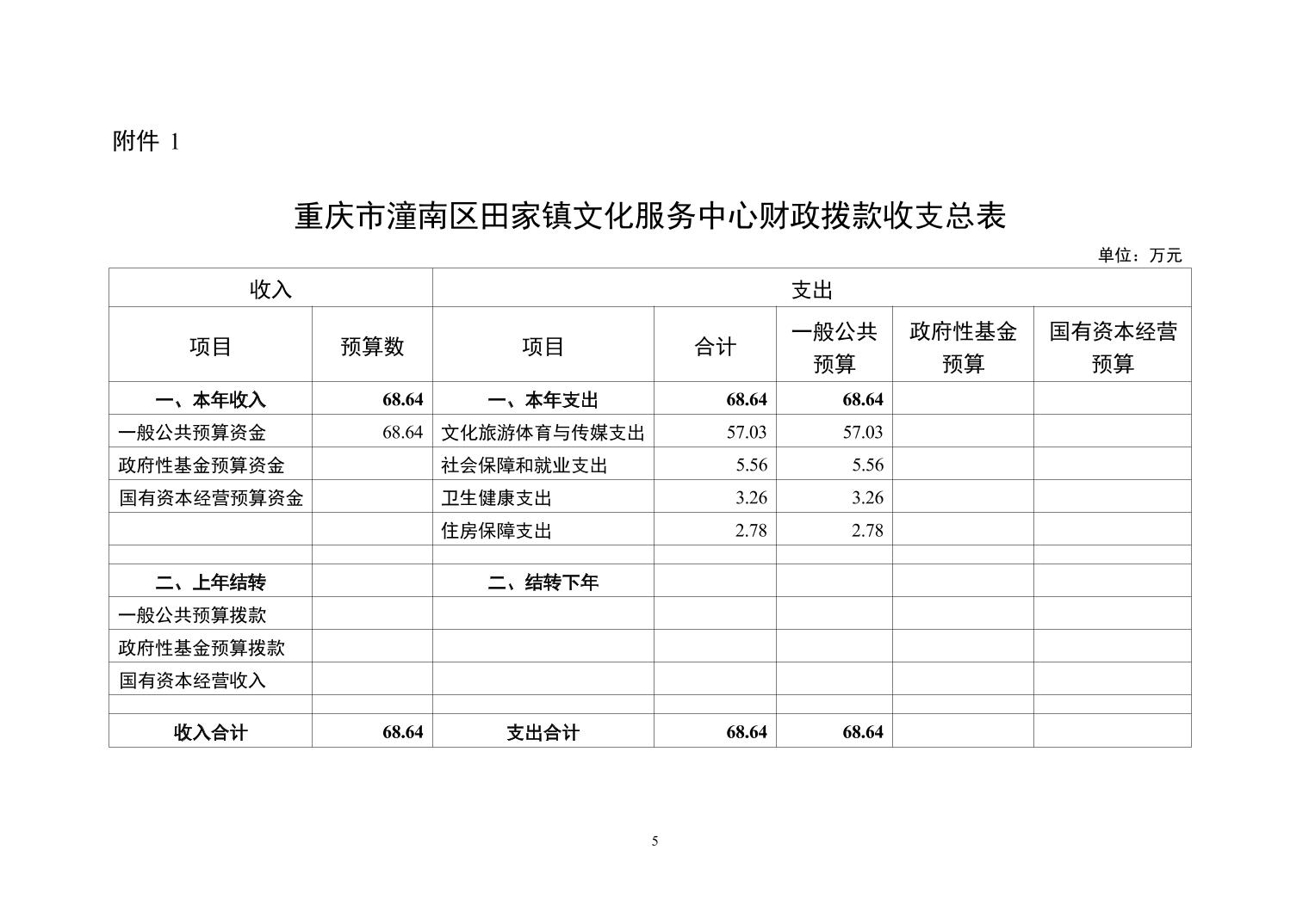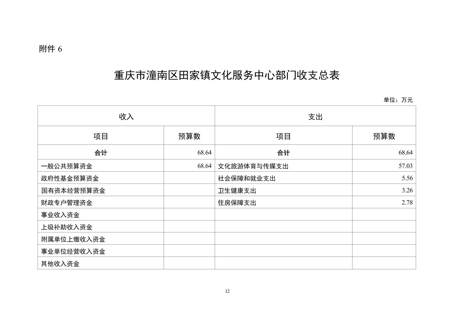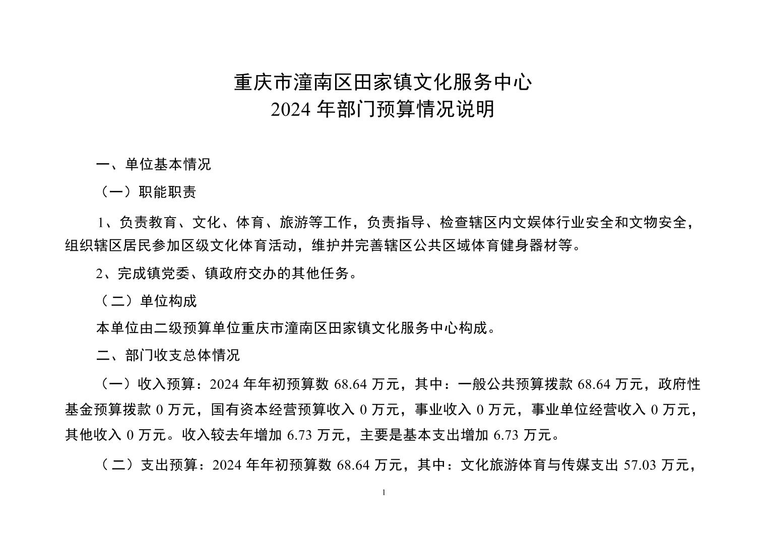 重庆市潼南区田家镇文化服务中心2024年部门预算公开
