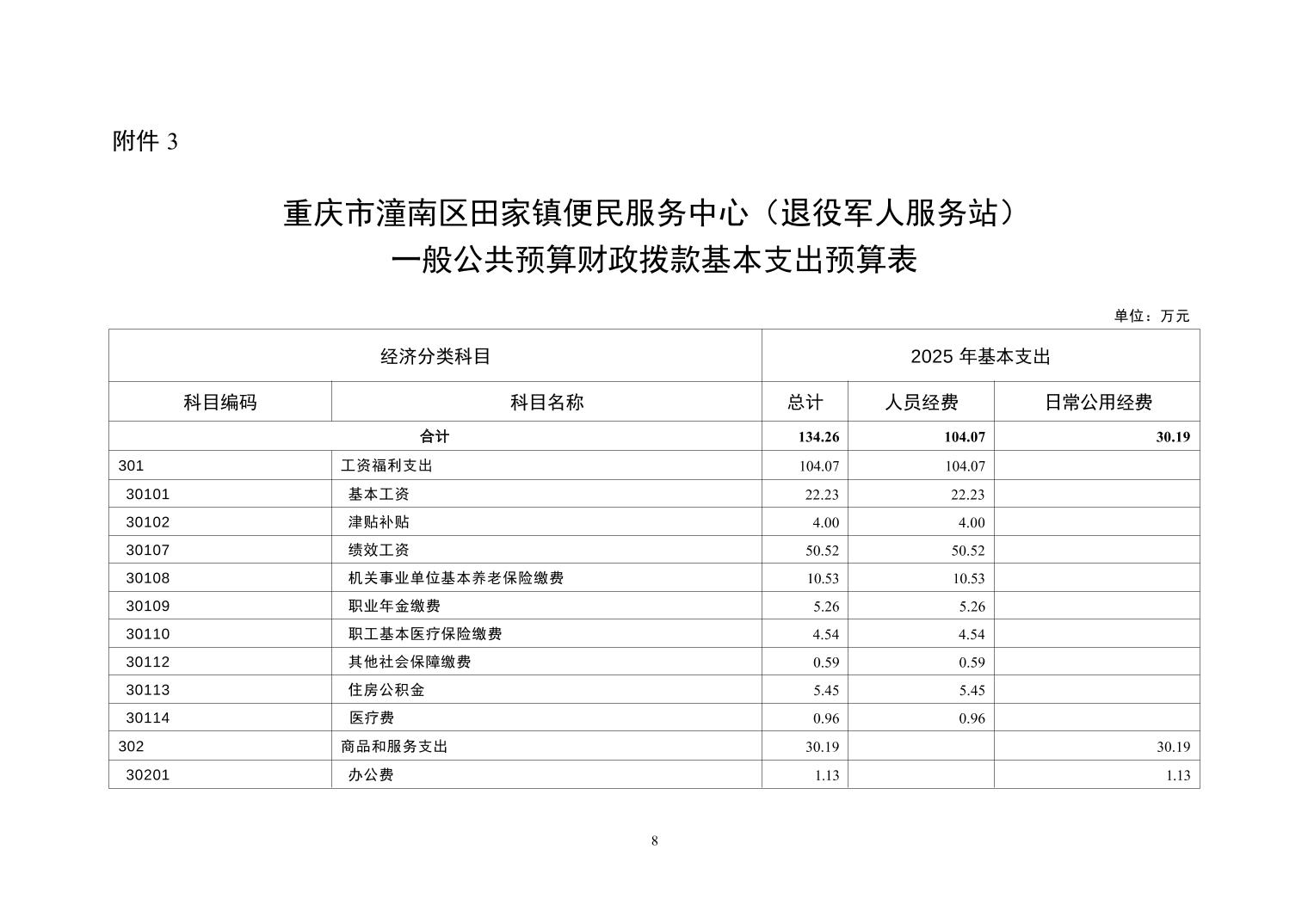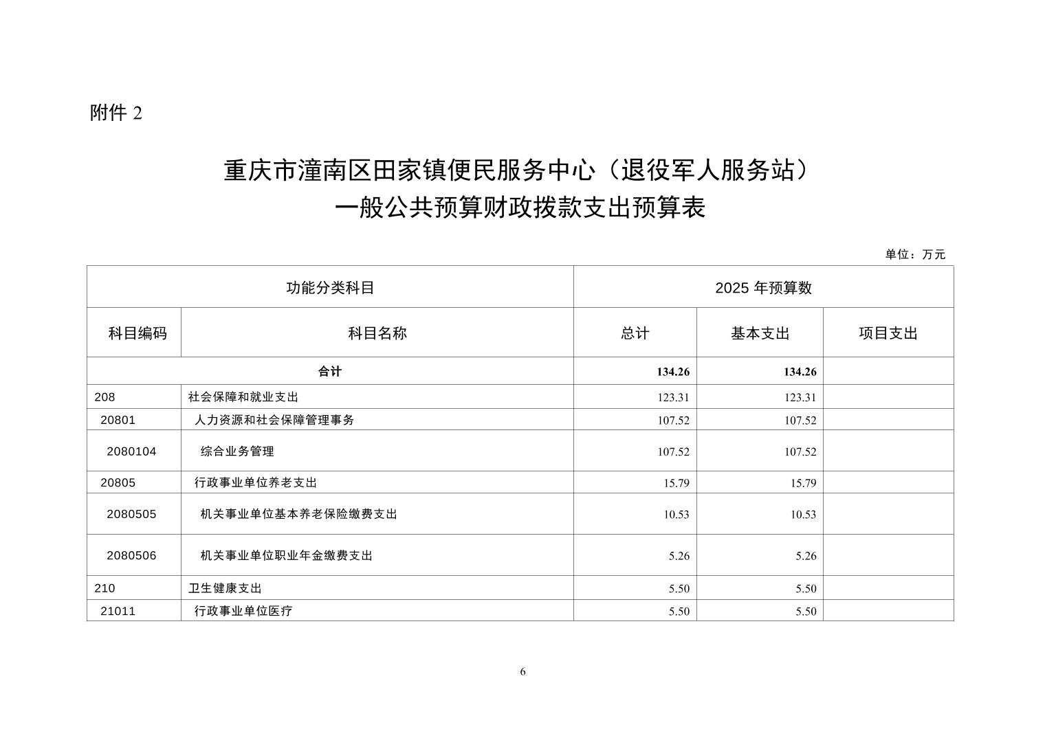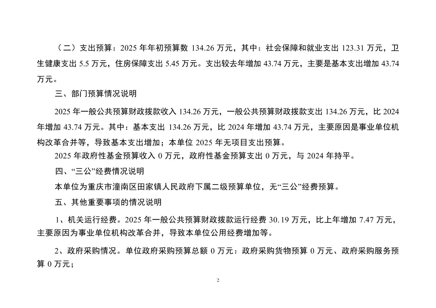 重庆市潼南区田家镇便民服务中心(退役军人服务站)2025年部门预算情况说明
