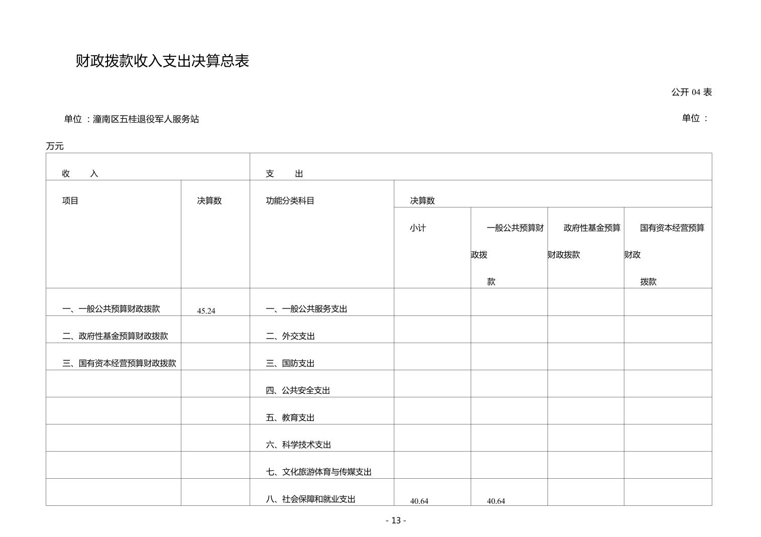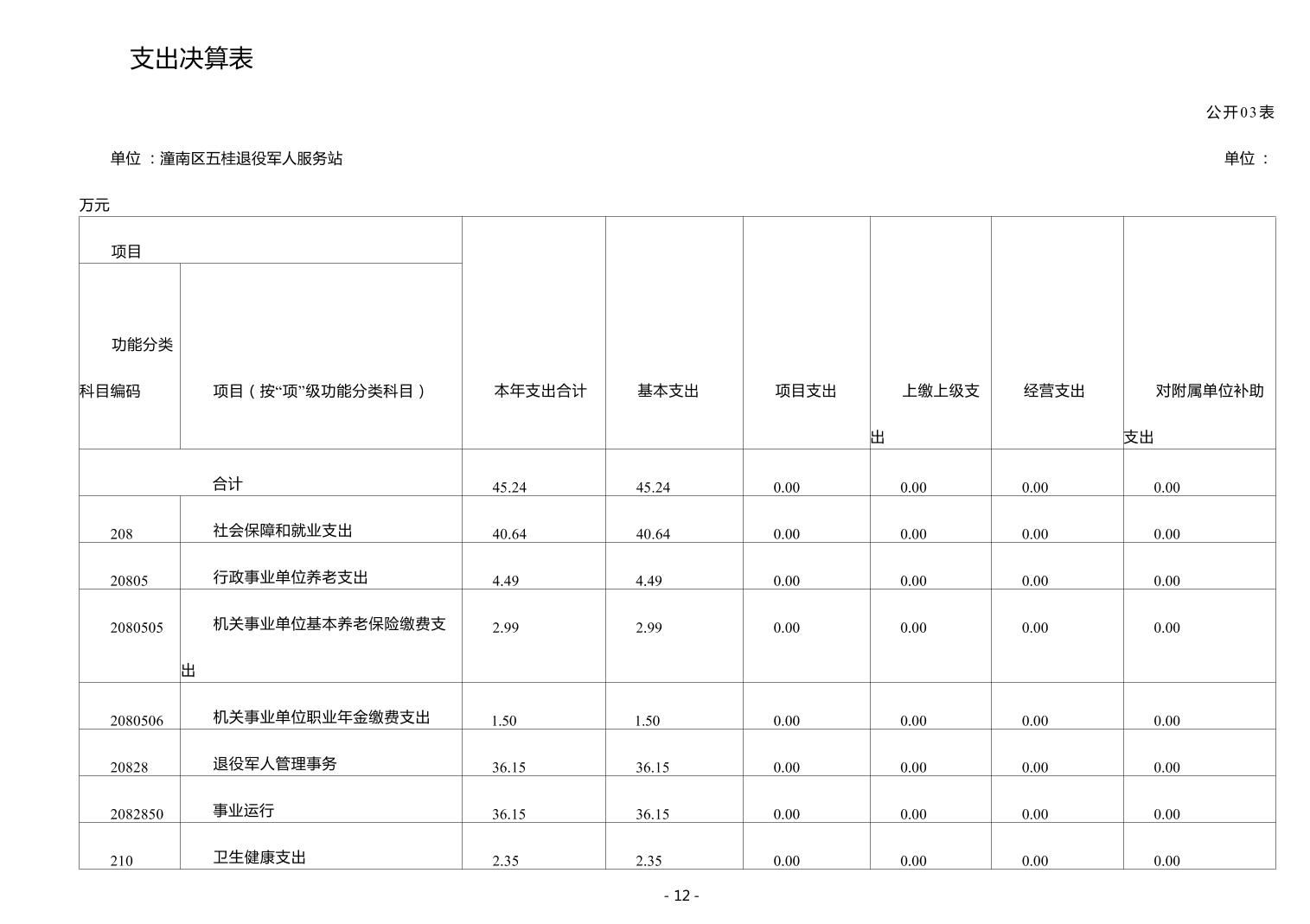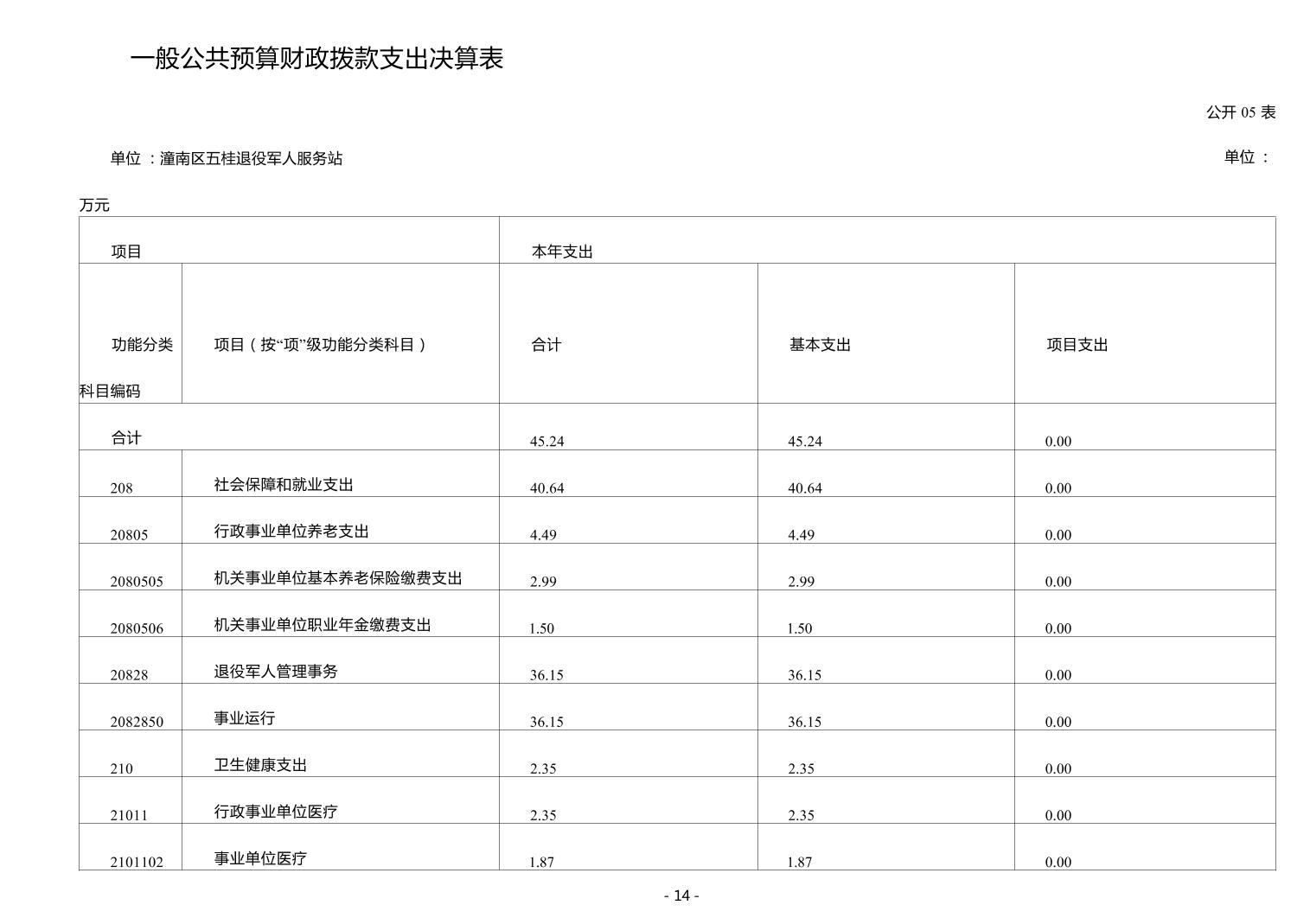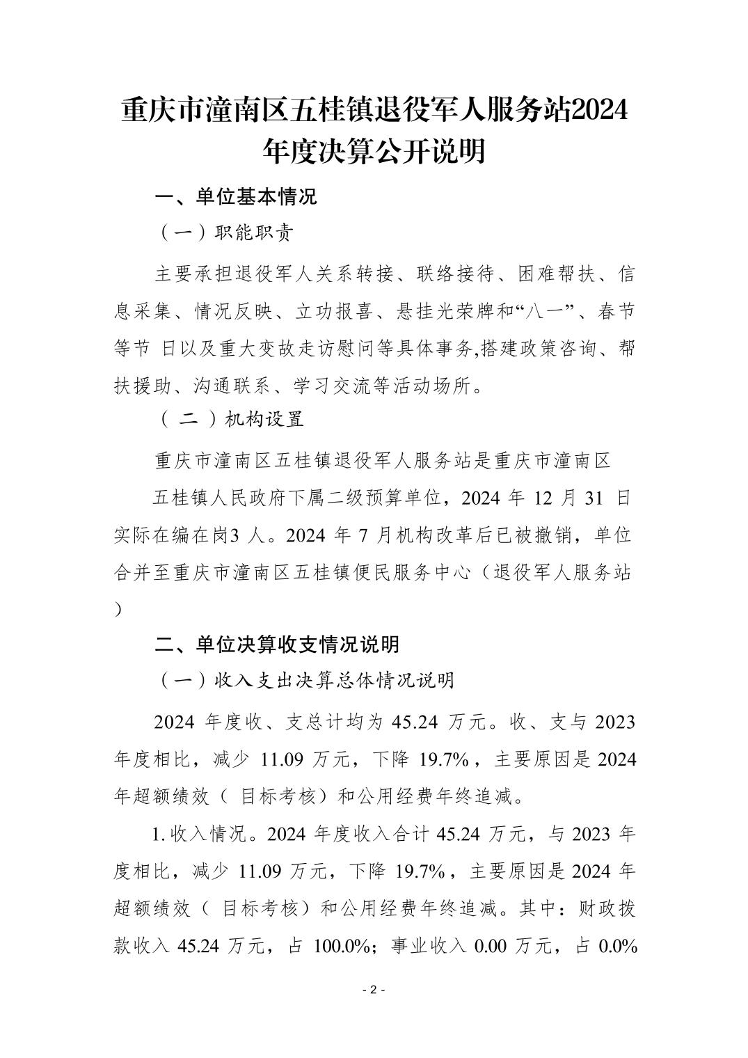重庆市潼南区五桂镇退役军人服务站2024年度决算公开