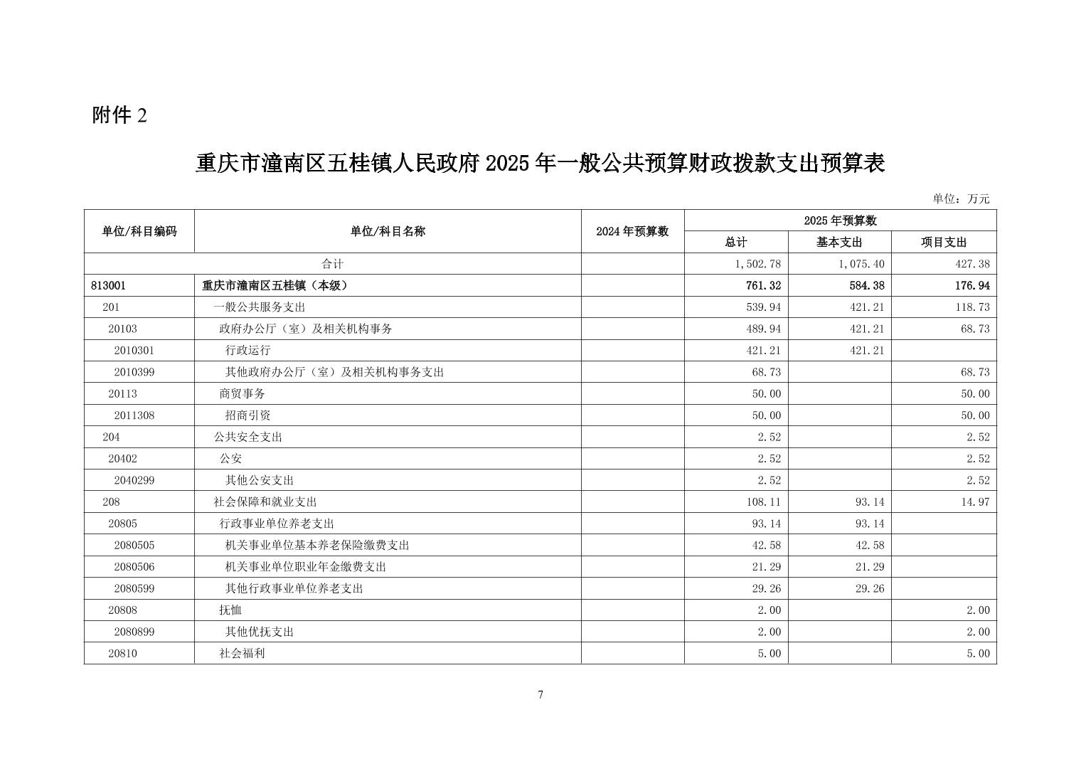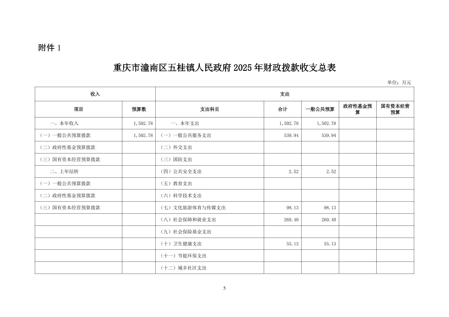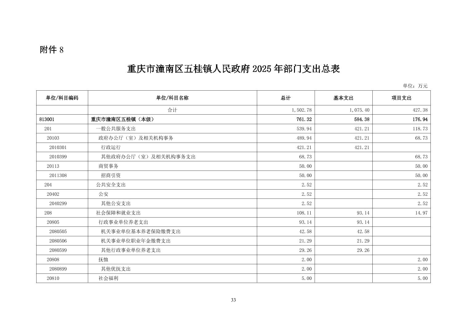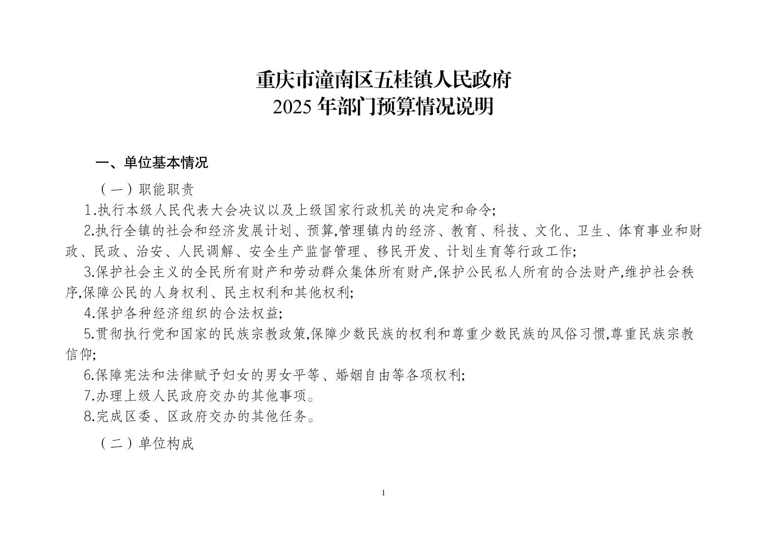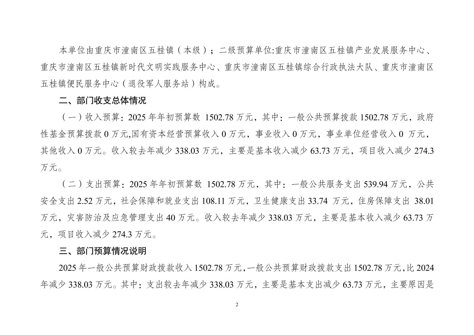 重庆市潼南区五桂镇人民政府2025年部门预算情况说明