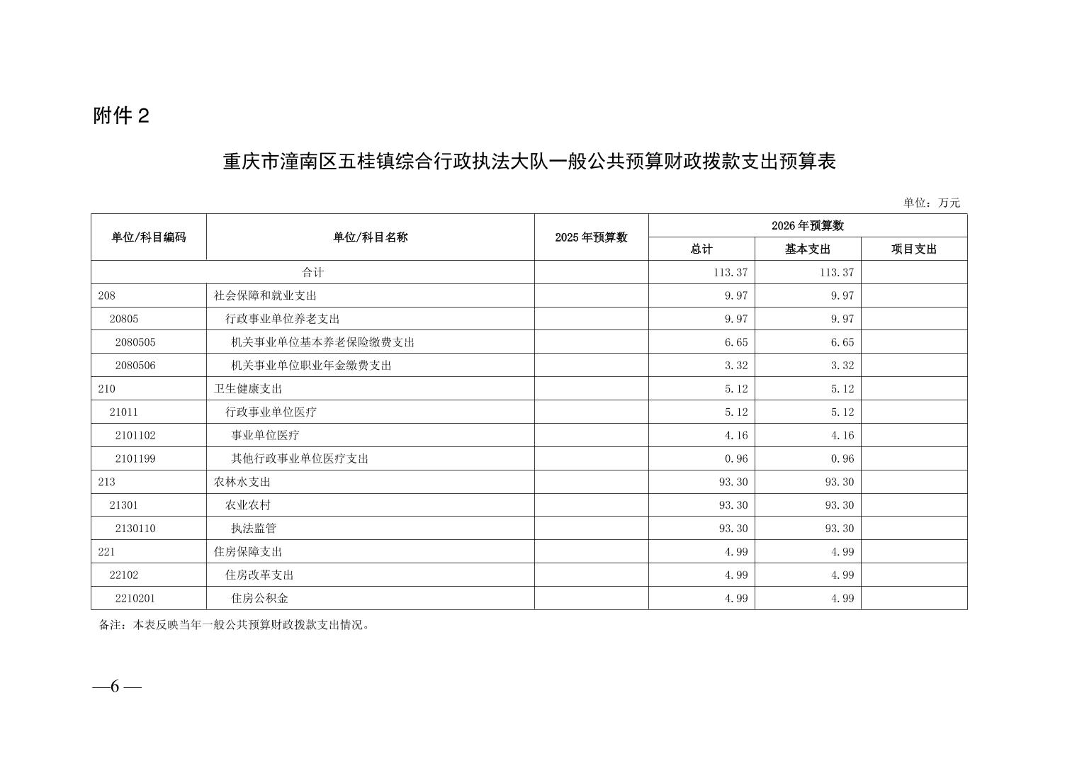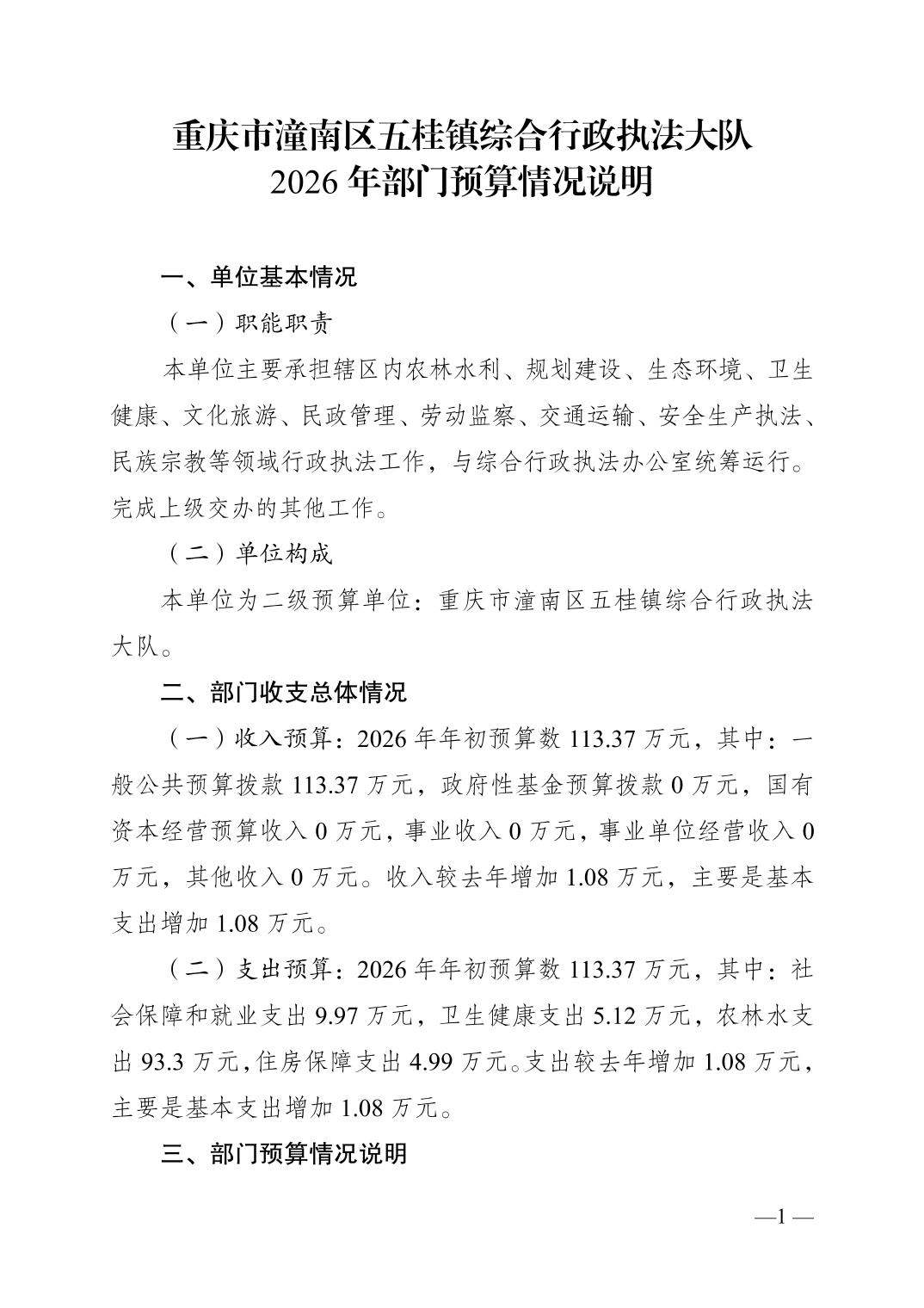 重庆市潼南区五桂镇综合行政执法大队2026年部门预算情况说明